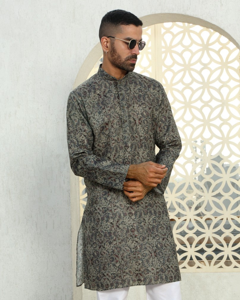 Cotton Paisley Printed Knee Length Kurta