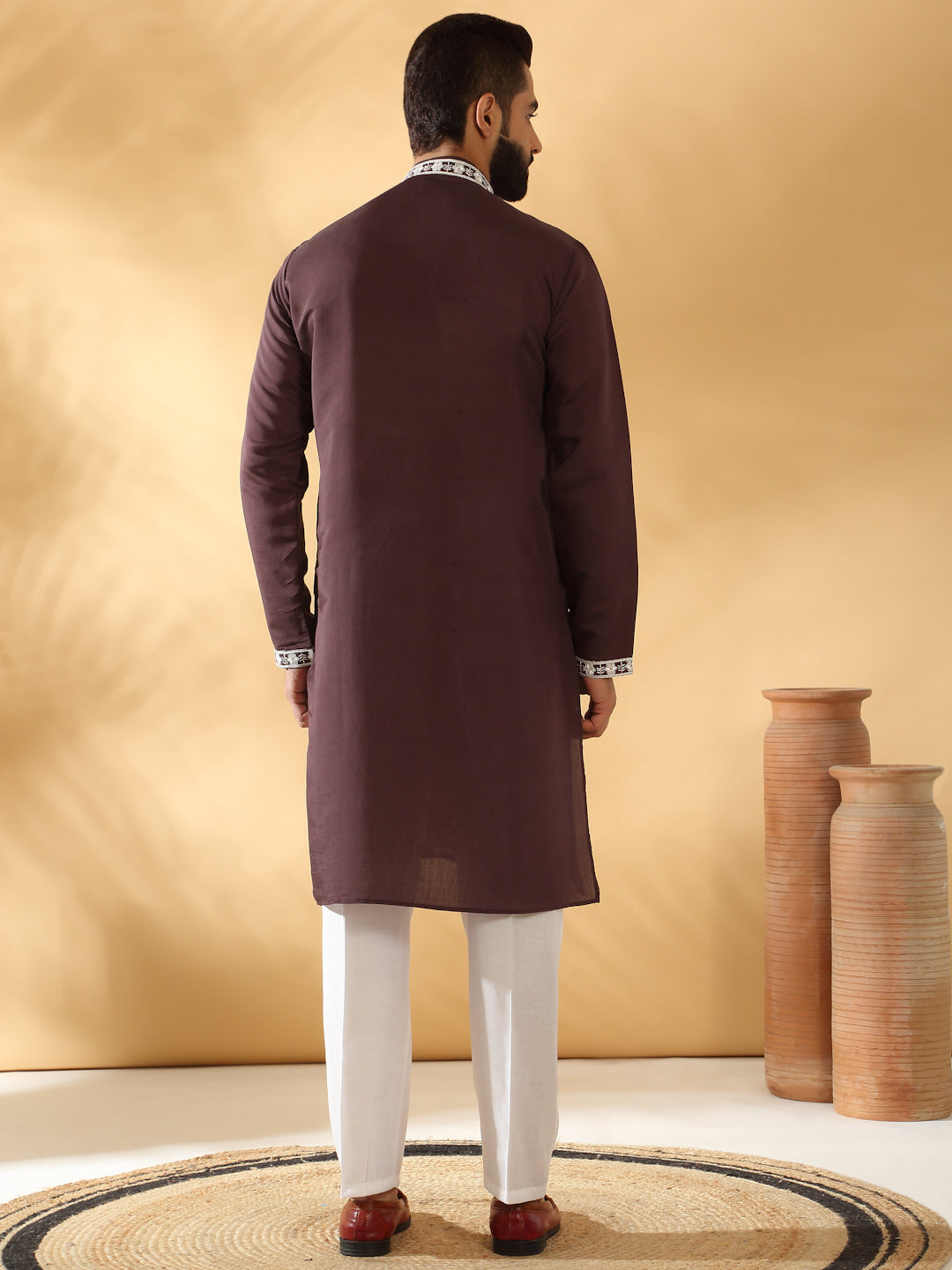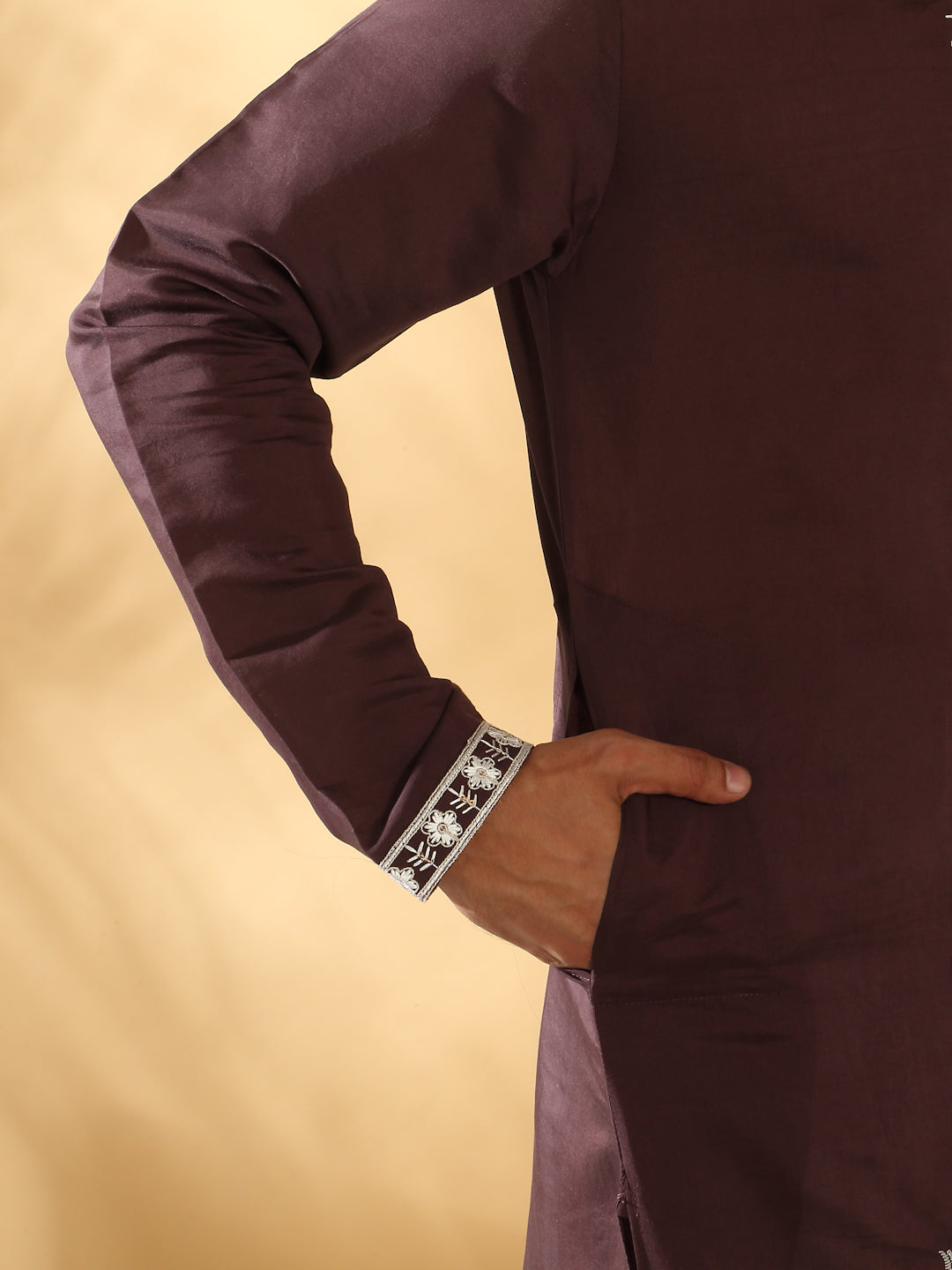 Enhance your ethnic wardrobe with this Men's Cotton Silk Embroidered Sequin Work Kurta, a perfect fusion of elegance and craftsmanship.