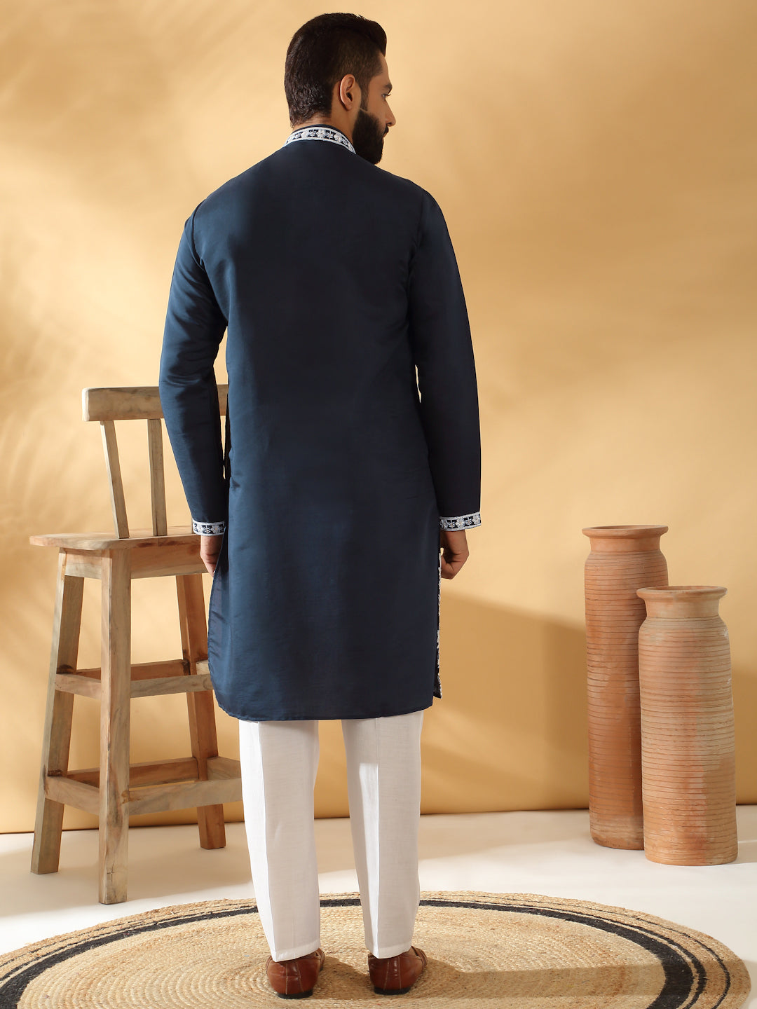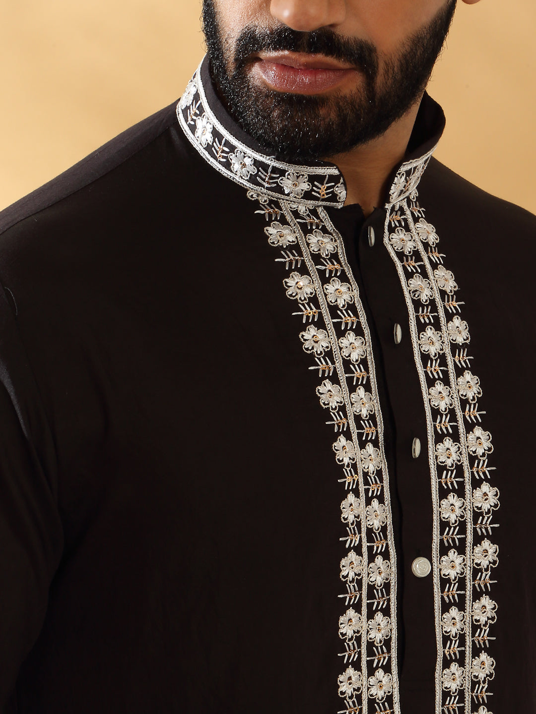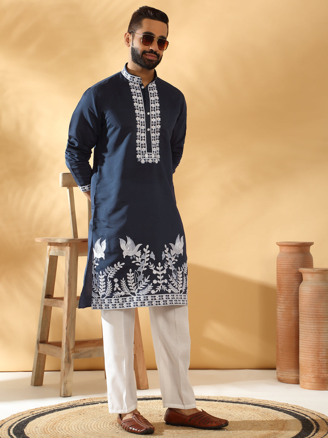Pair this timeless kurta with churidars, trousers, or mojaris for a classic and distinguished appearance, perfect for grand occasions and festive events.