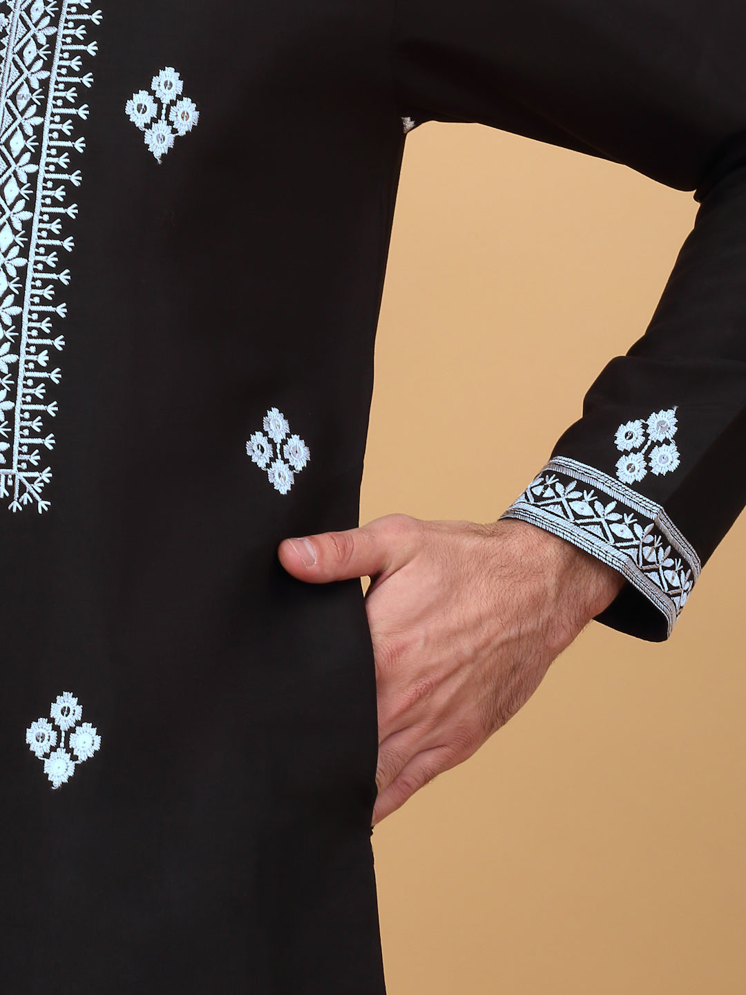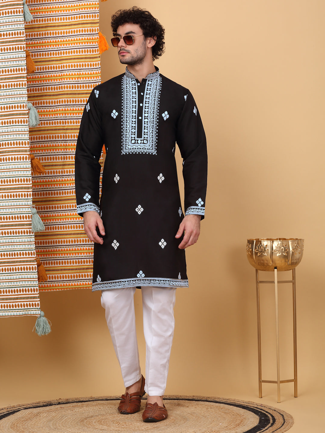 Introducing our Men's Cotton Embroidered Sequin Pathani Kurta Salwar, a distinguished ensemble that seamlessly blends traditional charm with contemporary flair. This outfit features a classic shirt collar and roll-up sleeves, providing both style and versatility. The kurta is adorned with intricate embroidery and subtle sequin embellishments, adding a touch of elegance and sophistication. Practical side pockets enhance functionality, while the accompanying salwar completes the traditional look. Crafted from high-quality cotton, this set ensures comfort and breathability, making it an ideal choice for festive occasions and cultural celebrations.