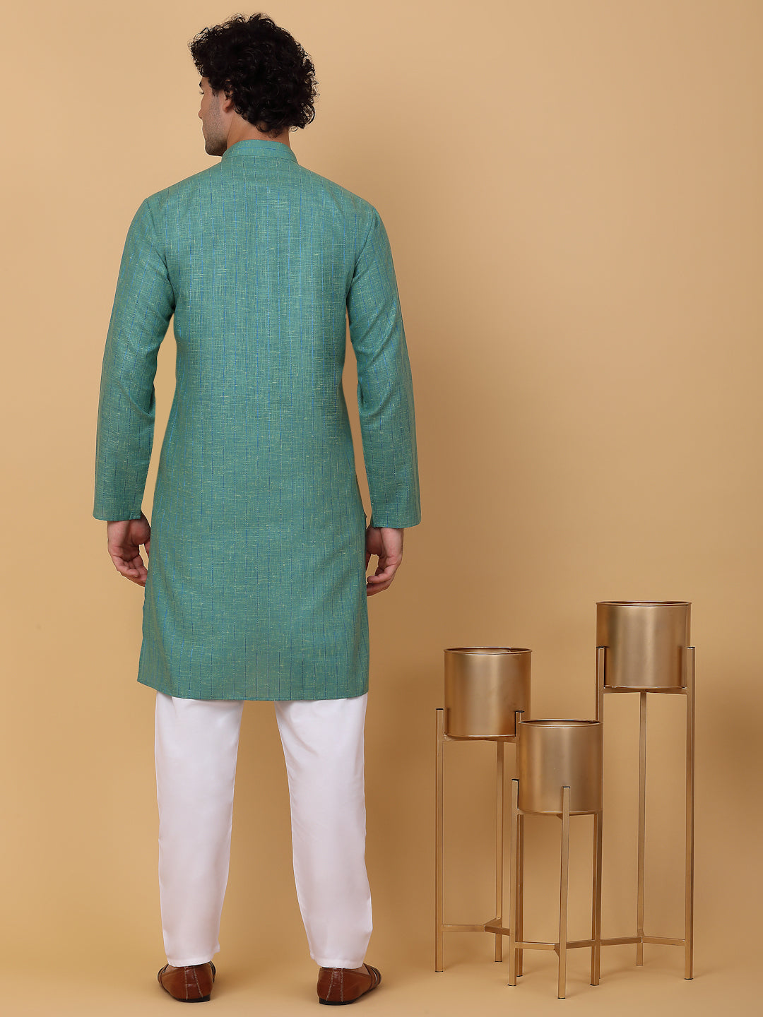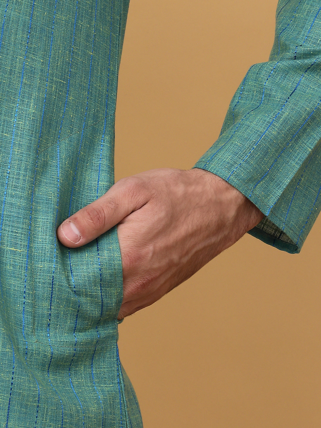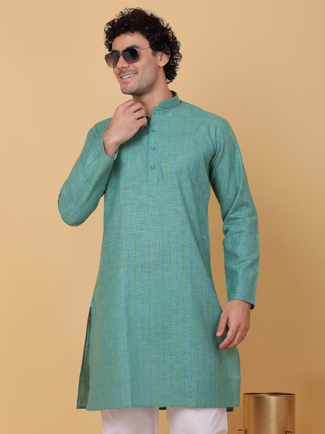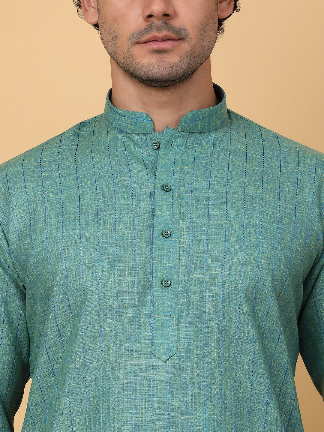 KRAFT INDIA Men Cotton Linen Striped Thread Work Knee Length Kurta Only