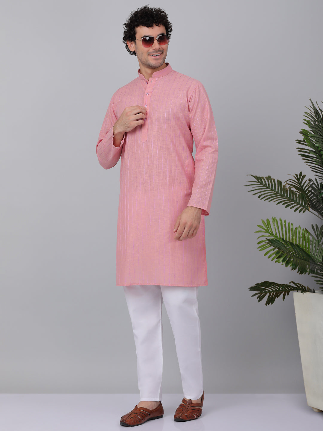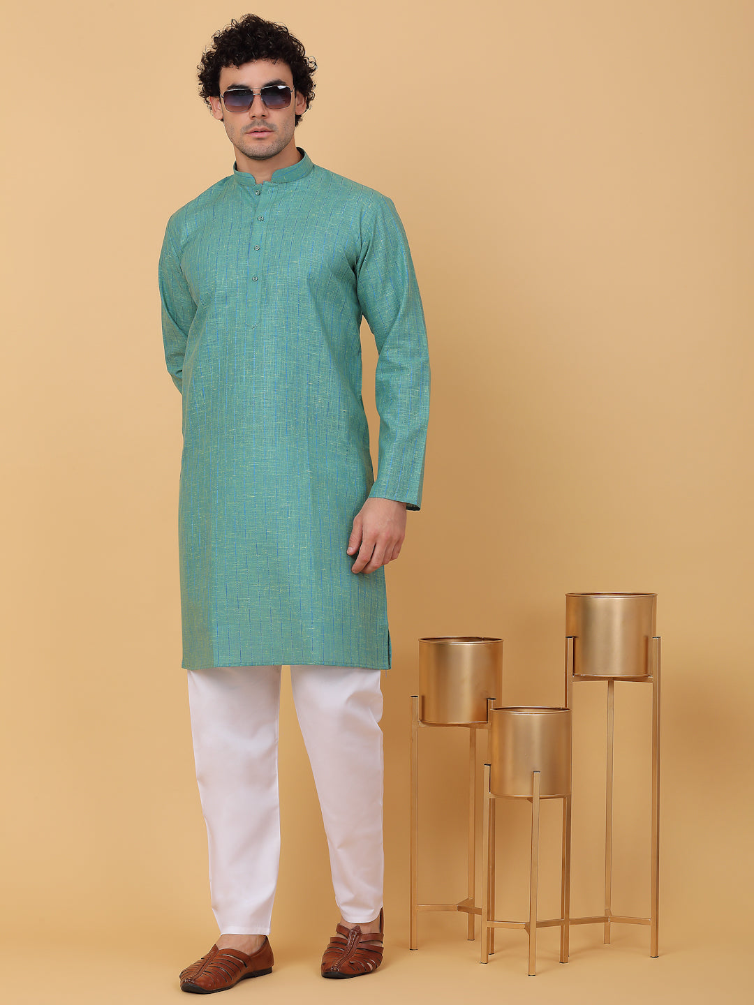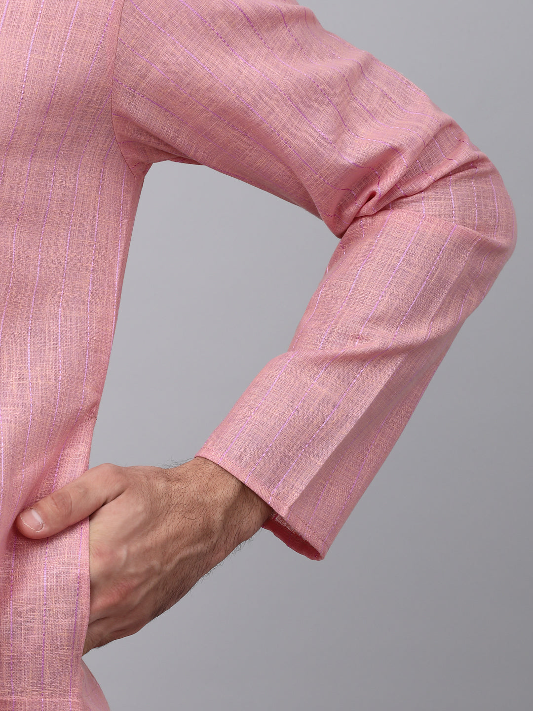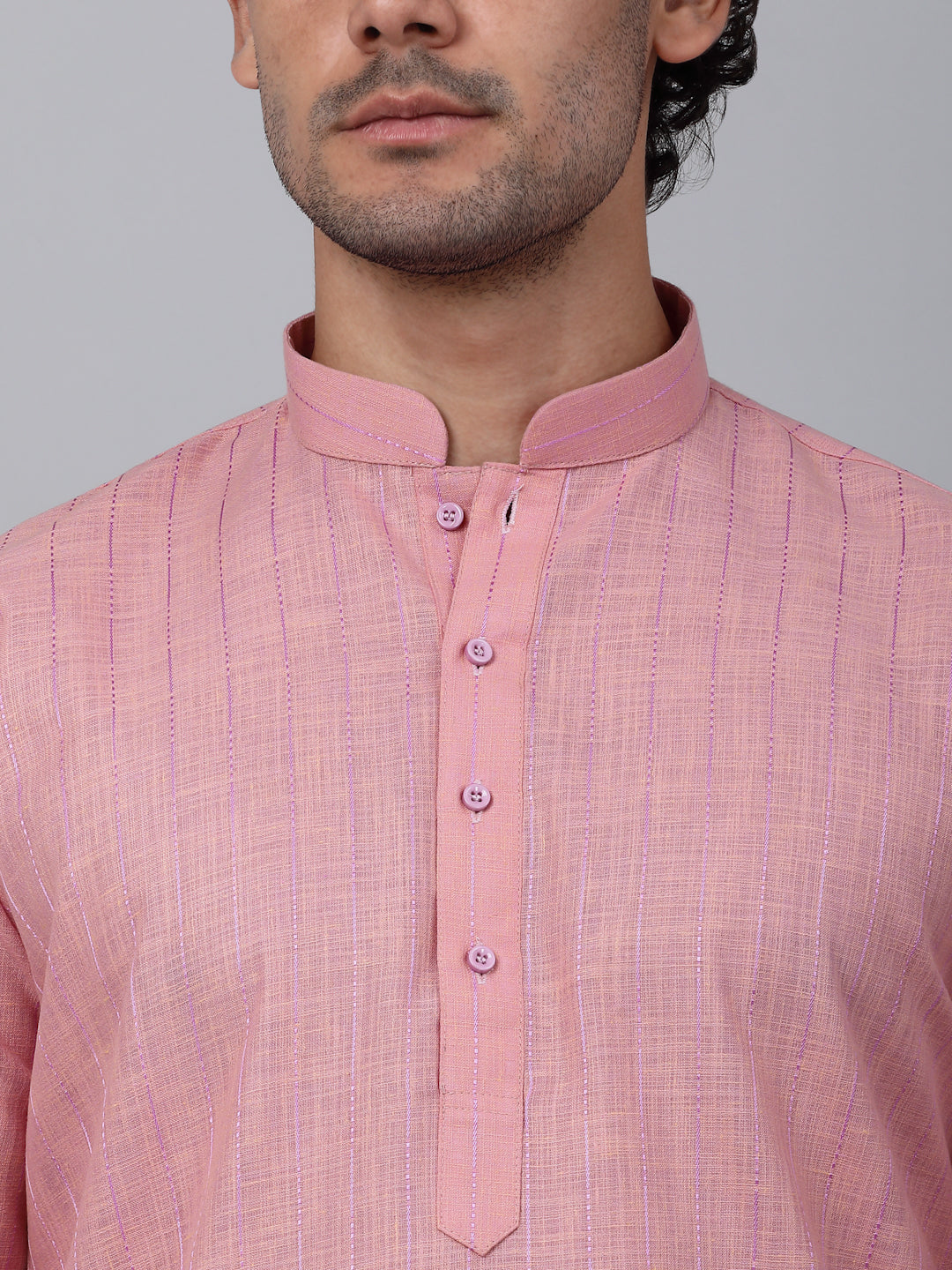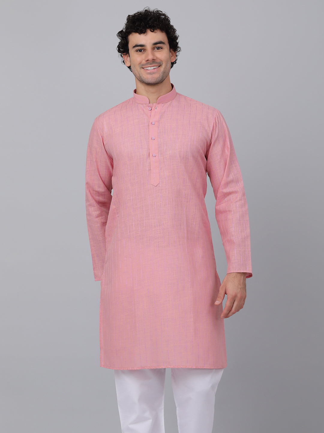 KRAFT INDIA Men Cotton Linen Striped Thread Work Knee Length Kurta Only