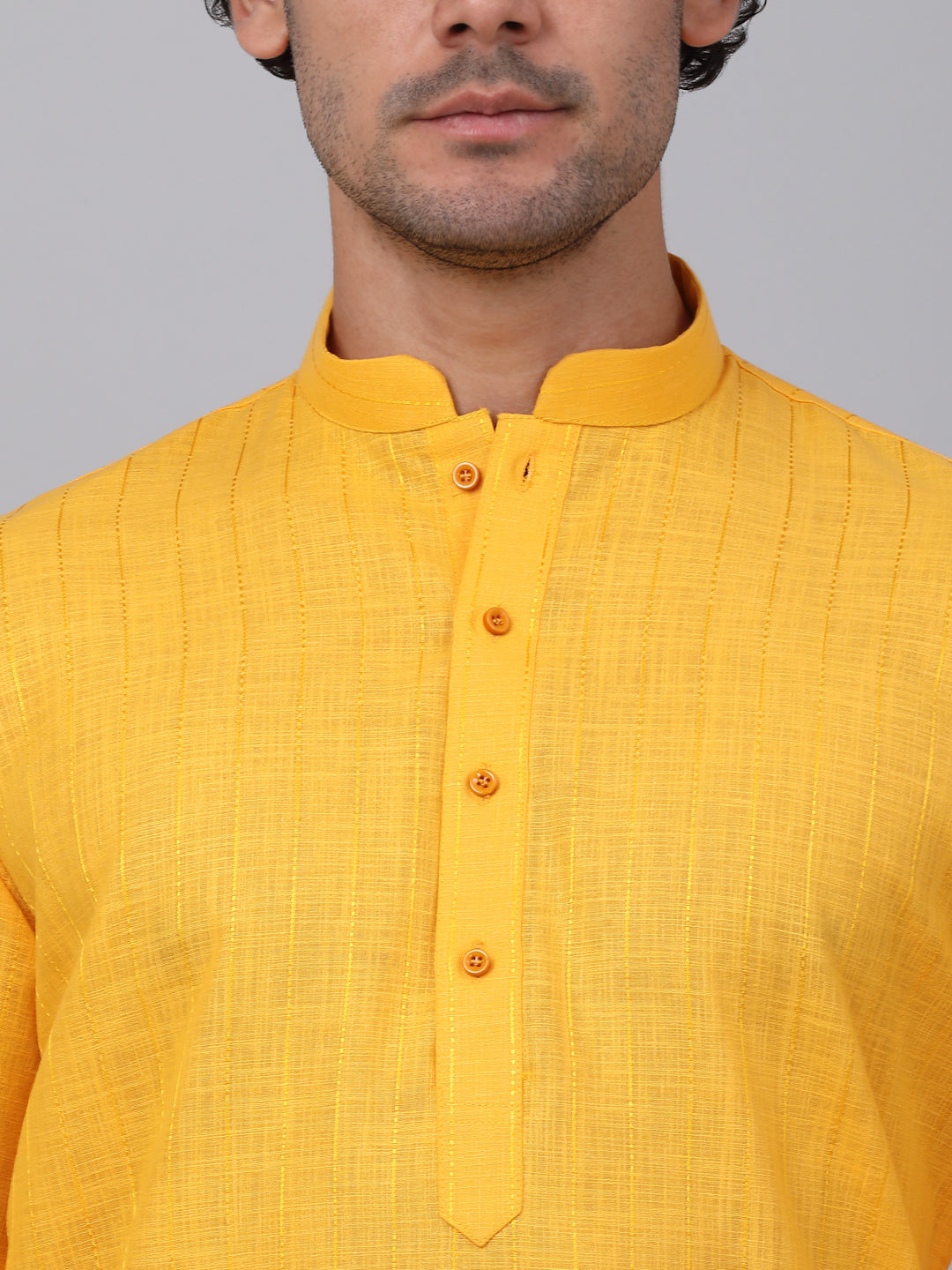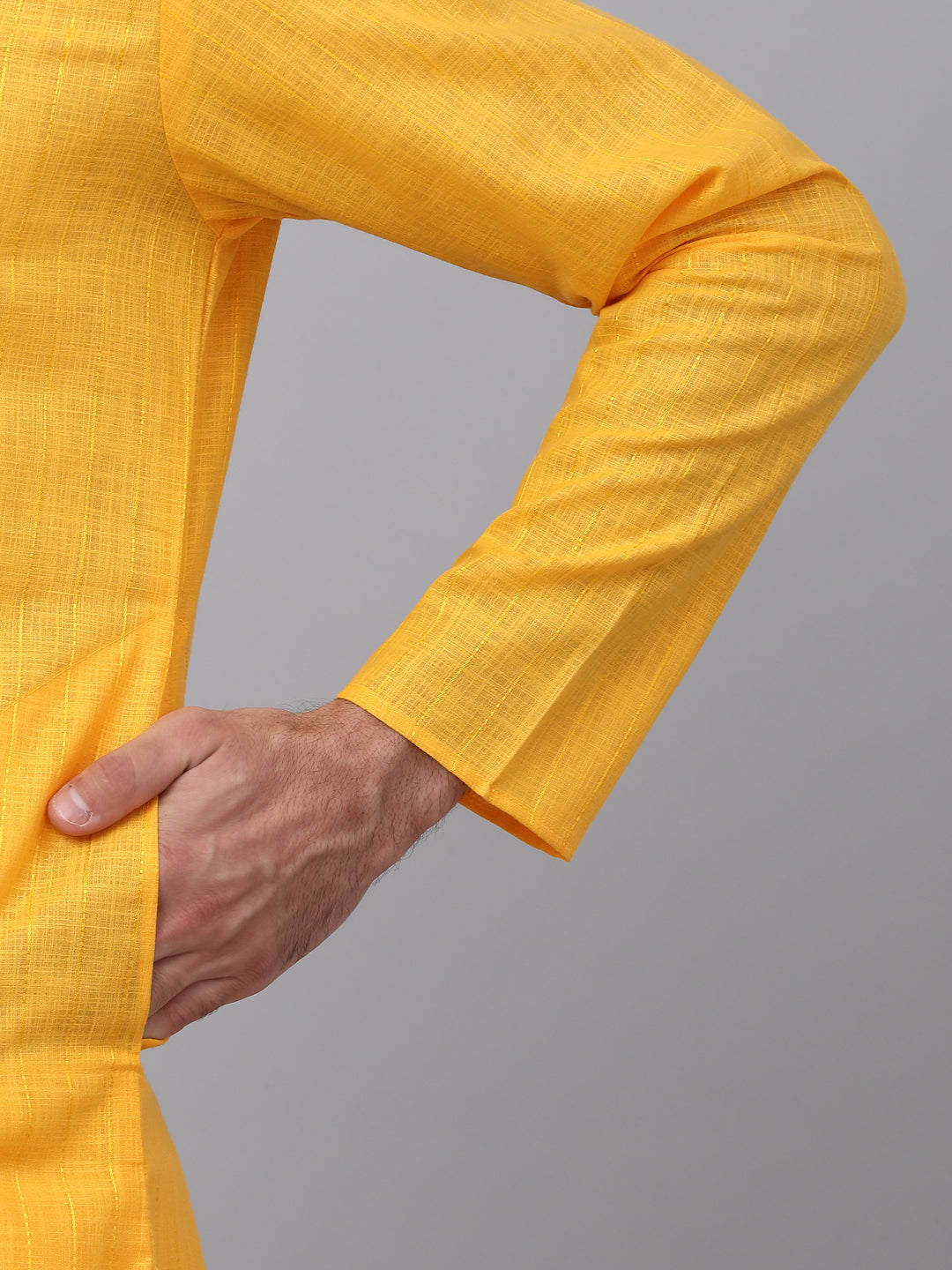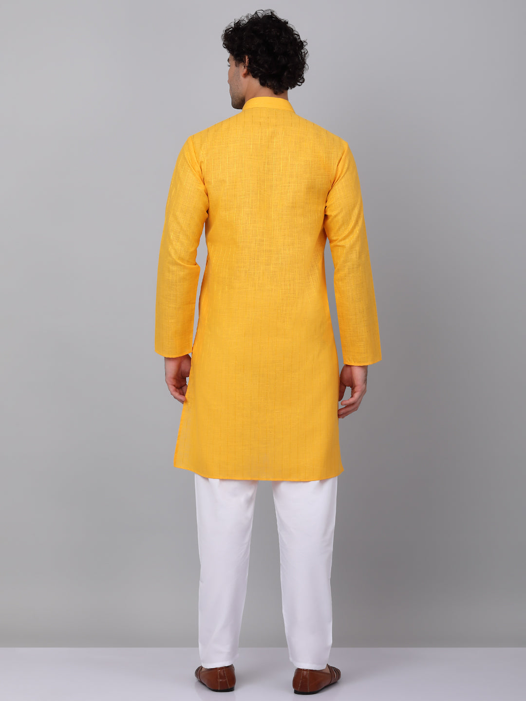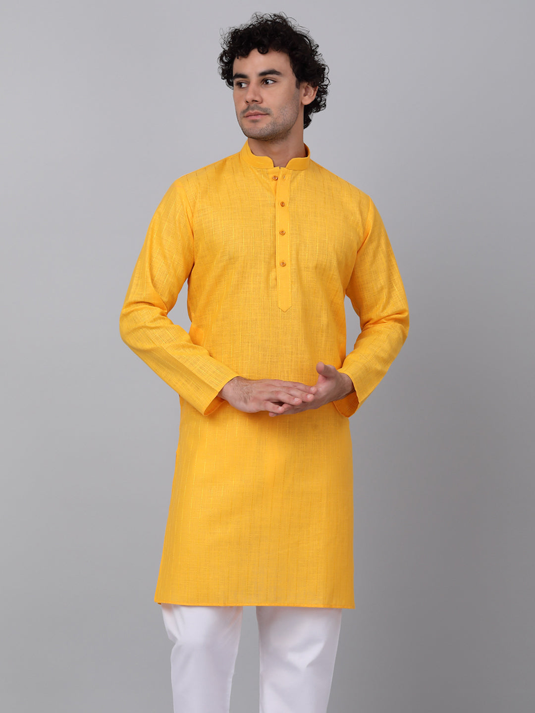 KRAFT INDIA Men Cotton Linen Striped Thread Work Knee Length Kurta Only