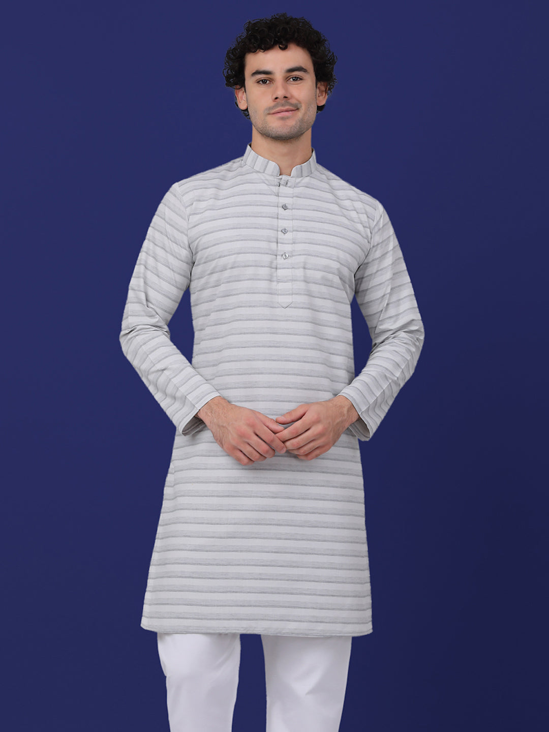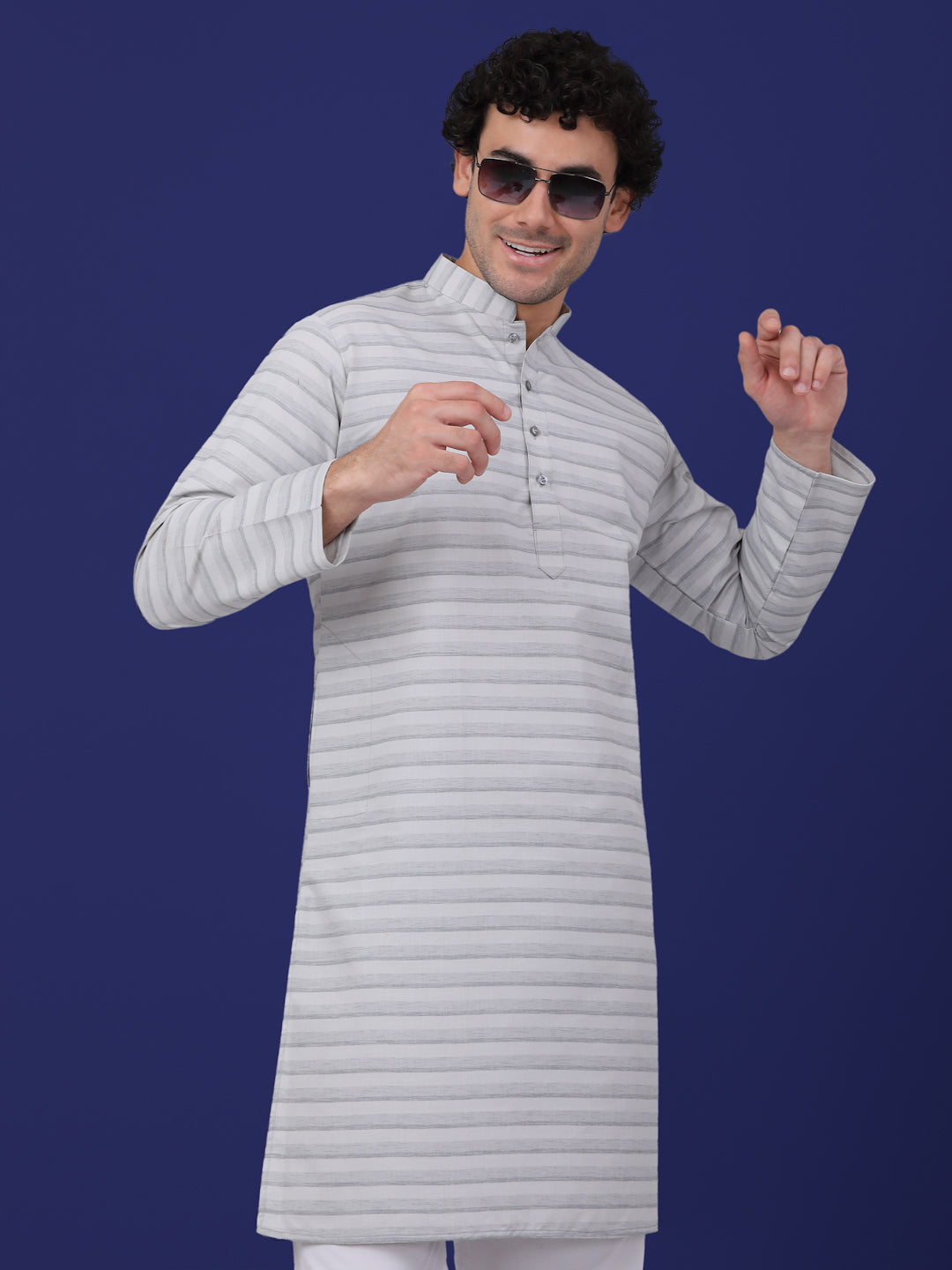 KRAFT INDIA Men Pure Cotton Striped Knee Length Kurta Only