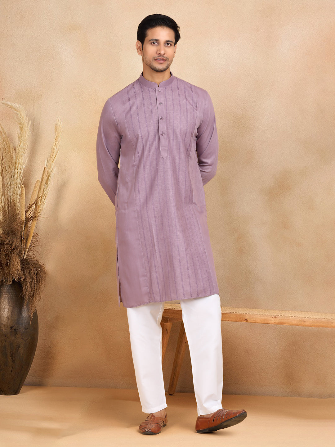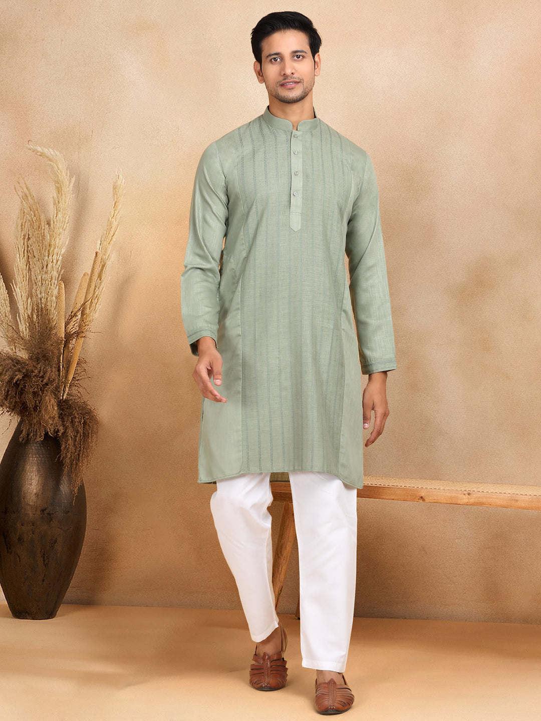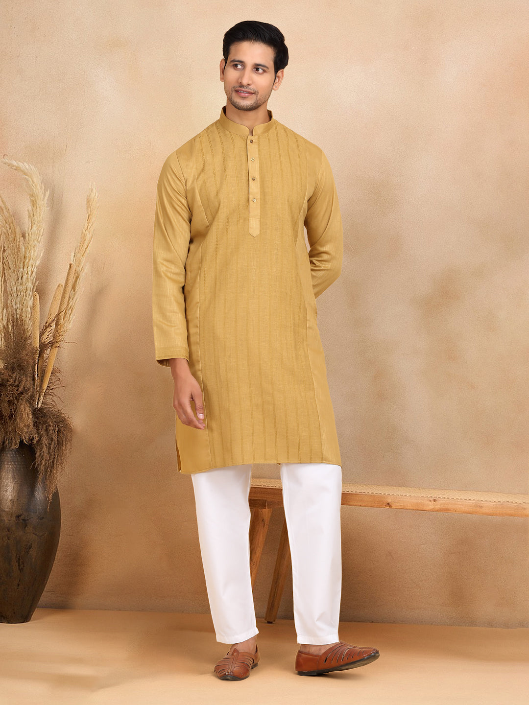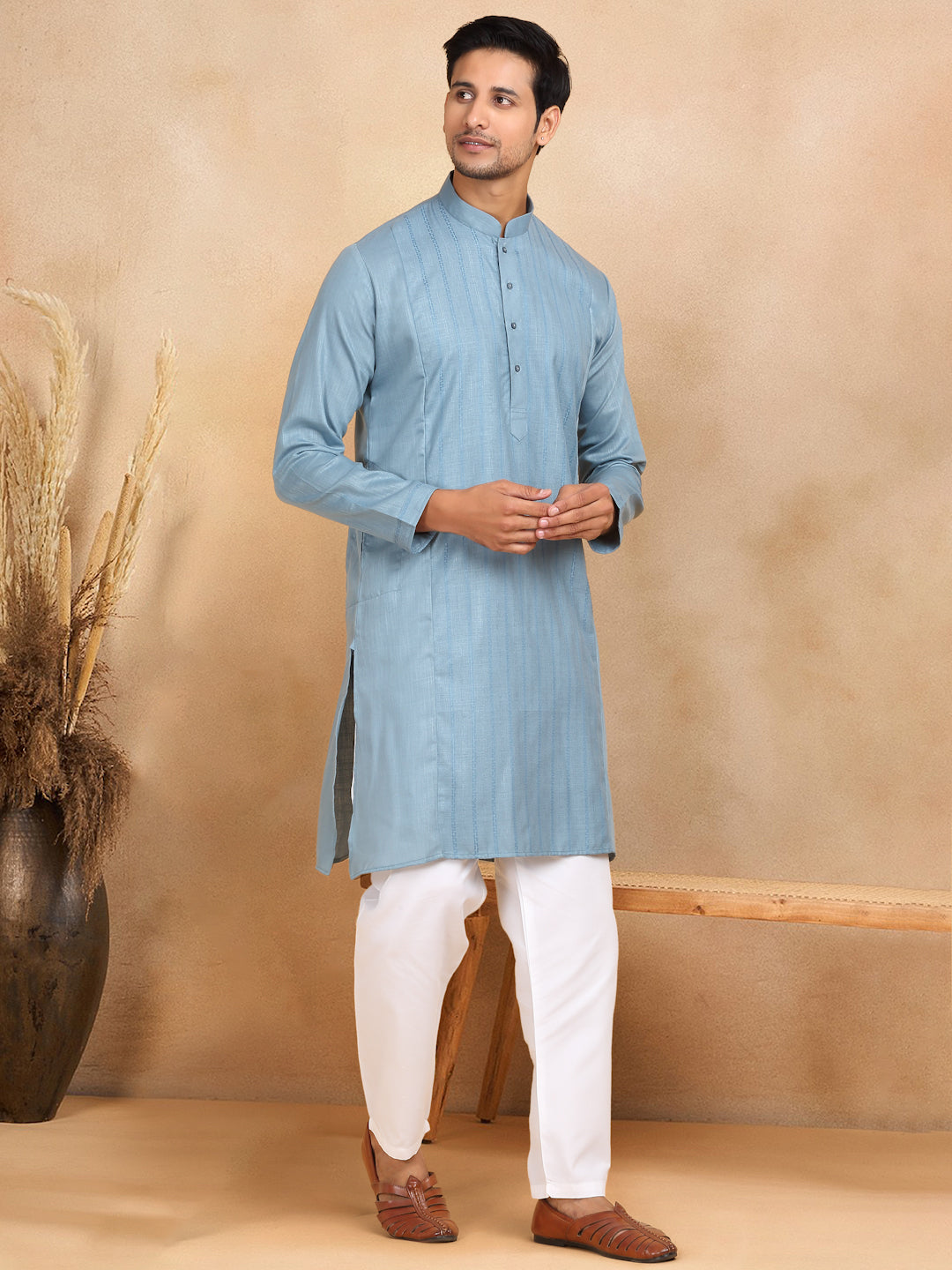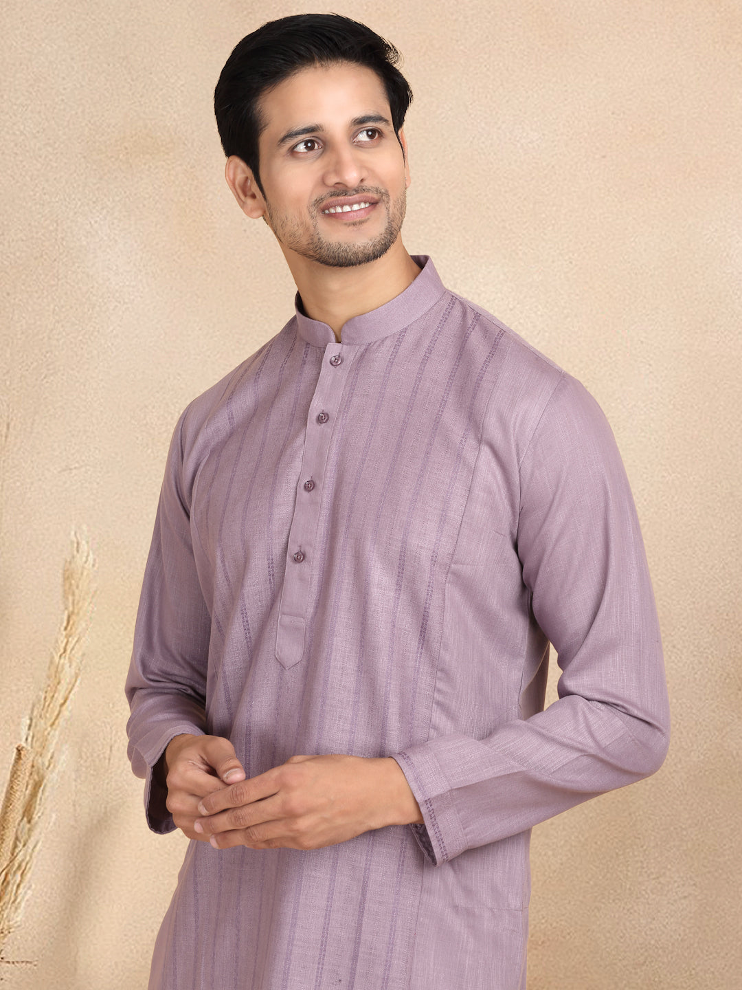 KRAFT INDIA Men's Regular Striped Mandarin Collar Long Sleeve Kurta