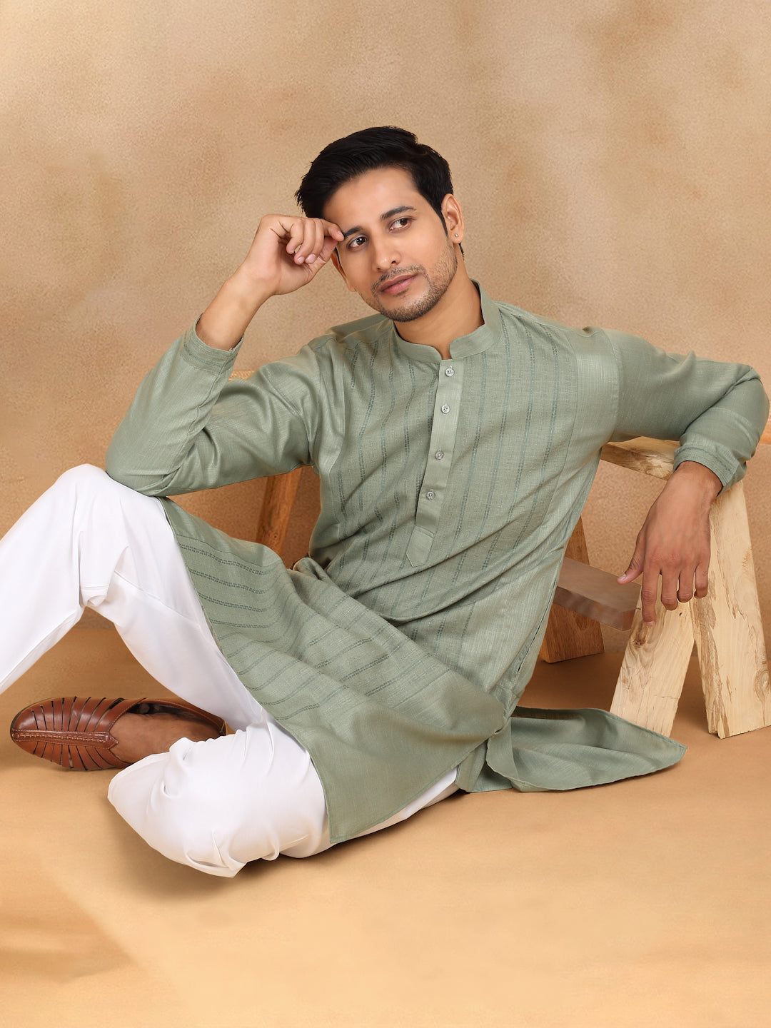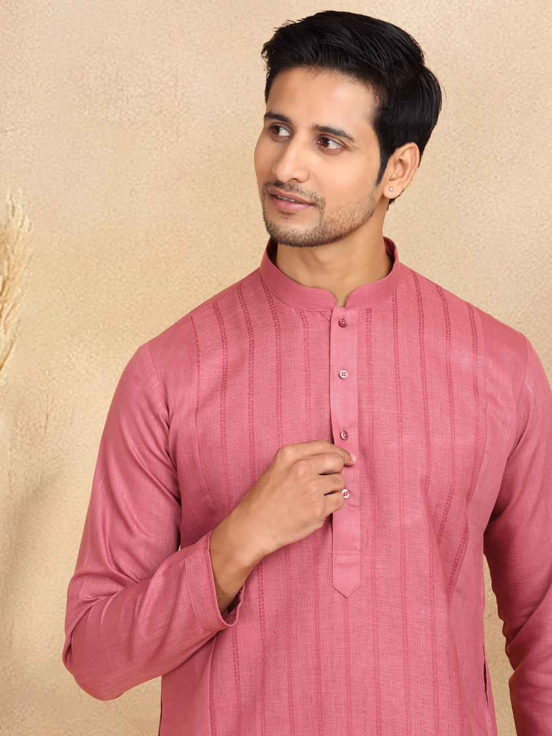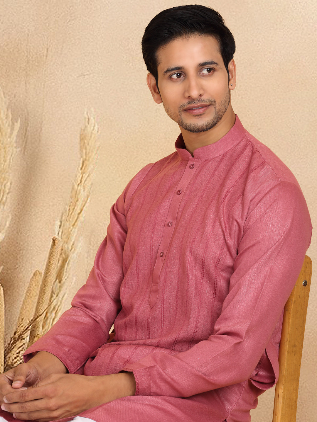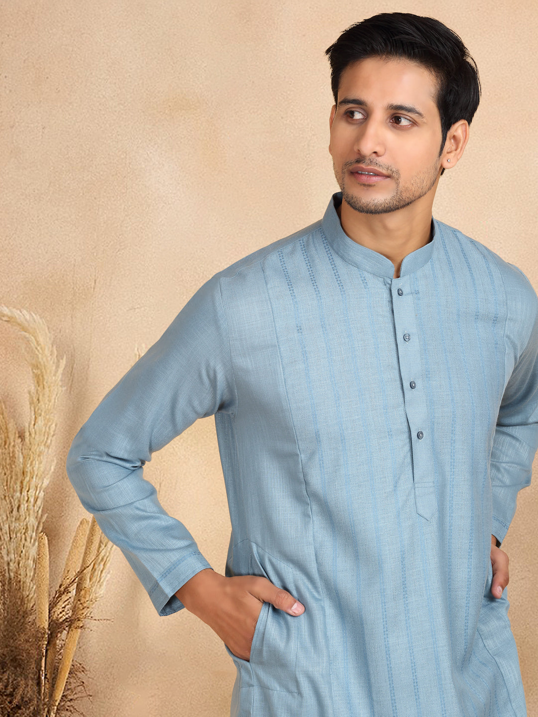 KRAFT INDIA Men's Regular Striped Mandarin Collar Long Sleeve Kurta