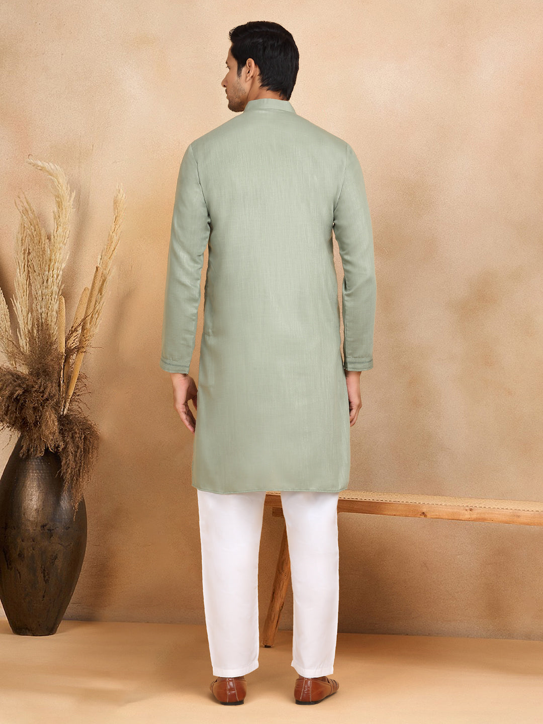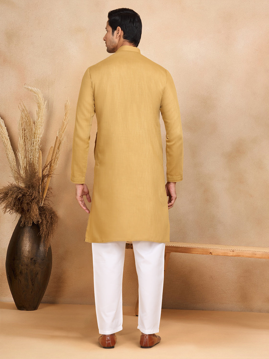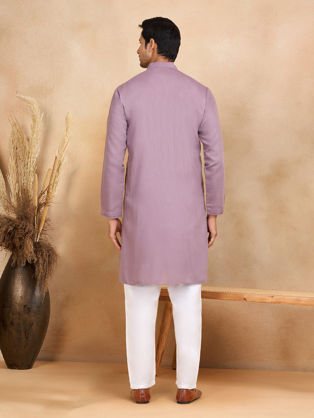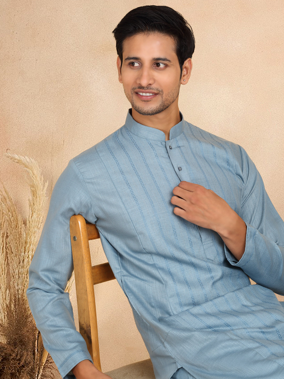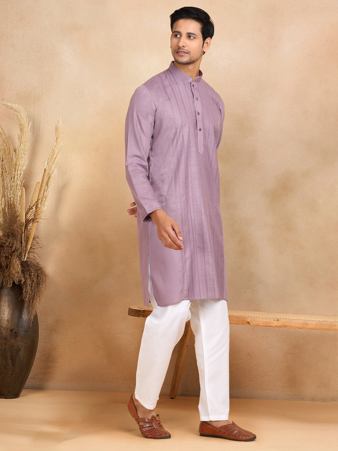 KRAFT INDIA Men's Regular Striped Mandarin Collar Long Sleeve Kurta