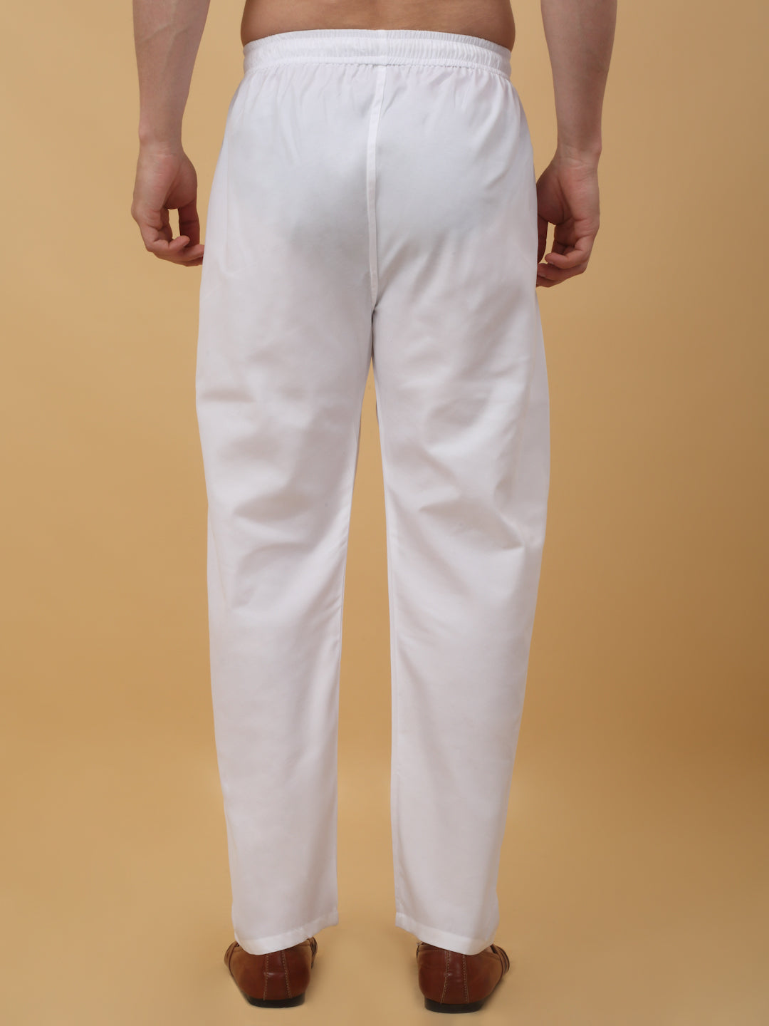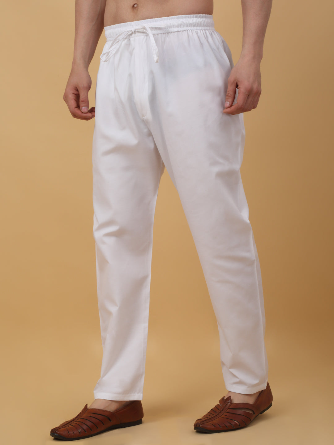 KRAFT INDIA Men's Cotton Blend White Elastic Waistband Churidar For Kurta
