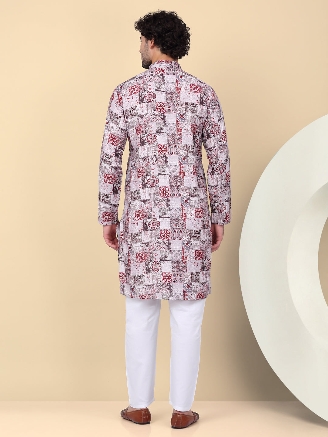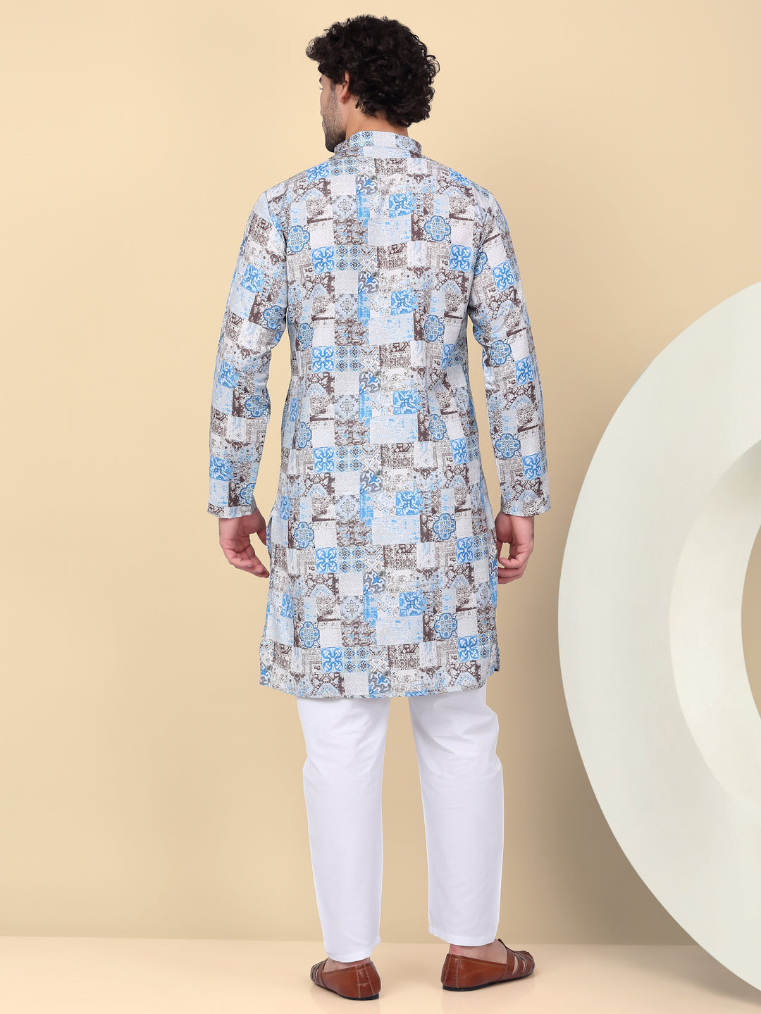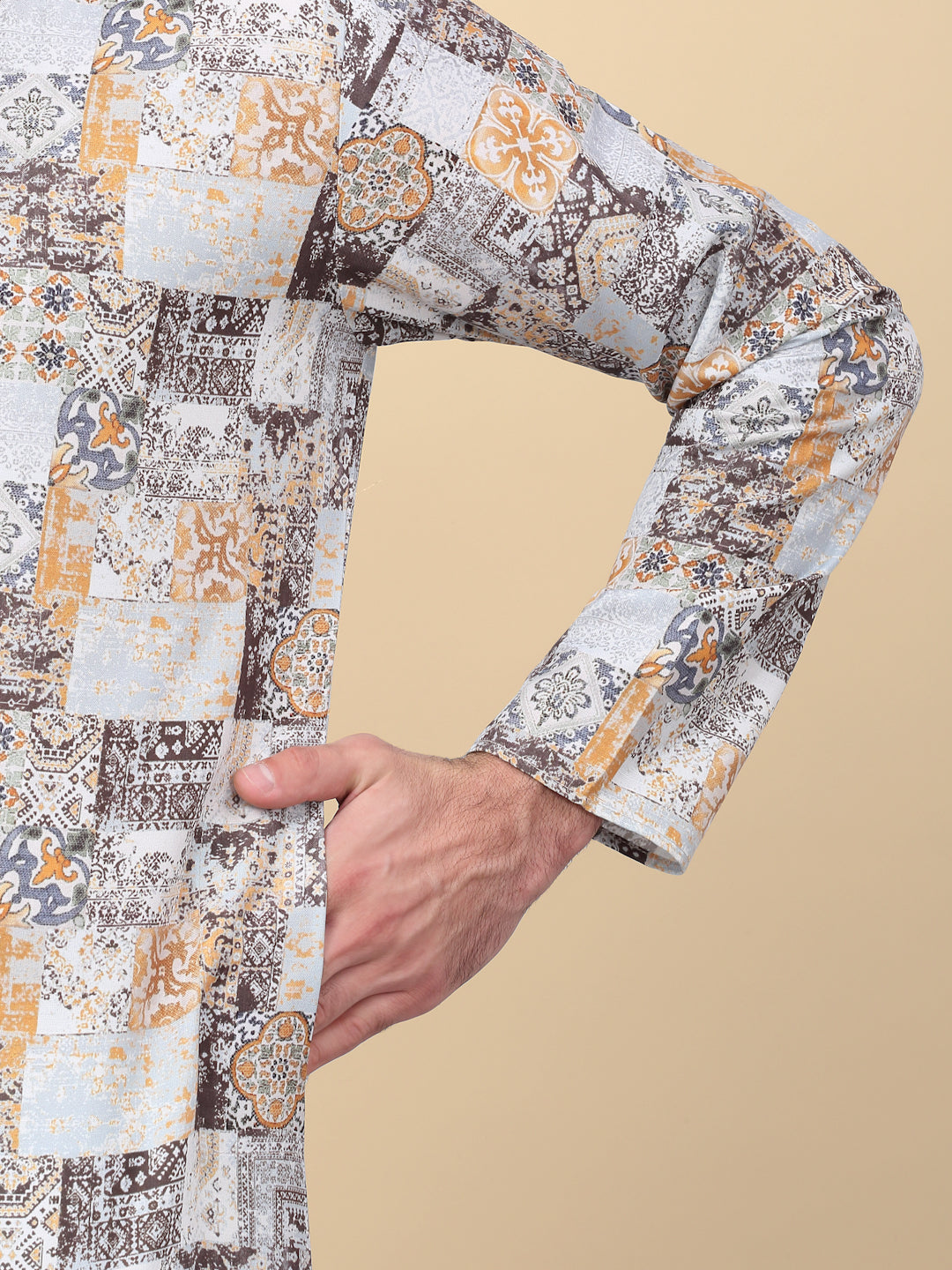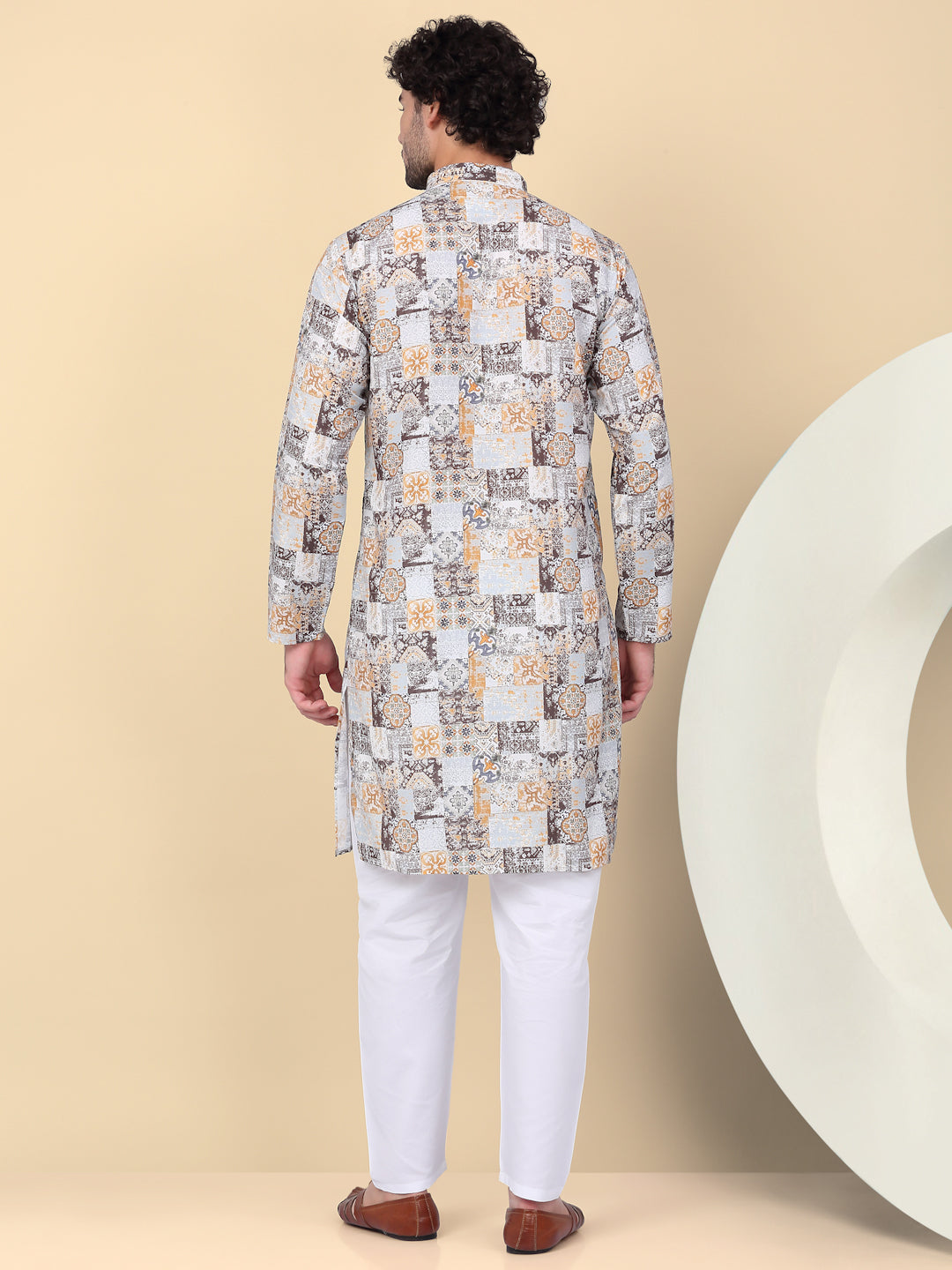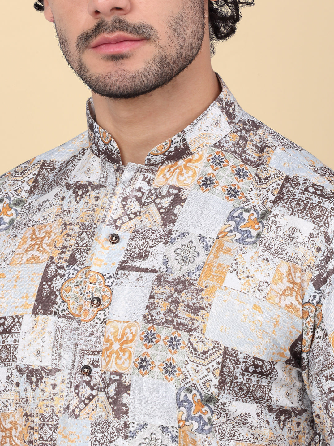 KRAFT INDIA Men's Cotton Regular Fit Abstract Printed Kurta