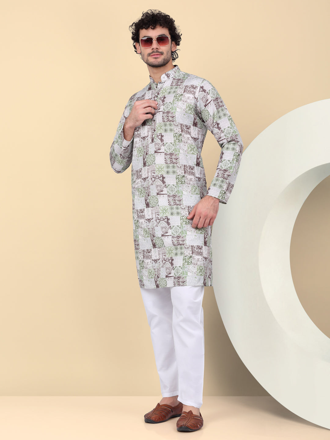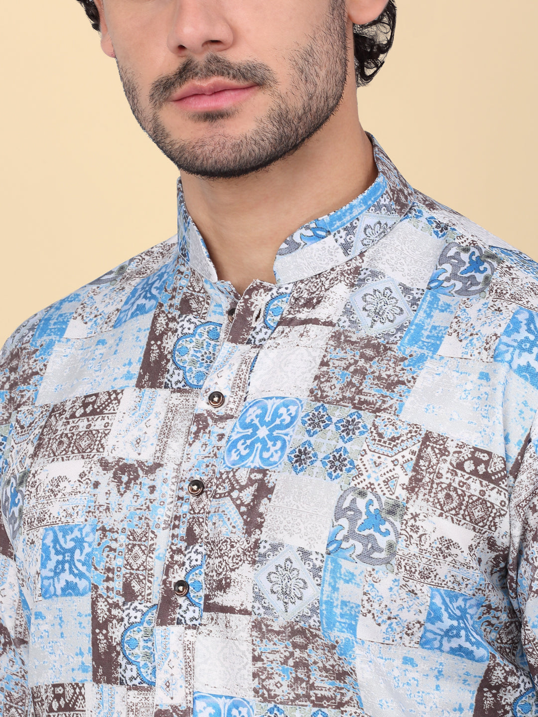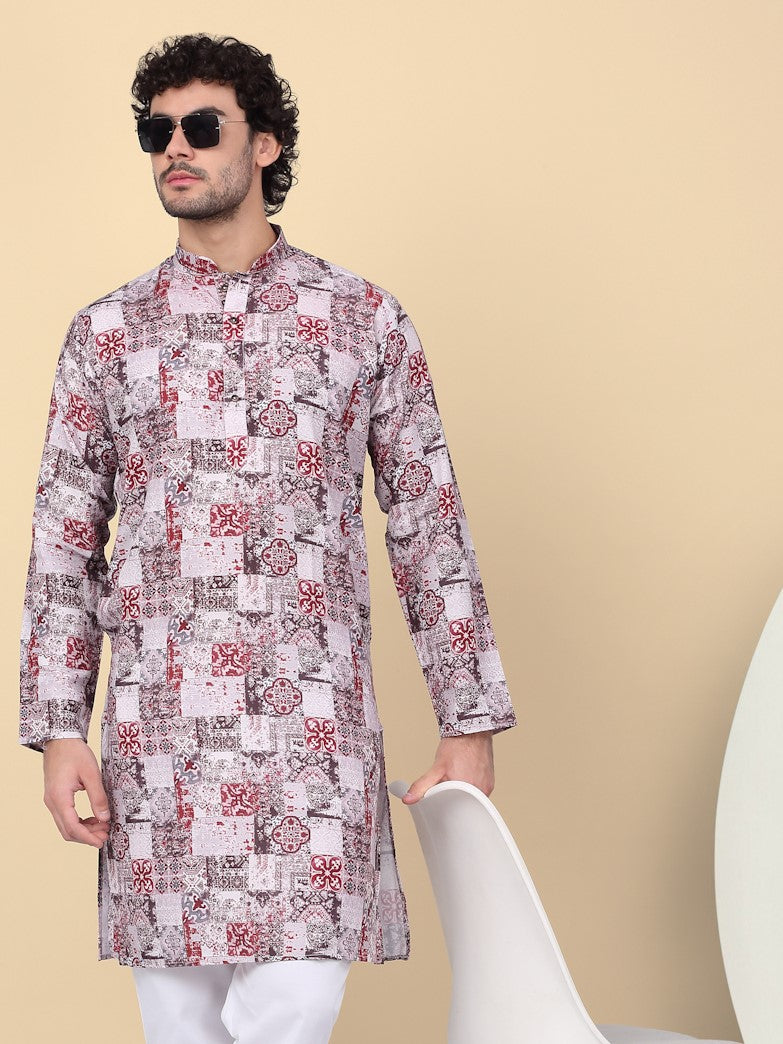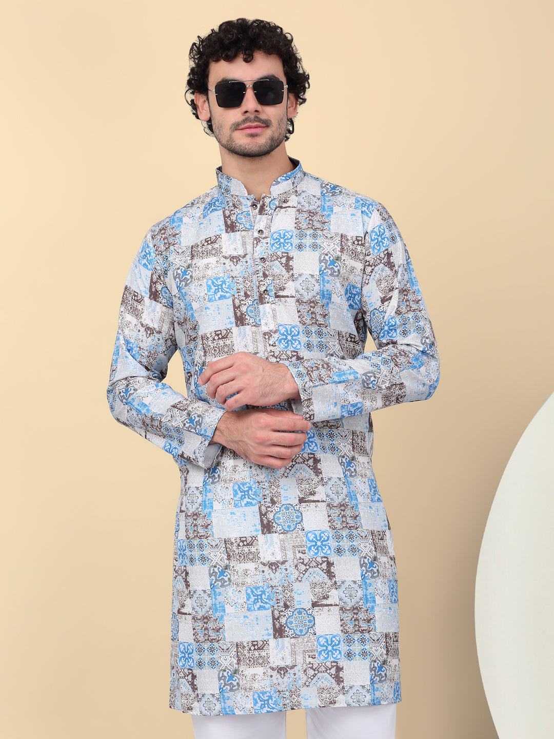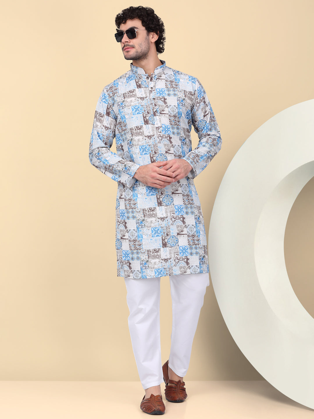 KRAFT INDIA Men's Cotton Regular Fit Abstract Printed Kurta