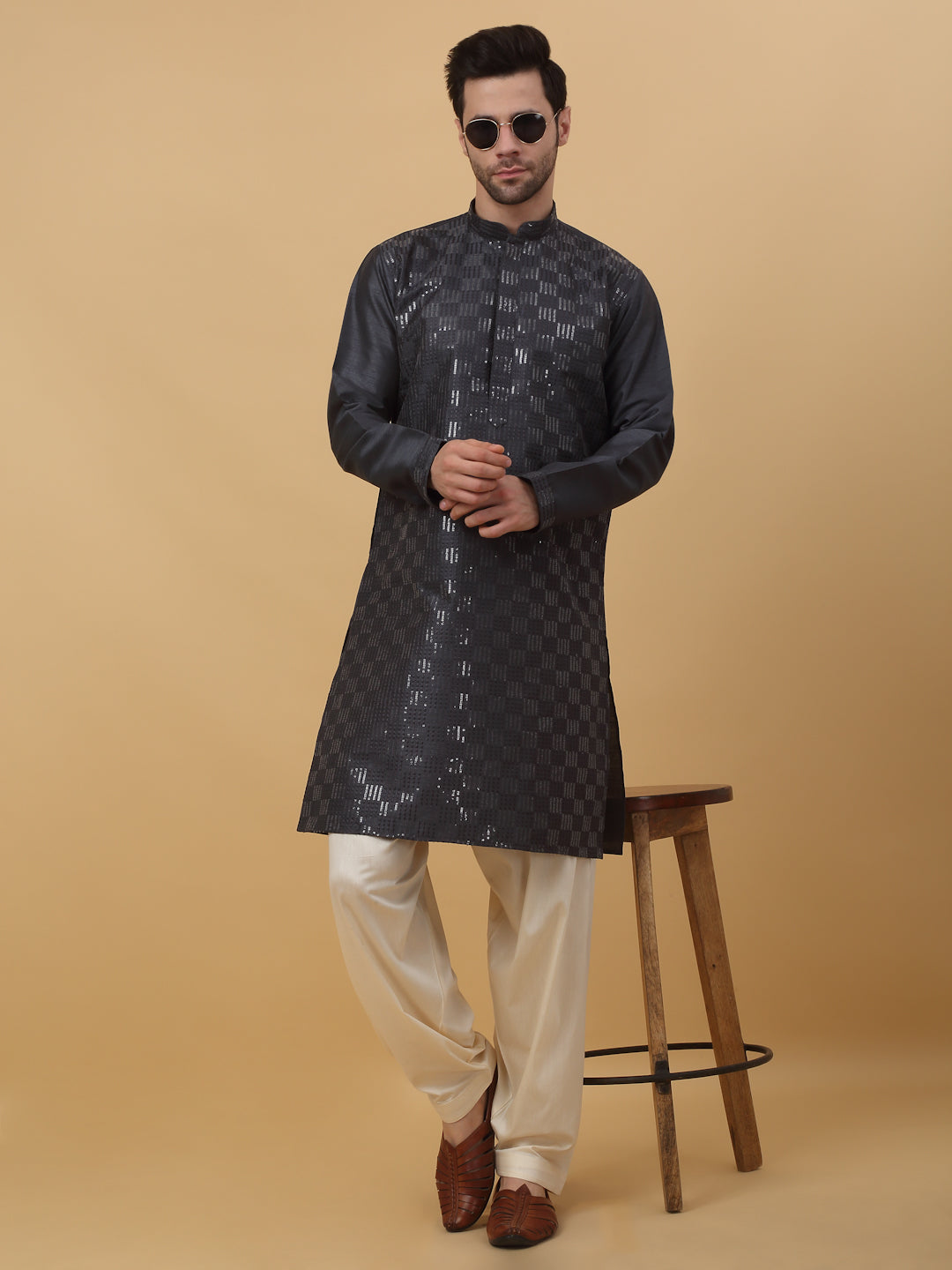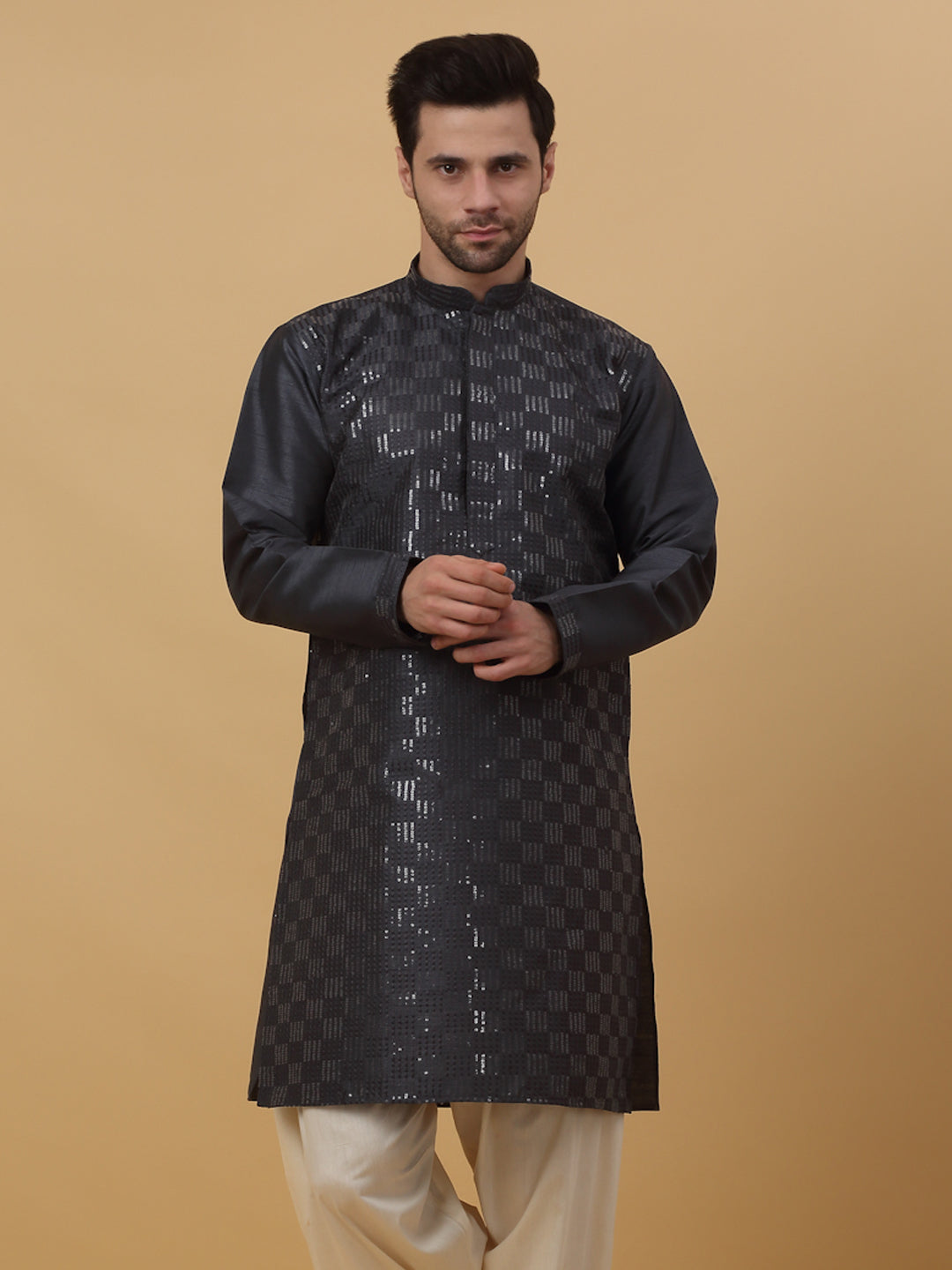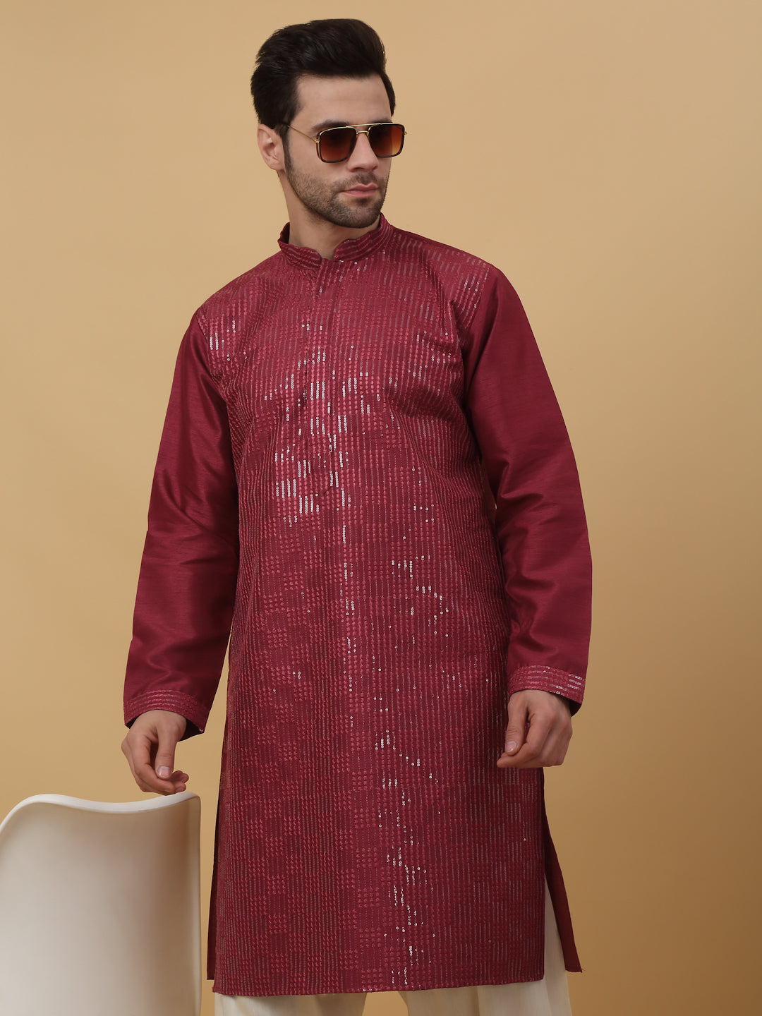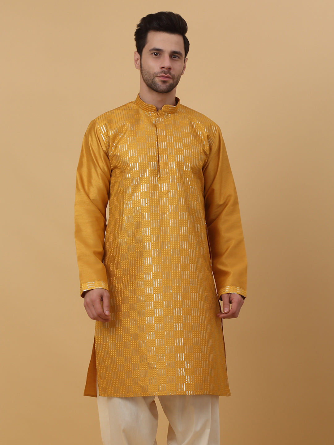 KRAFT INDIA Men's Cotton Silk Sequenced Embroidered Kurta Only
