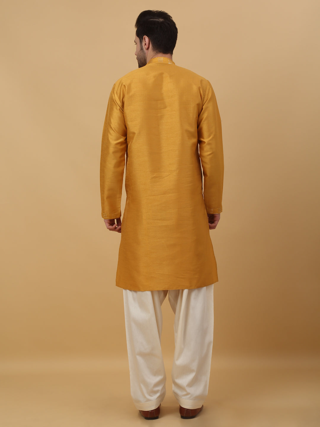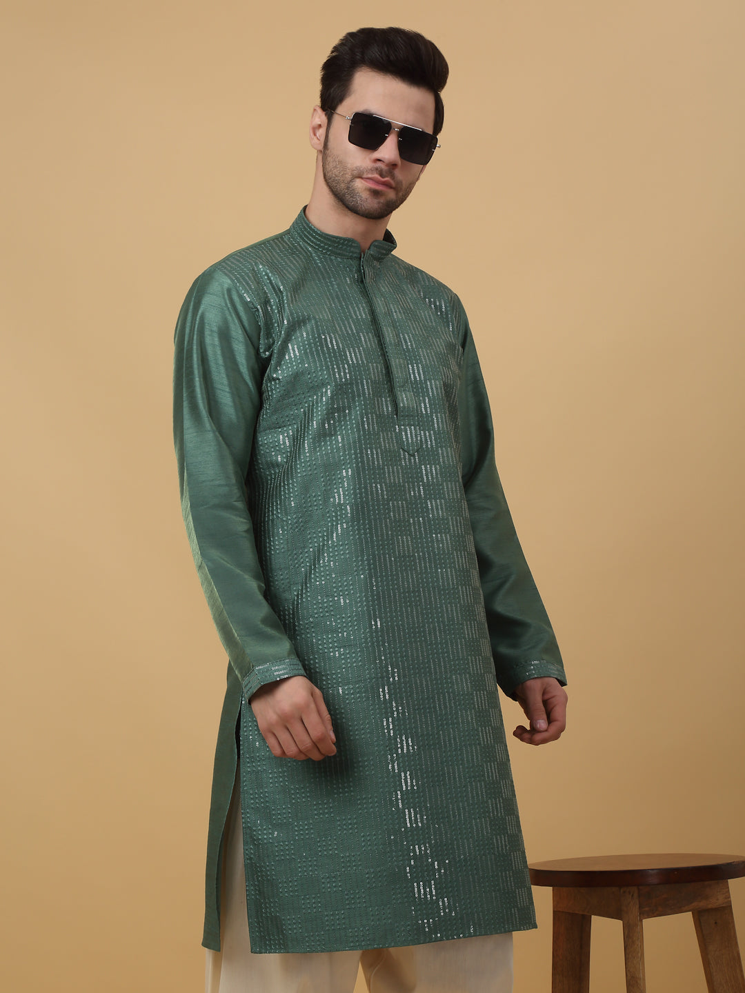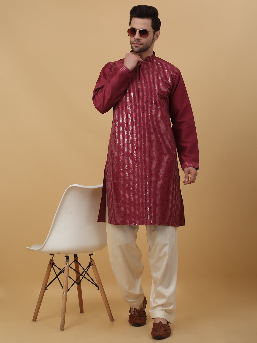 KRAFT INDIA Men's Cotton Silk Sequenced Embroidered Kurta Only