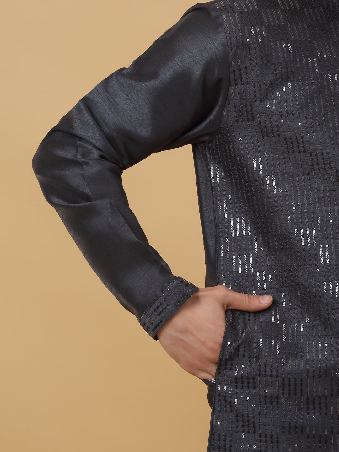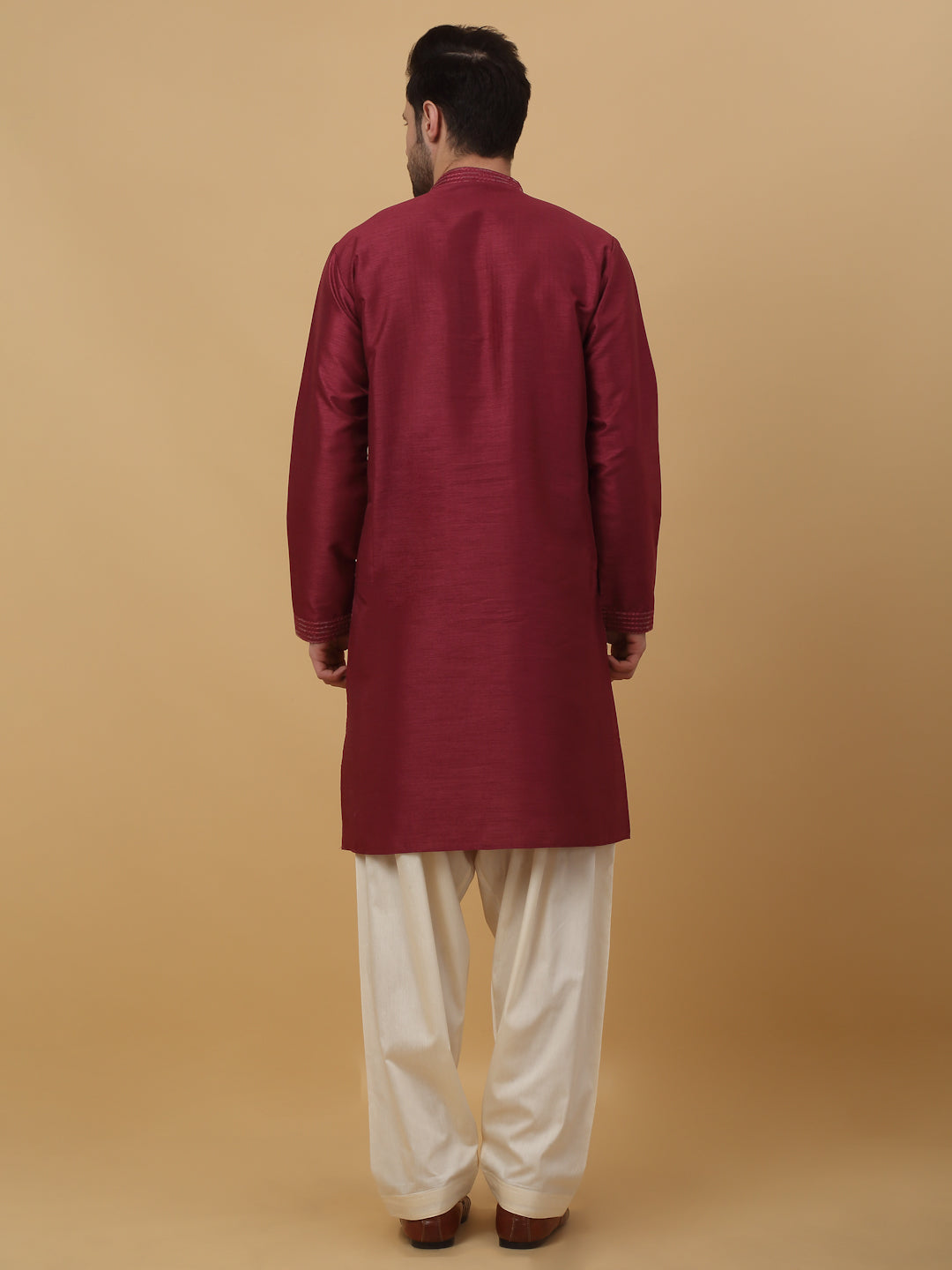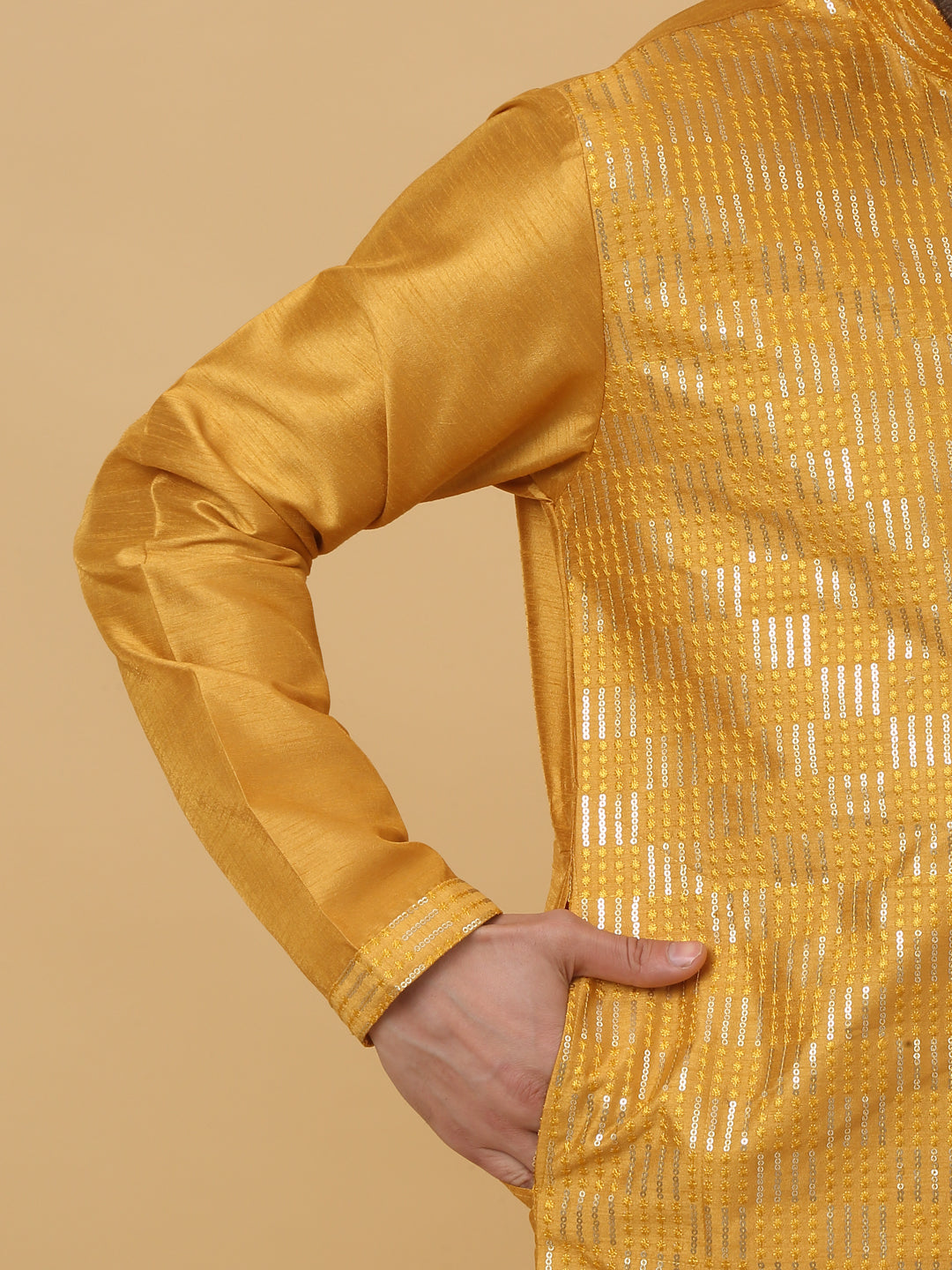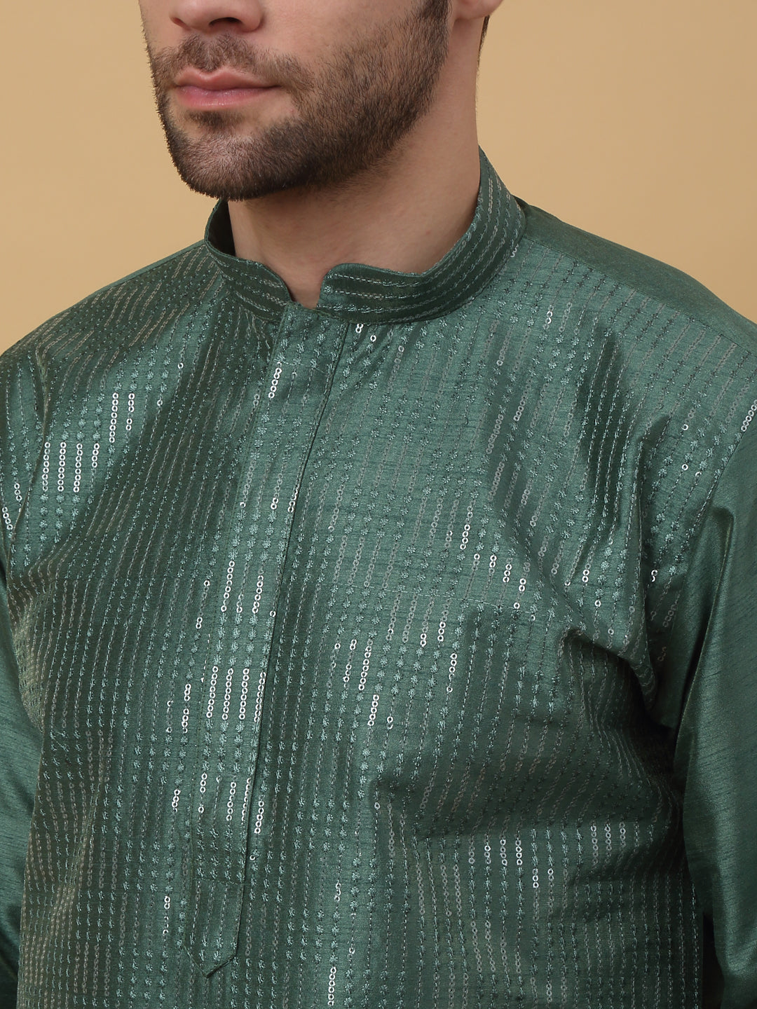 KRAFT INDIA Men's Cotton Silk Sequenced Embroidered Kurta Only
