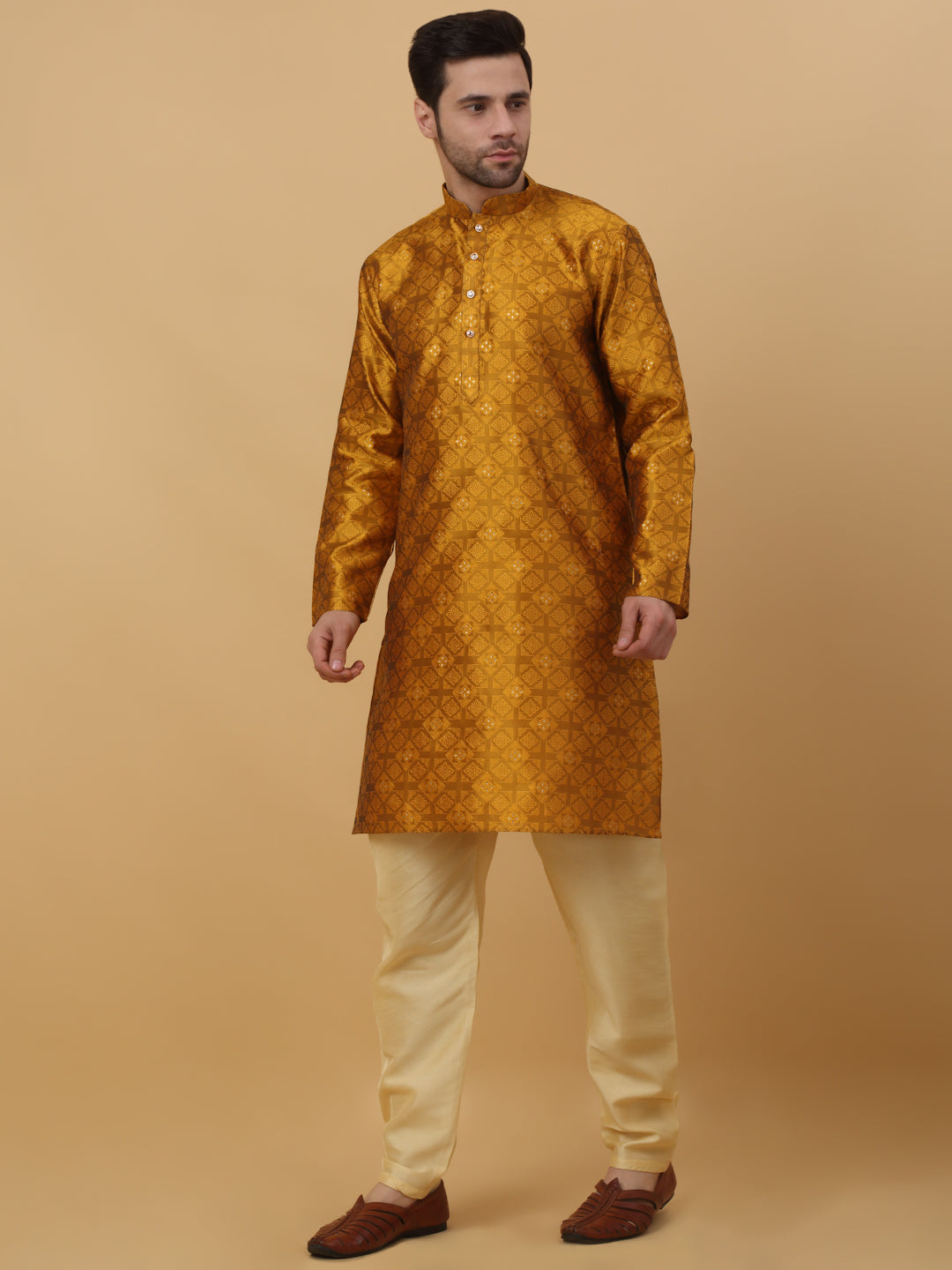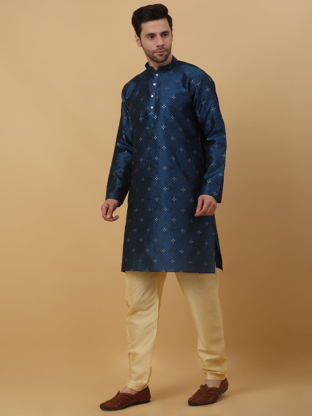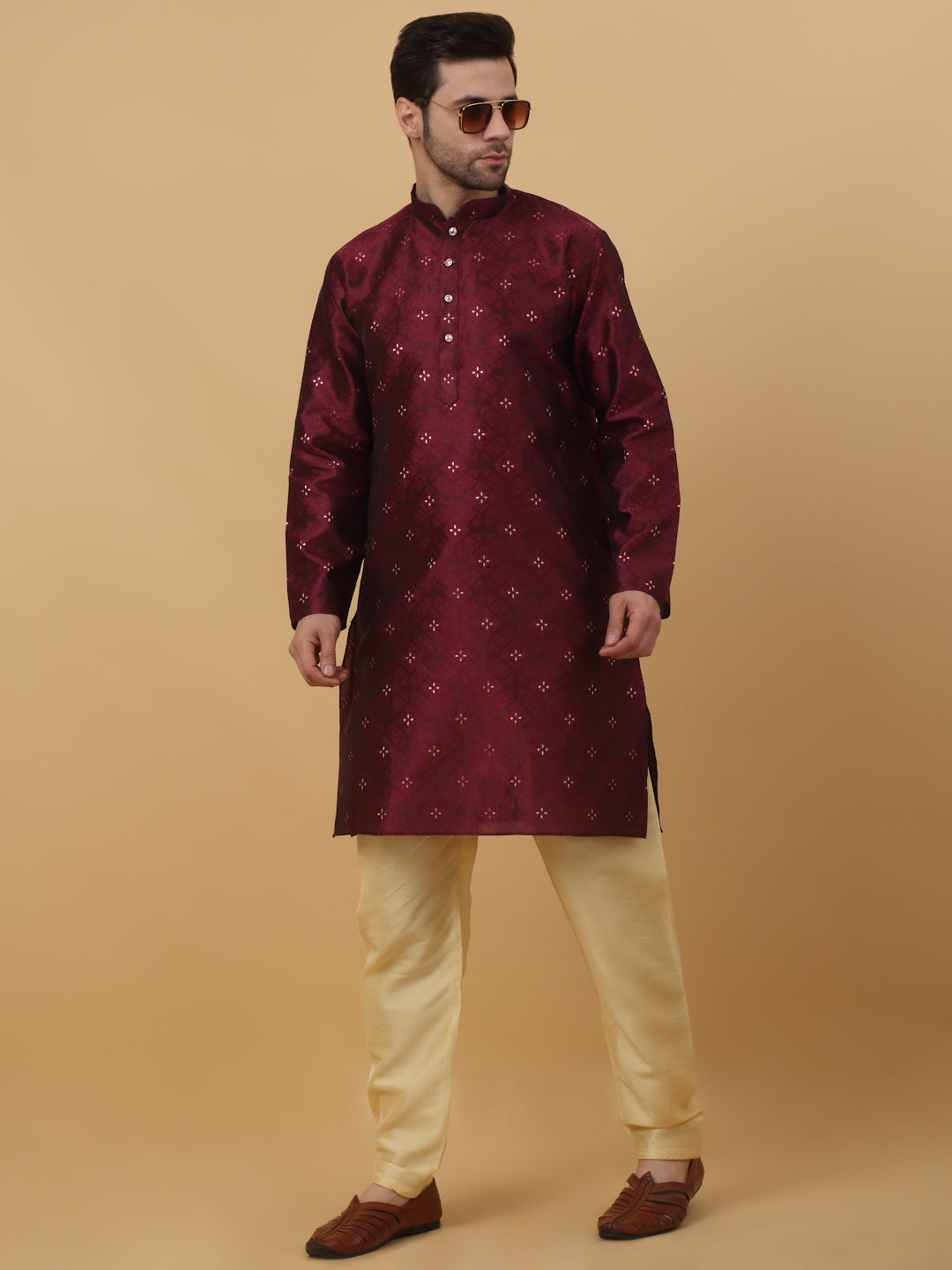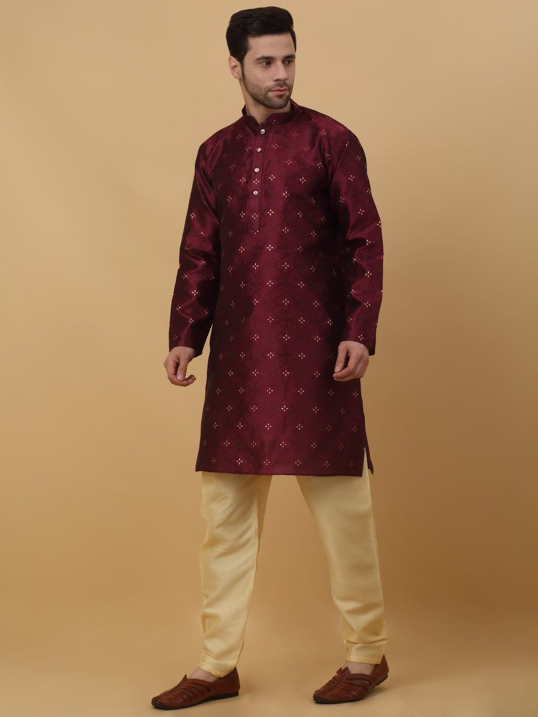 KRAFT INDIA Men's Silk Blend Jacquard Sequenced Kurta Only