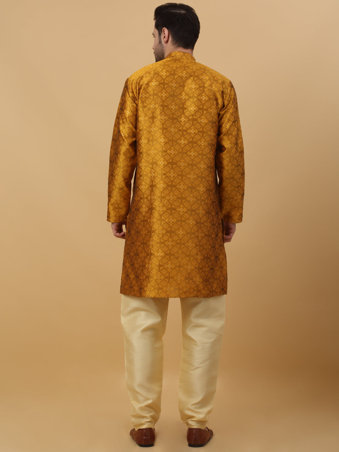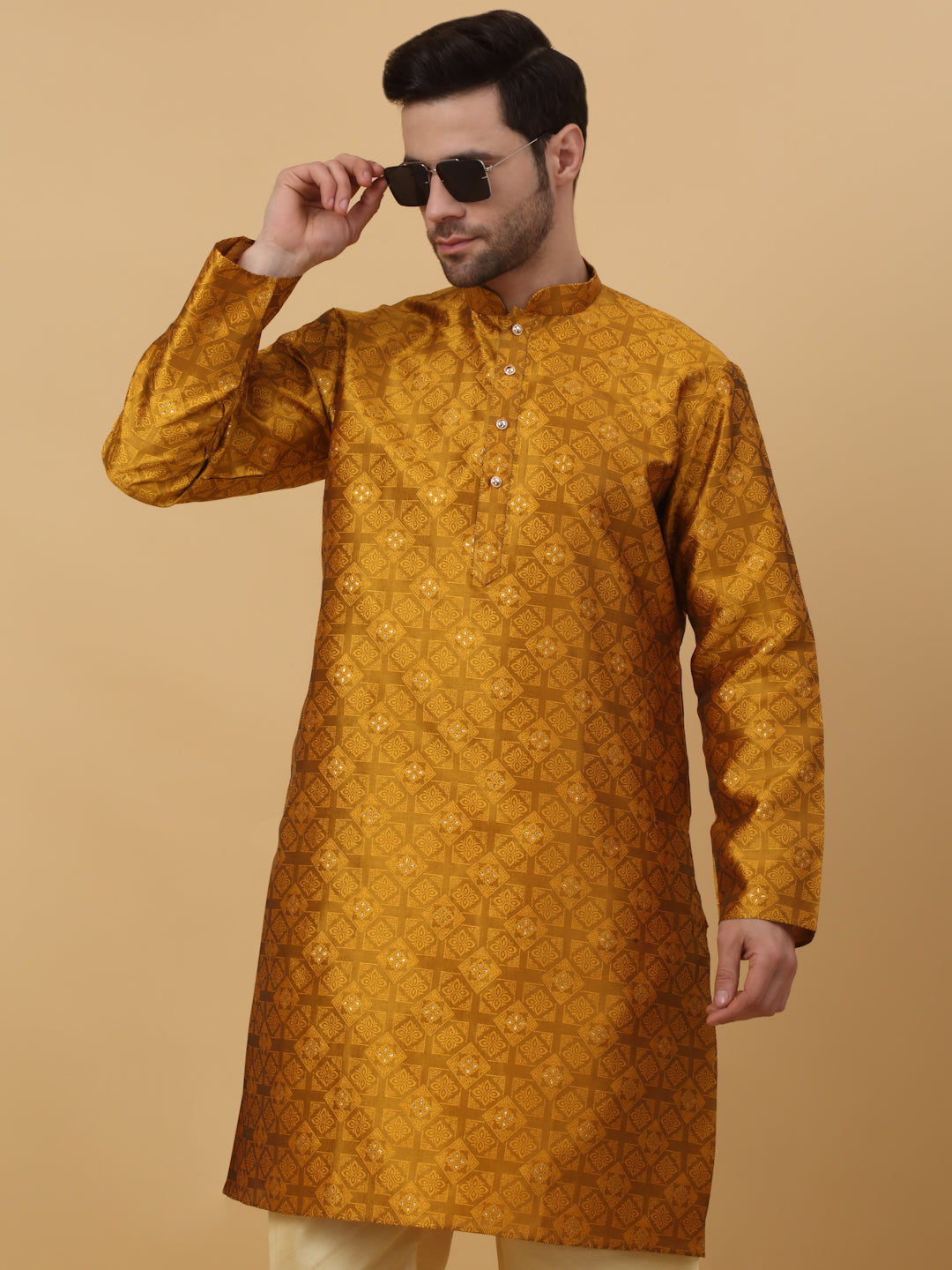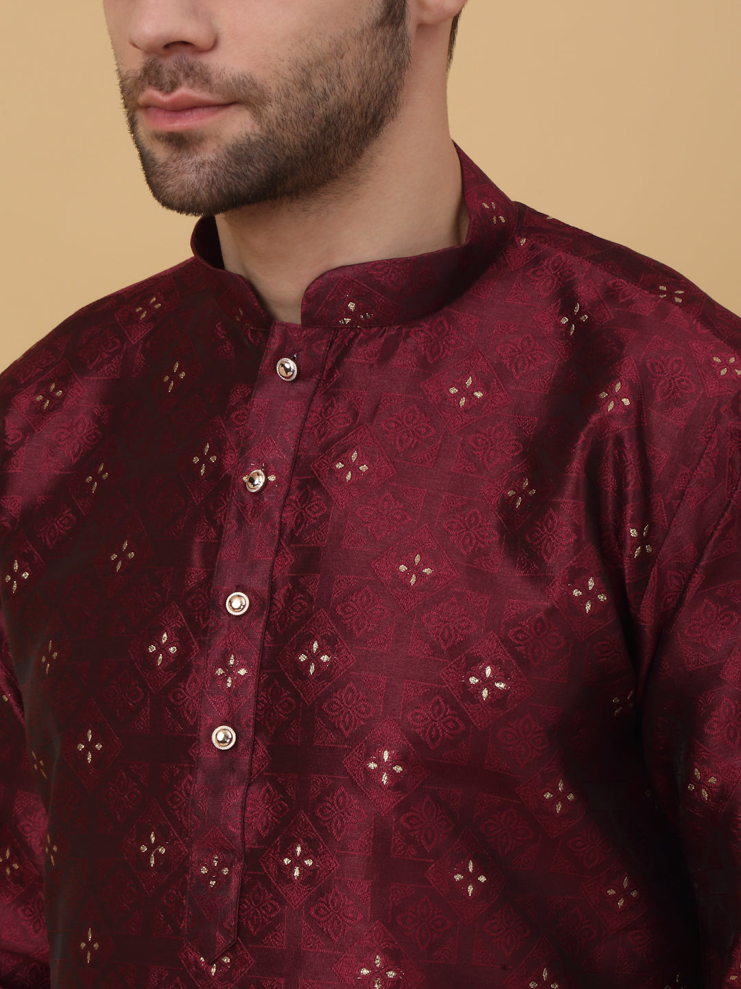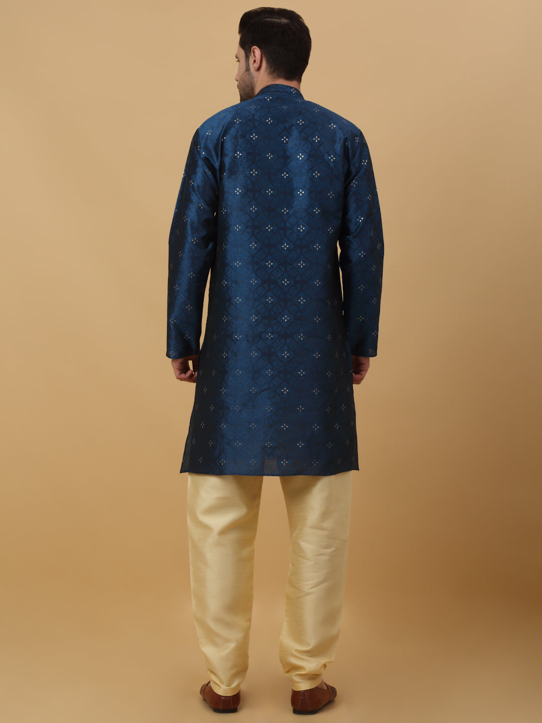 KRAFT INDIA Men's Silk Blend Jacquard Sequenced Kurta Only