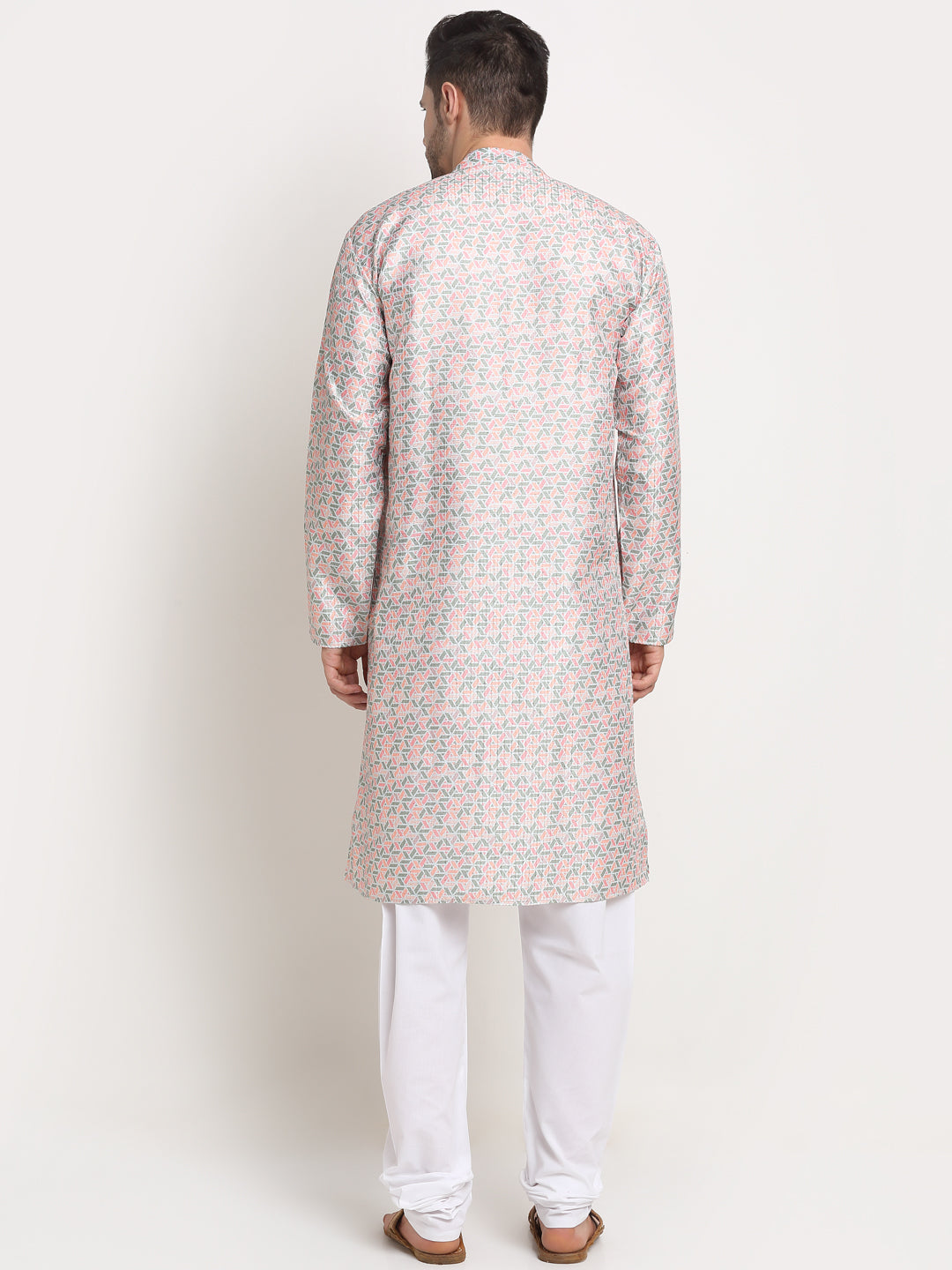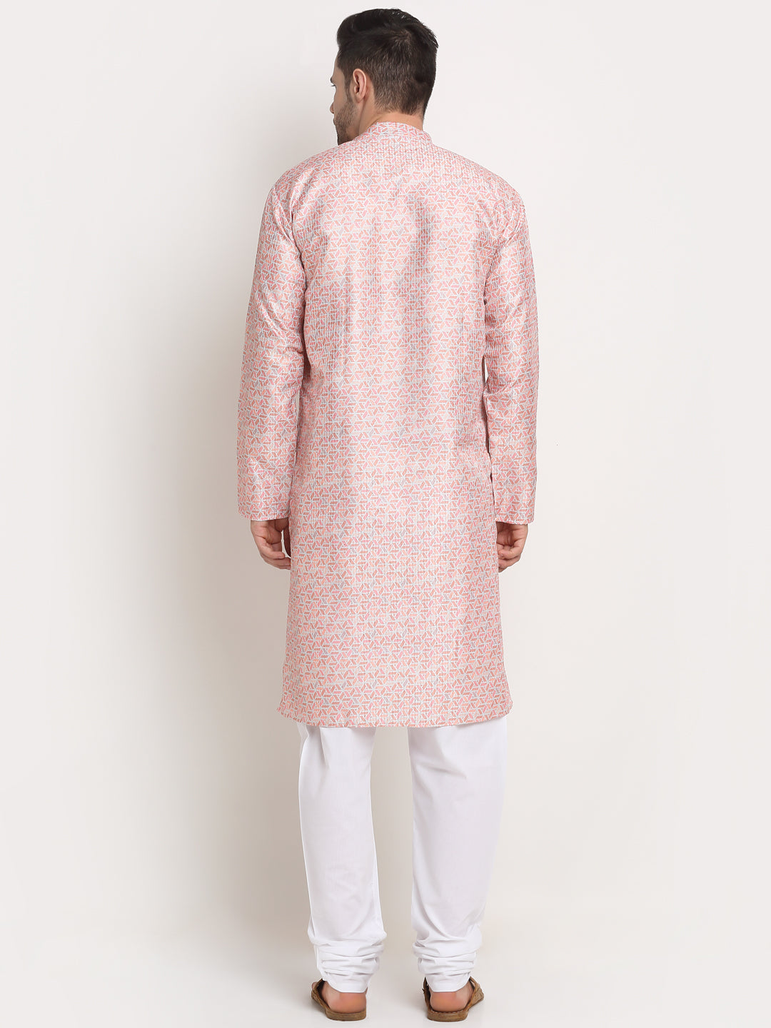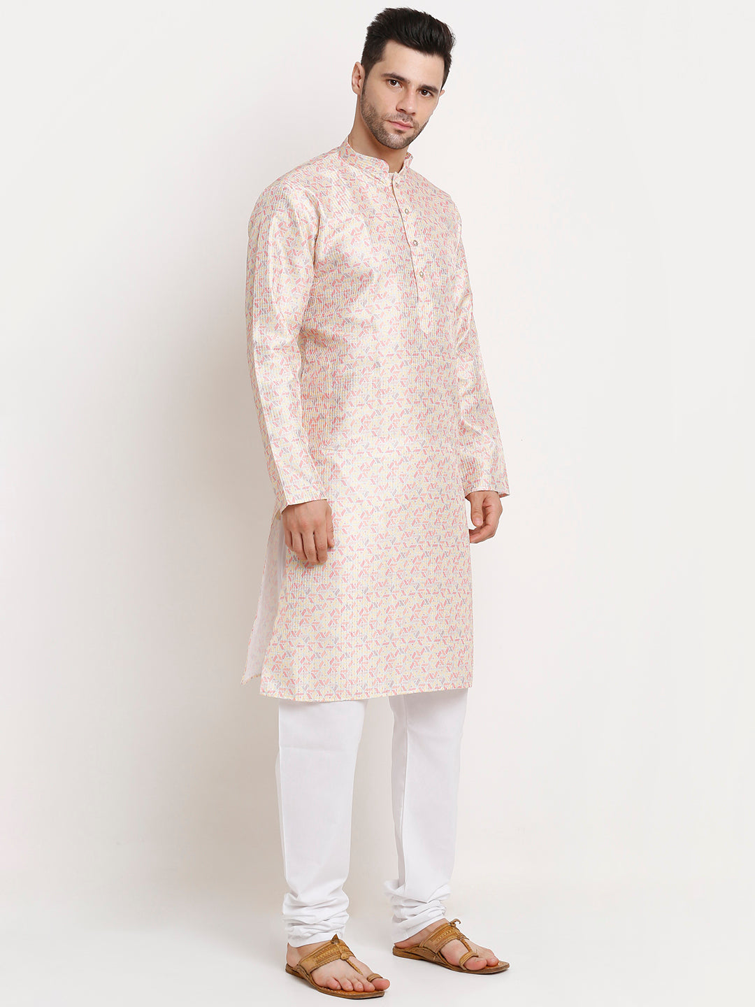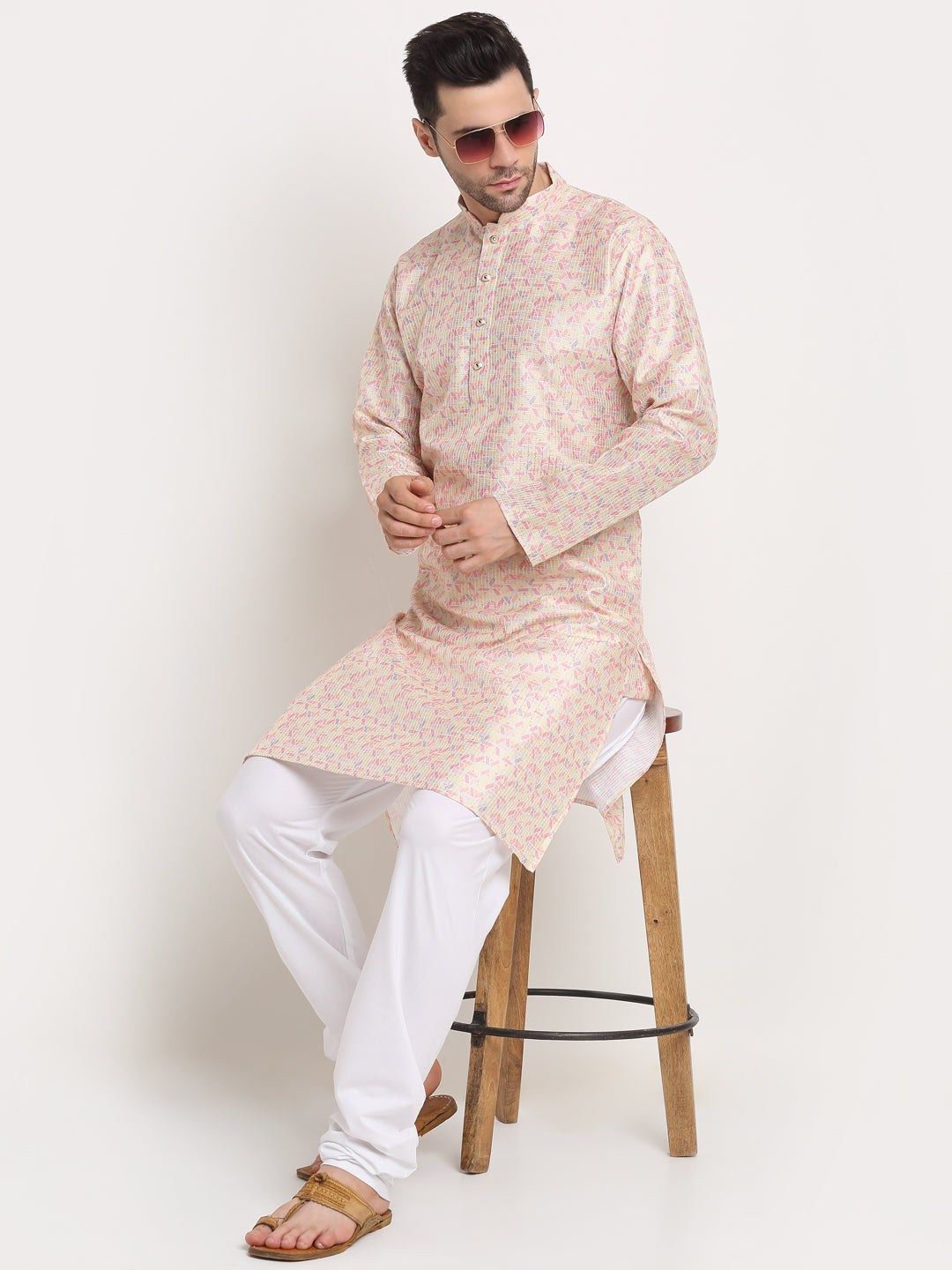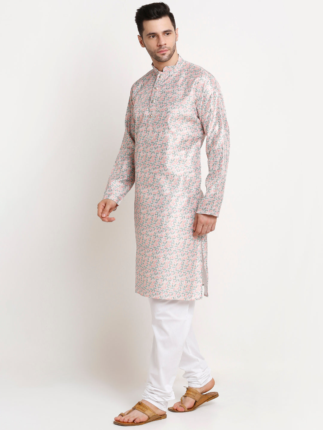Straight knee length Woven Design kurta, has a mandarin collar, long sleeves, side pockets, button closure, side slits and a straight hem