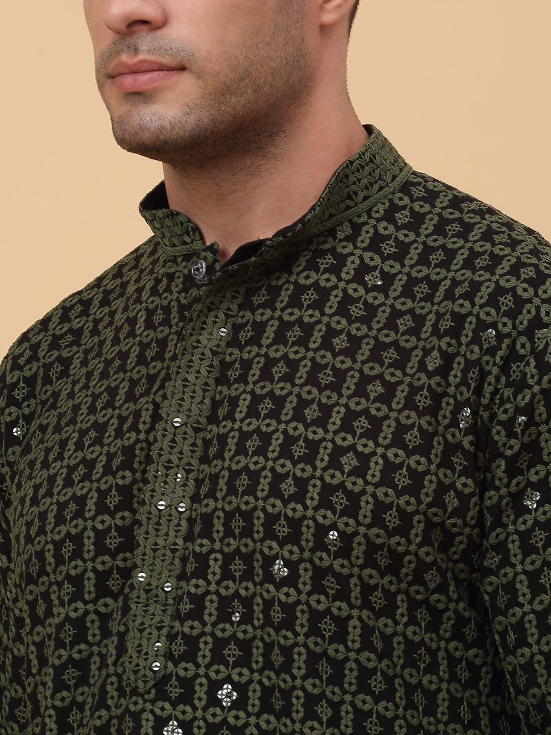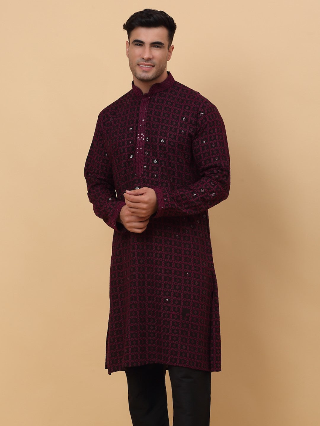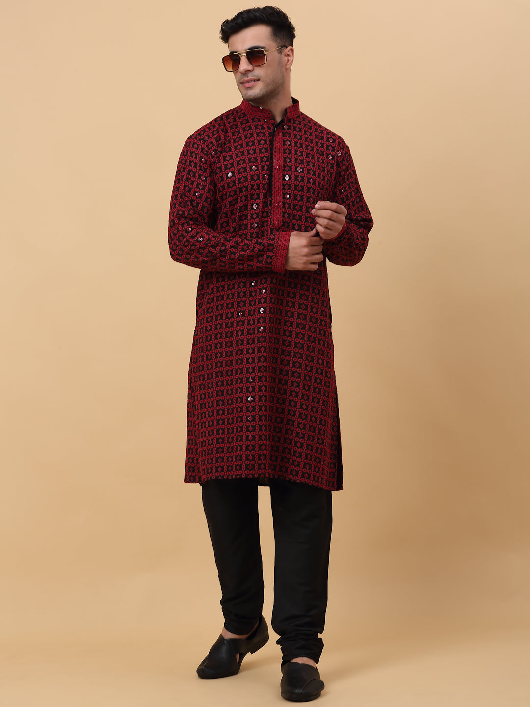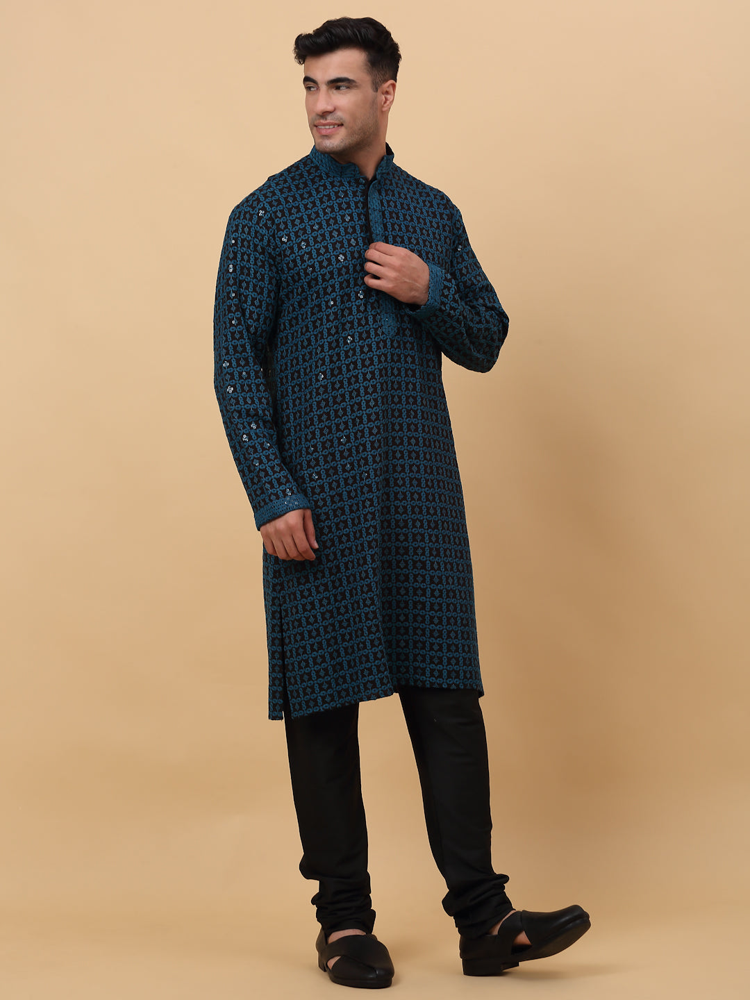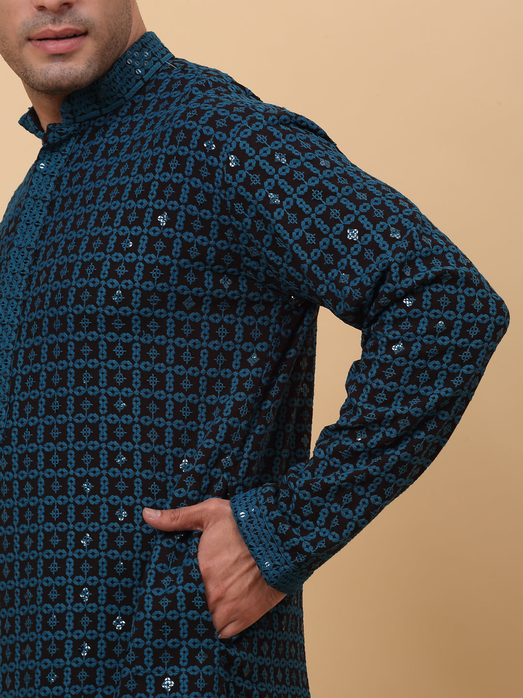 Men's Cotton Blend Embroidered Chikankari Kurta