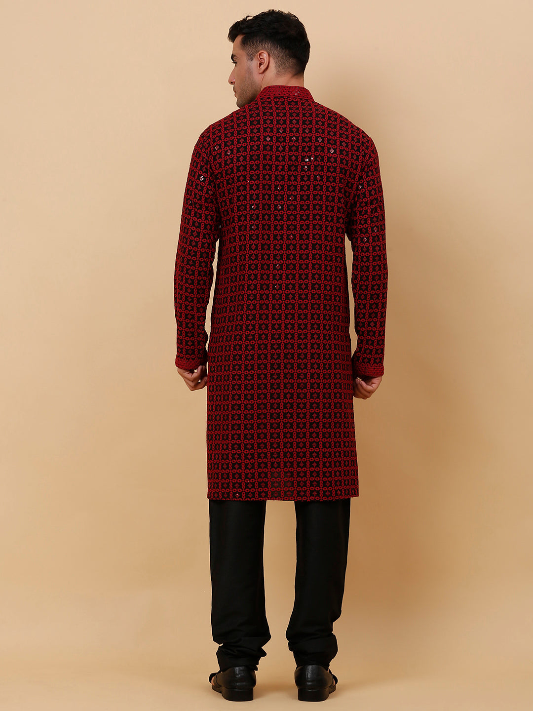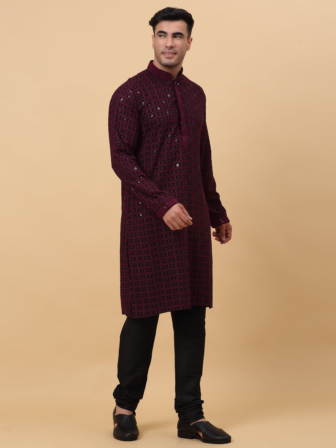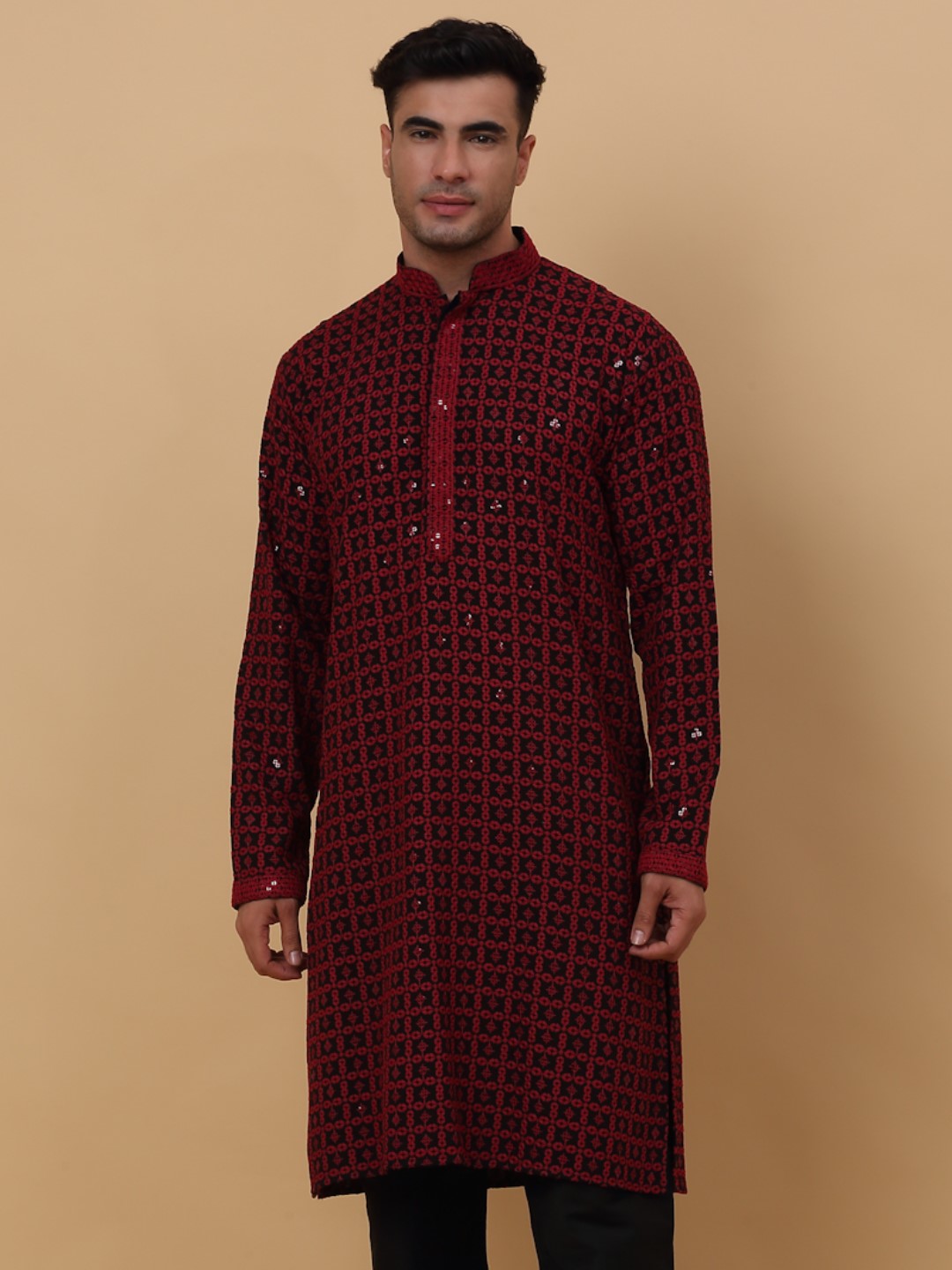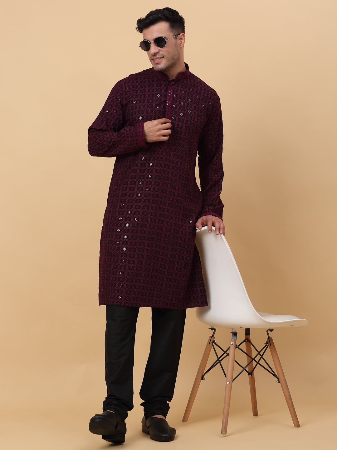 Men's Cotton Blend Embroidered Chikankari Kurta