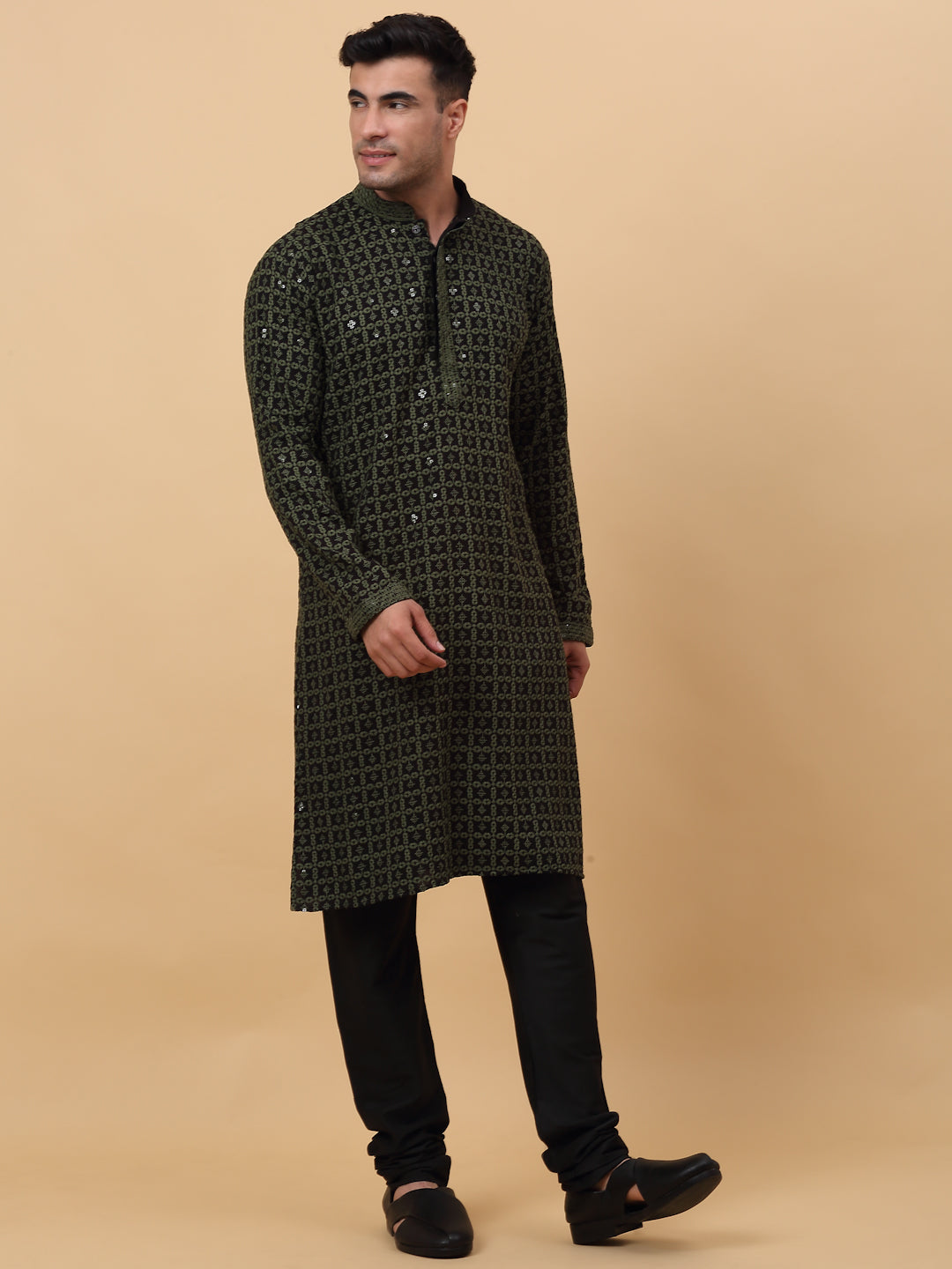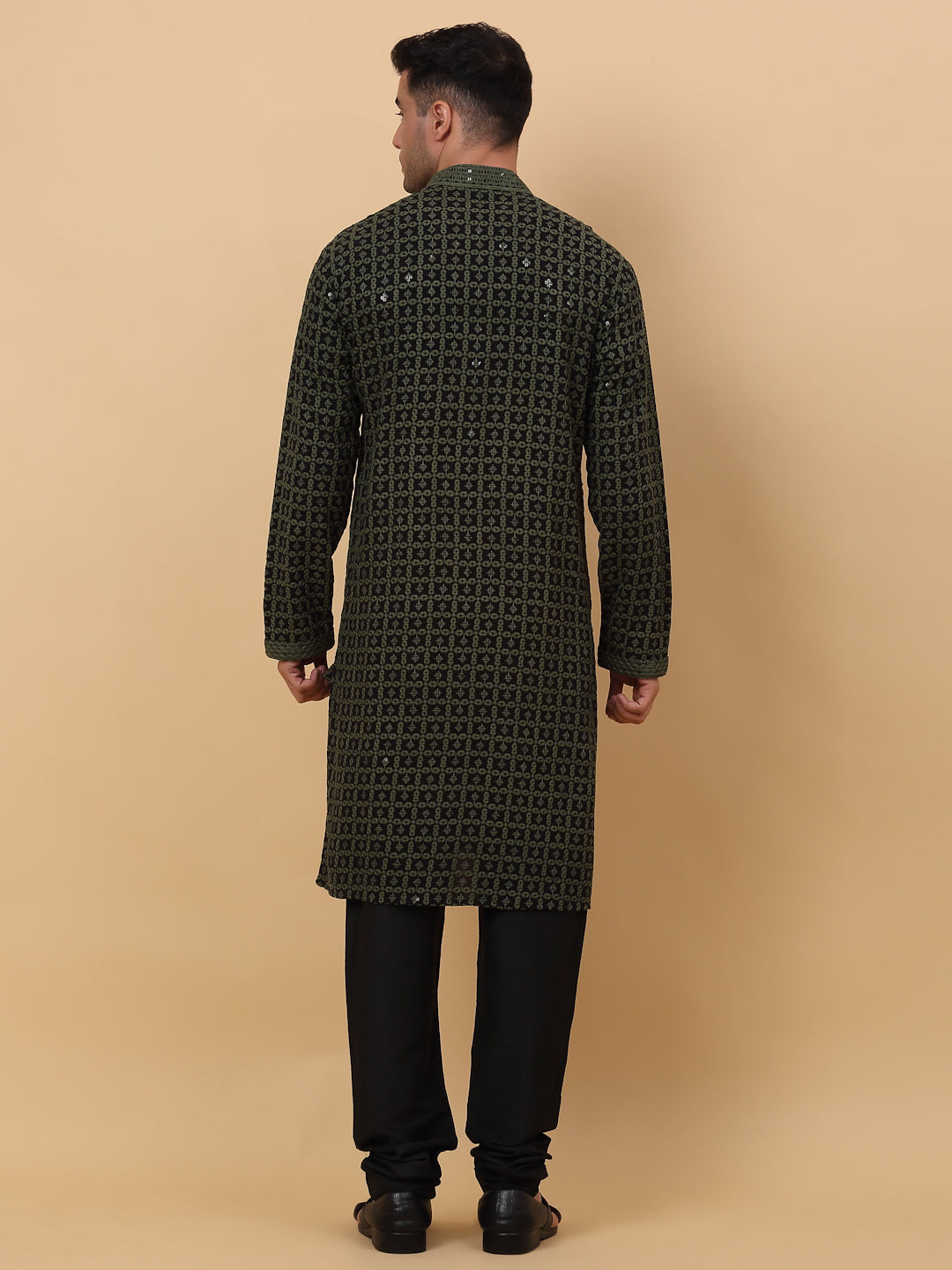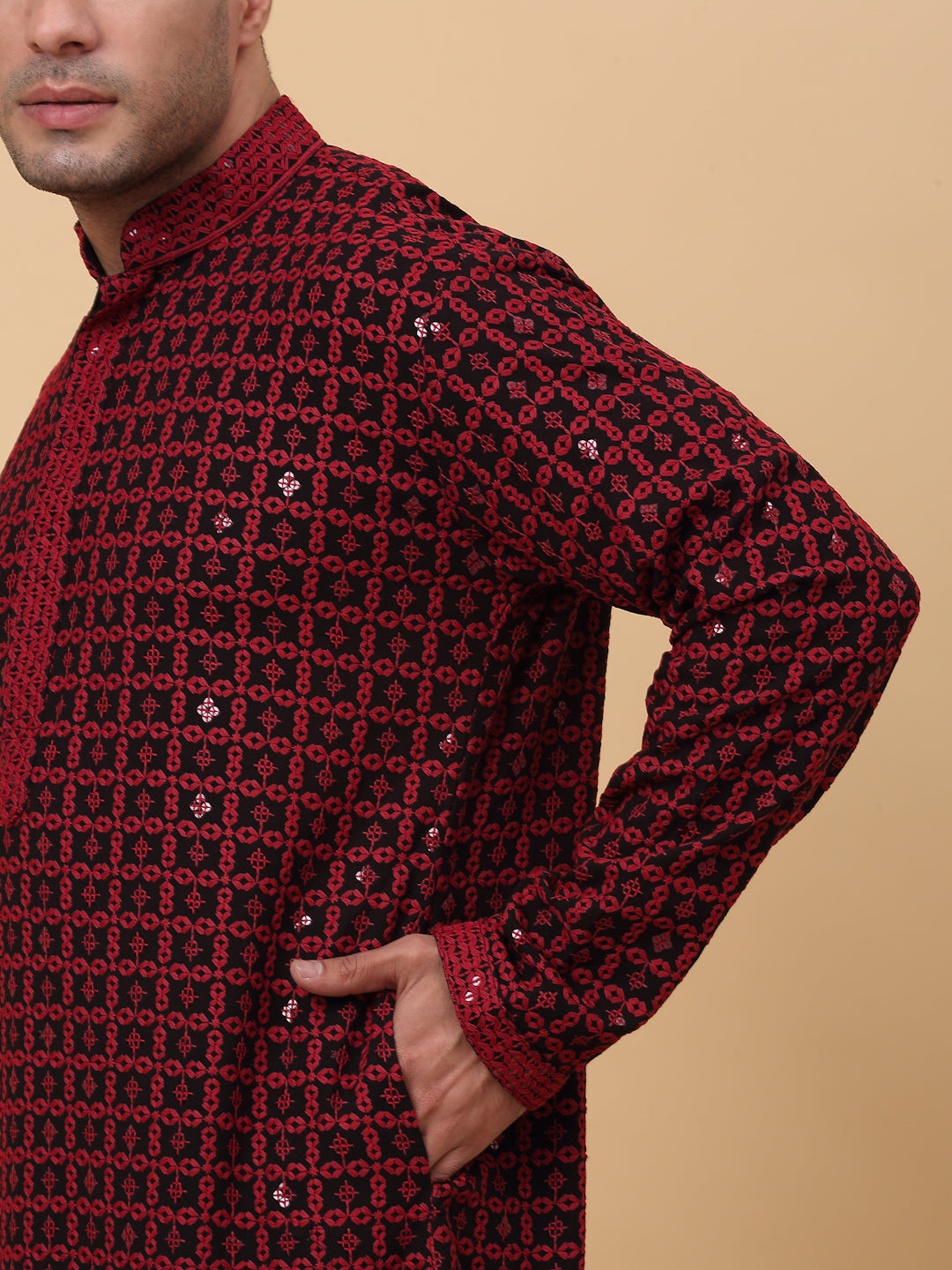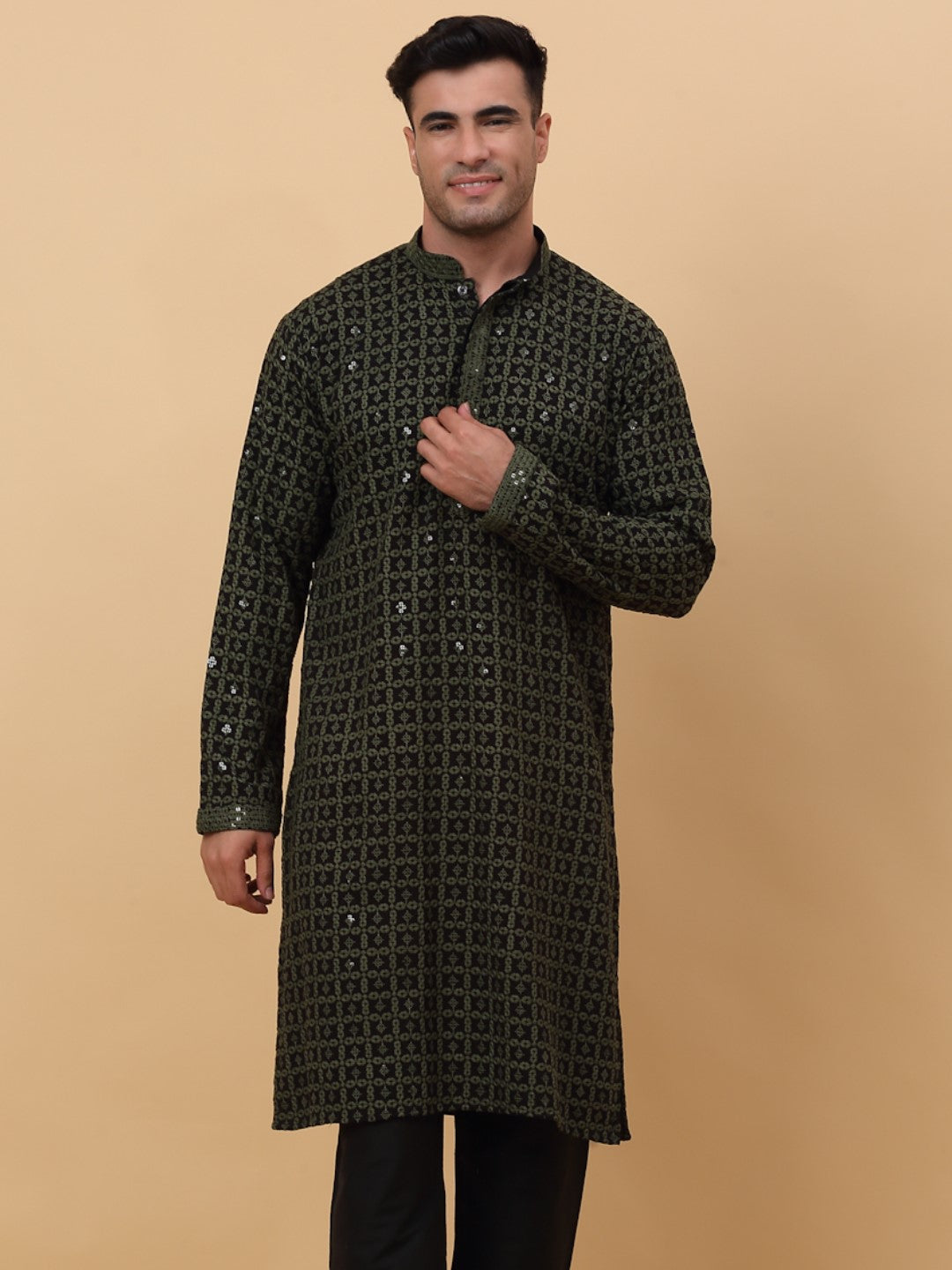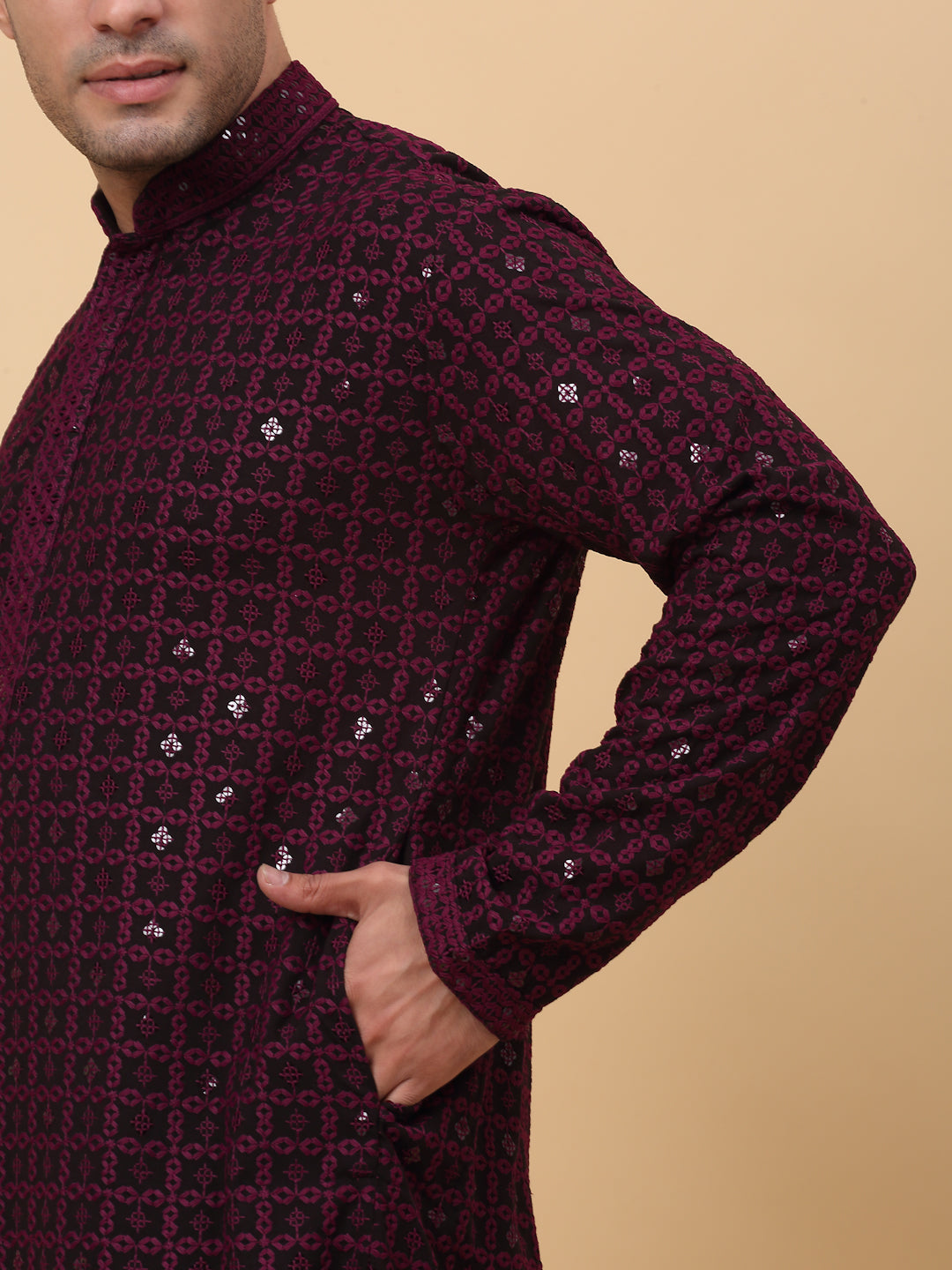 Men's Cotton Blend Embroidered Chikankari Kurta