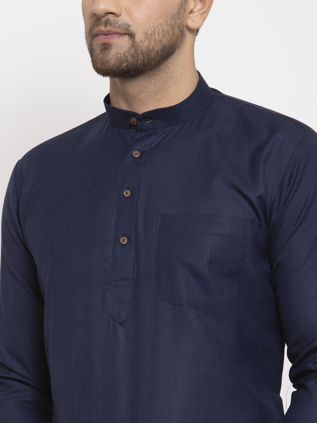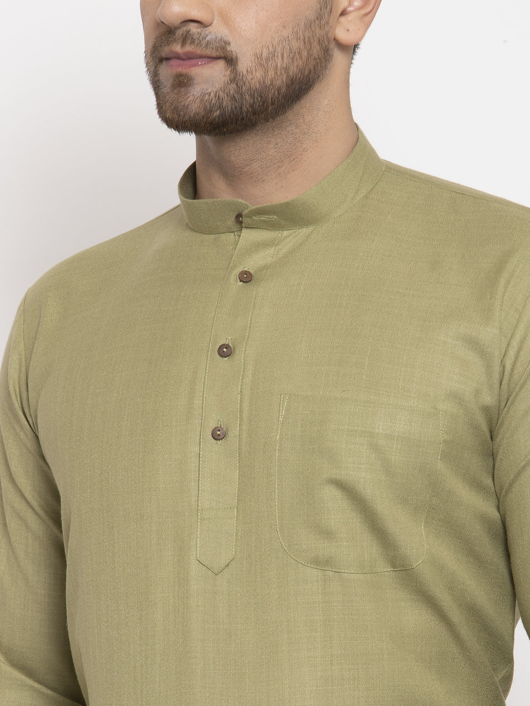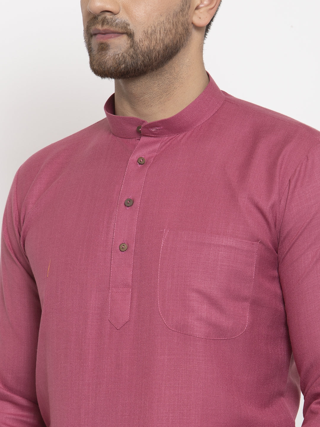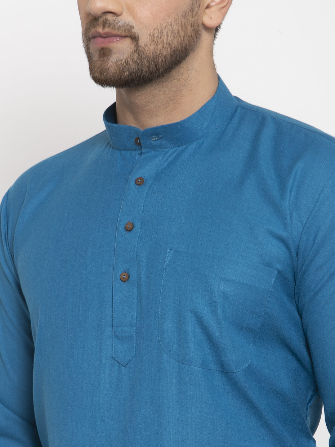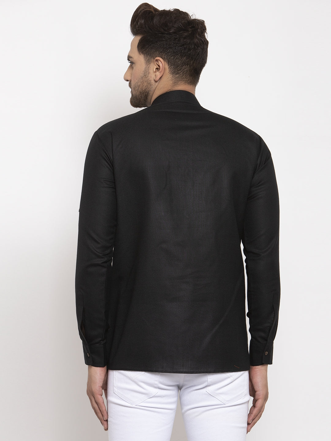 Straight short kurta, has a mandarin collar, Roll Up long sleeves, side pockets, button closure, side slits, straight hem