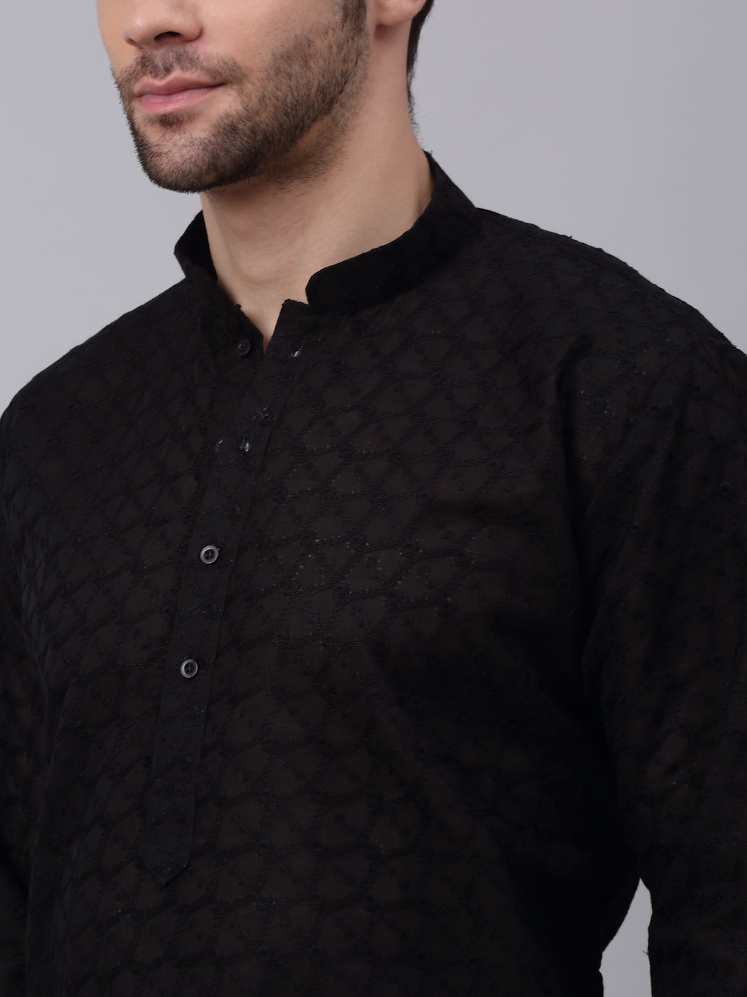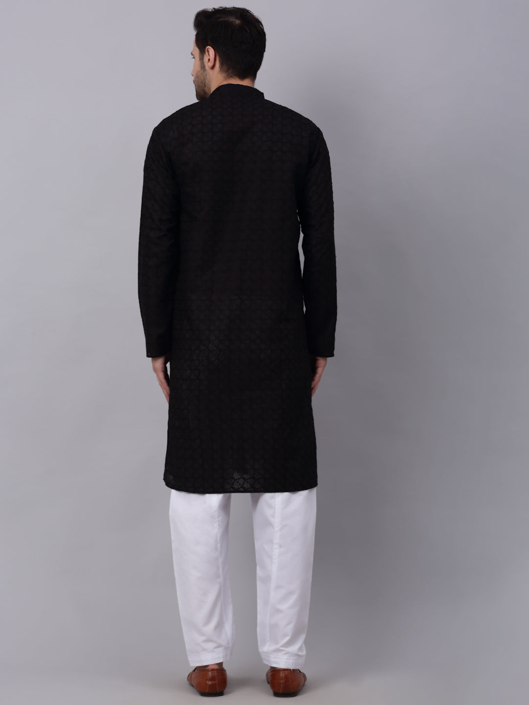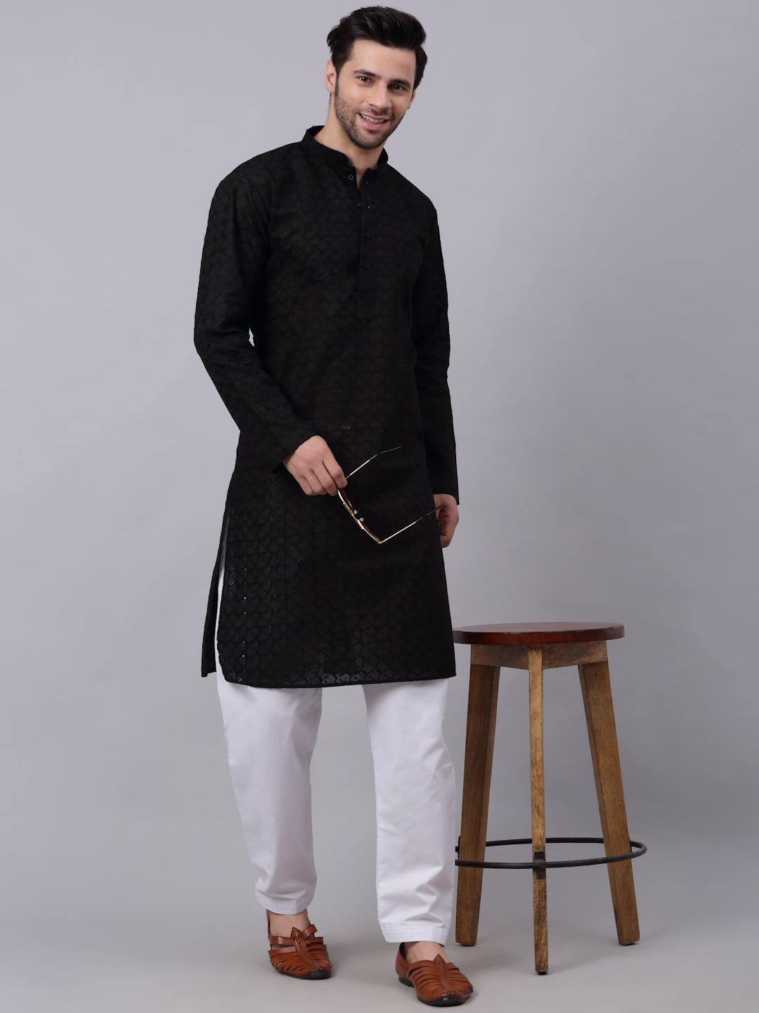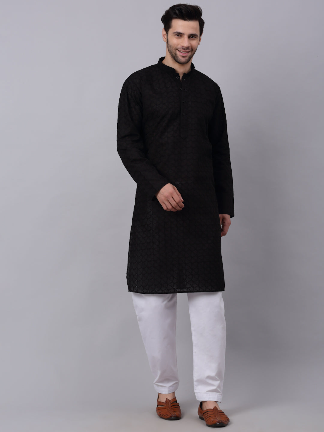 Straight Long kurta, has a mandarin collar, long sleeves, side pockets, button closure, side slits, straight hem