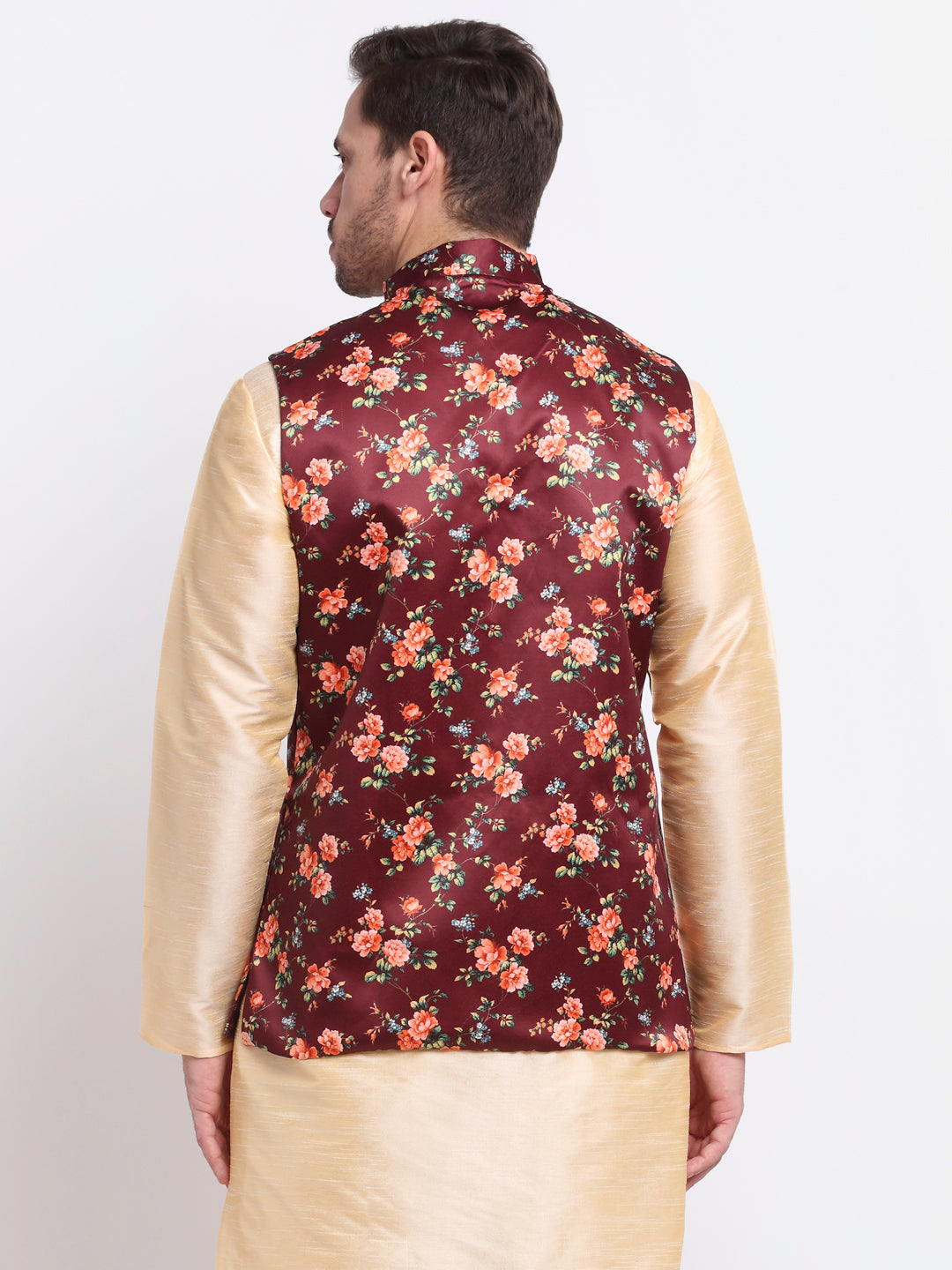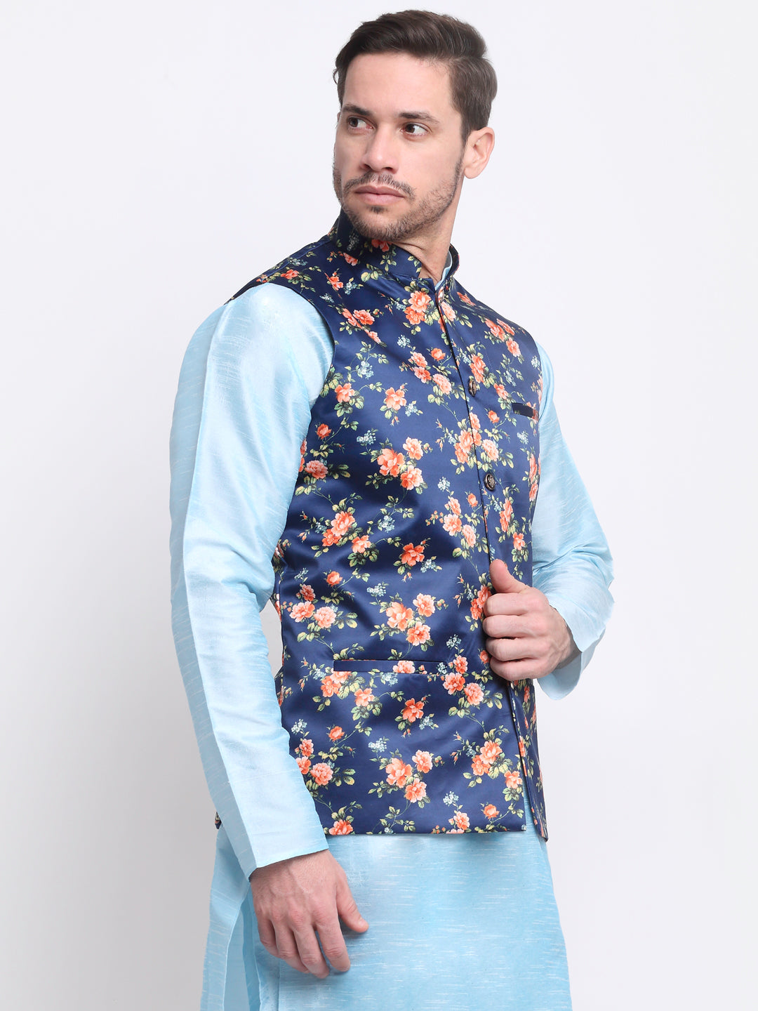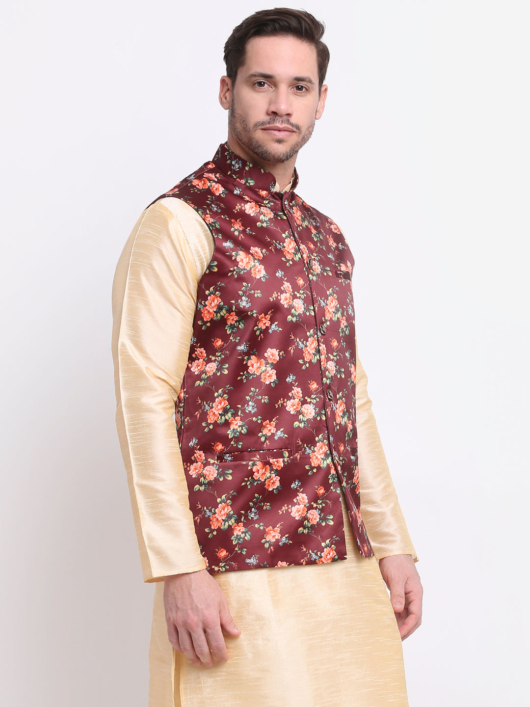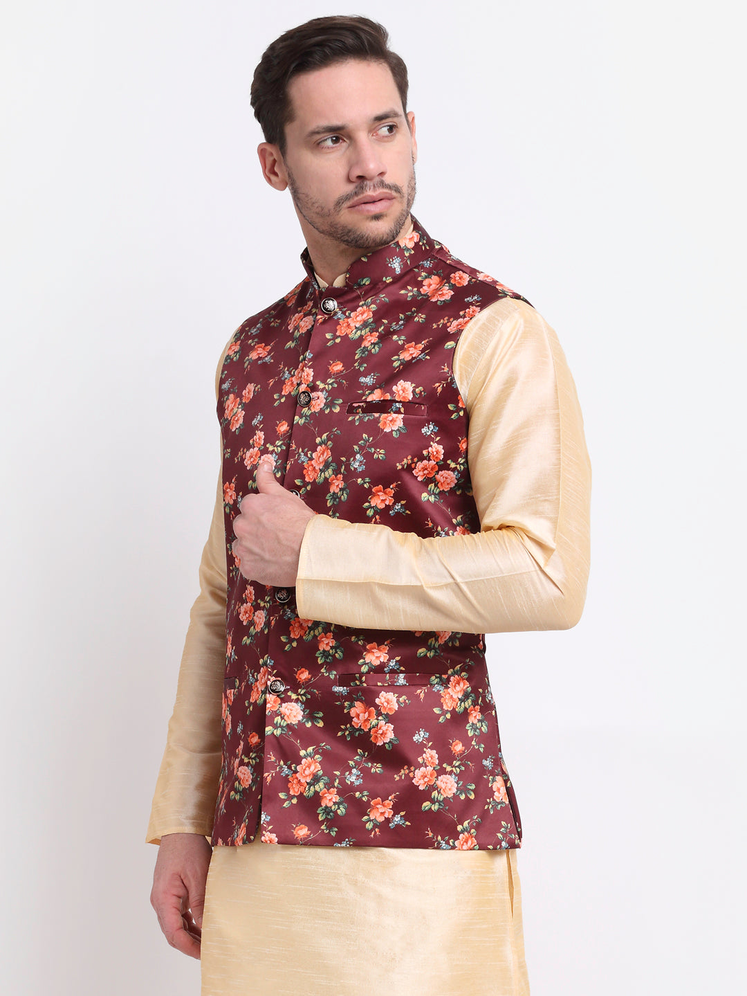 Men's Silk Blend Floral Printed Nehru Jacket Only