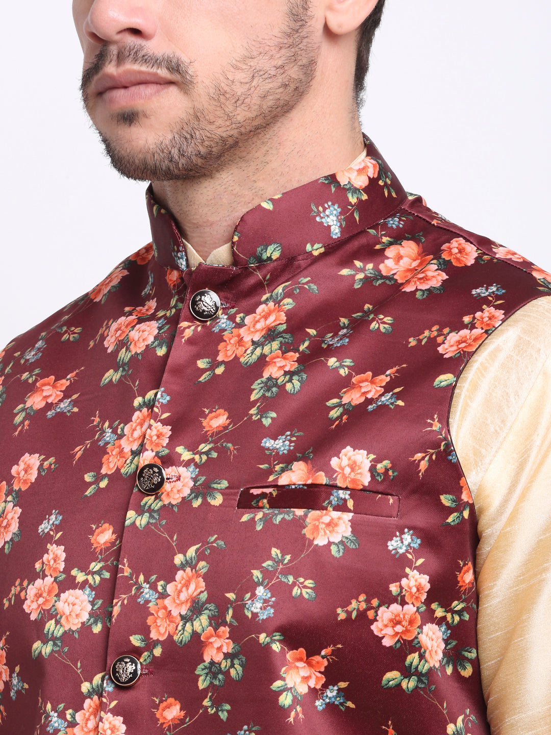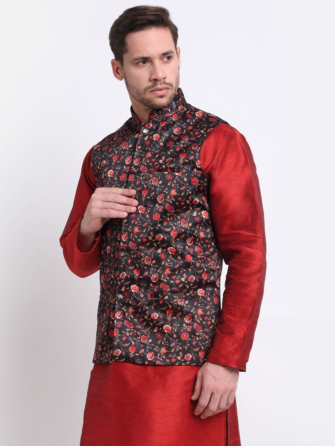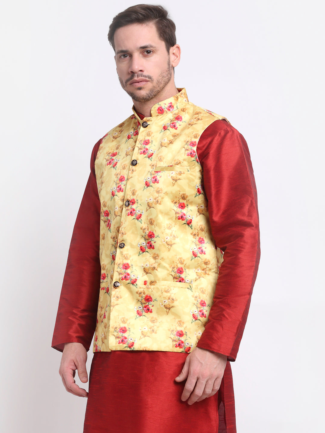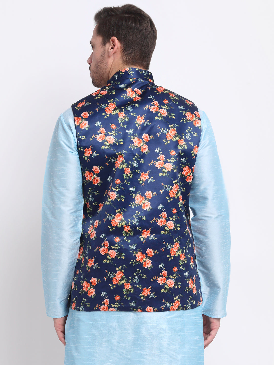 Men's Silk Blend Floral Printed Nehru Jacket Only