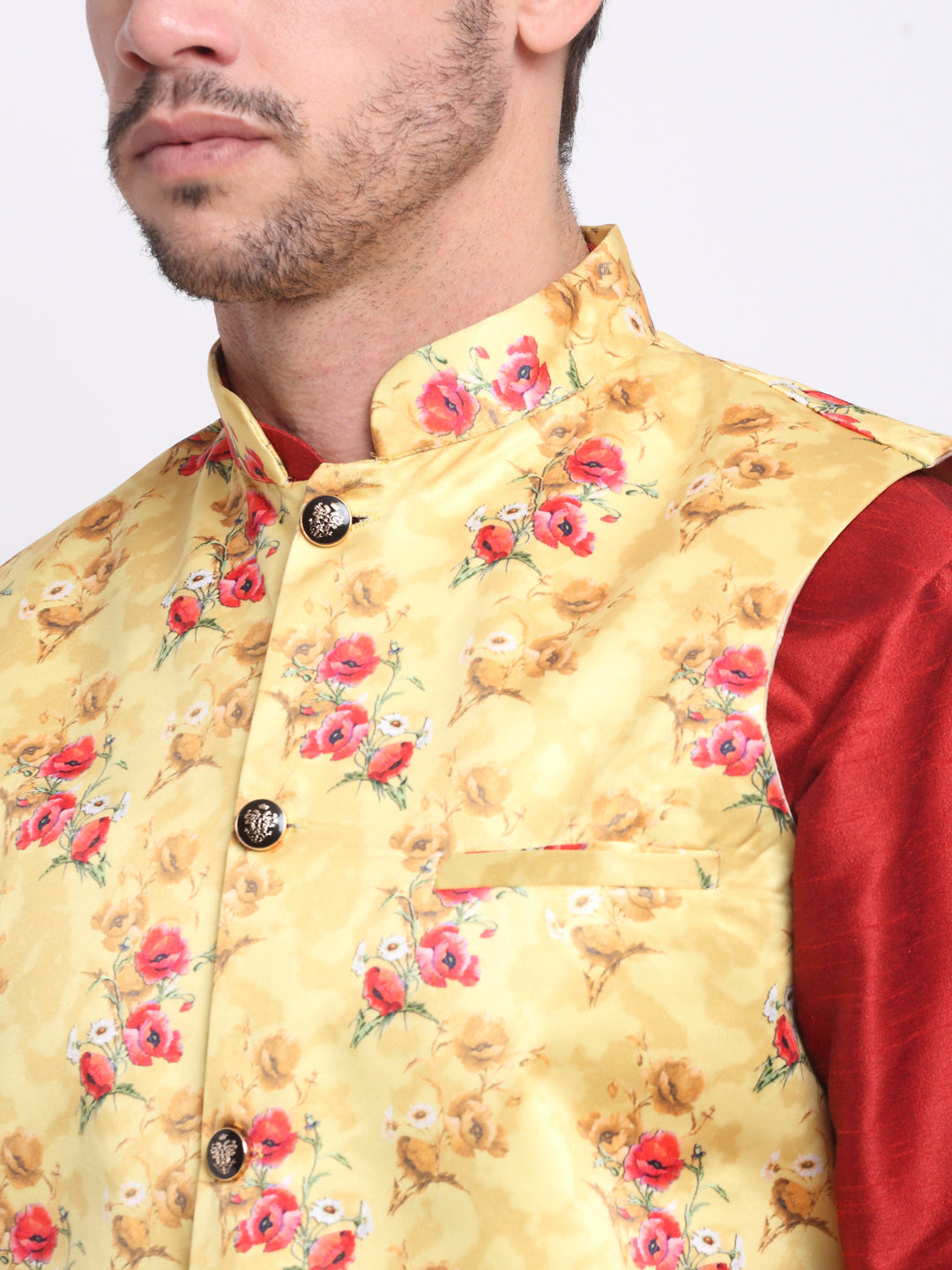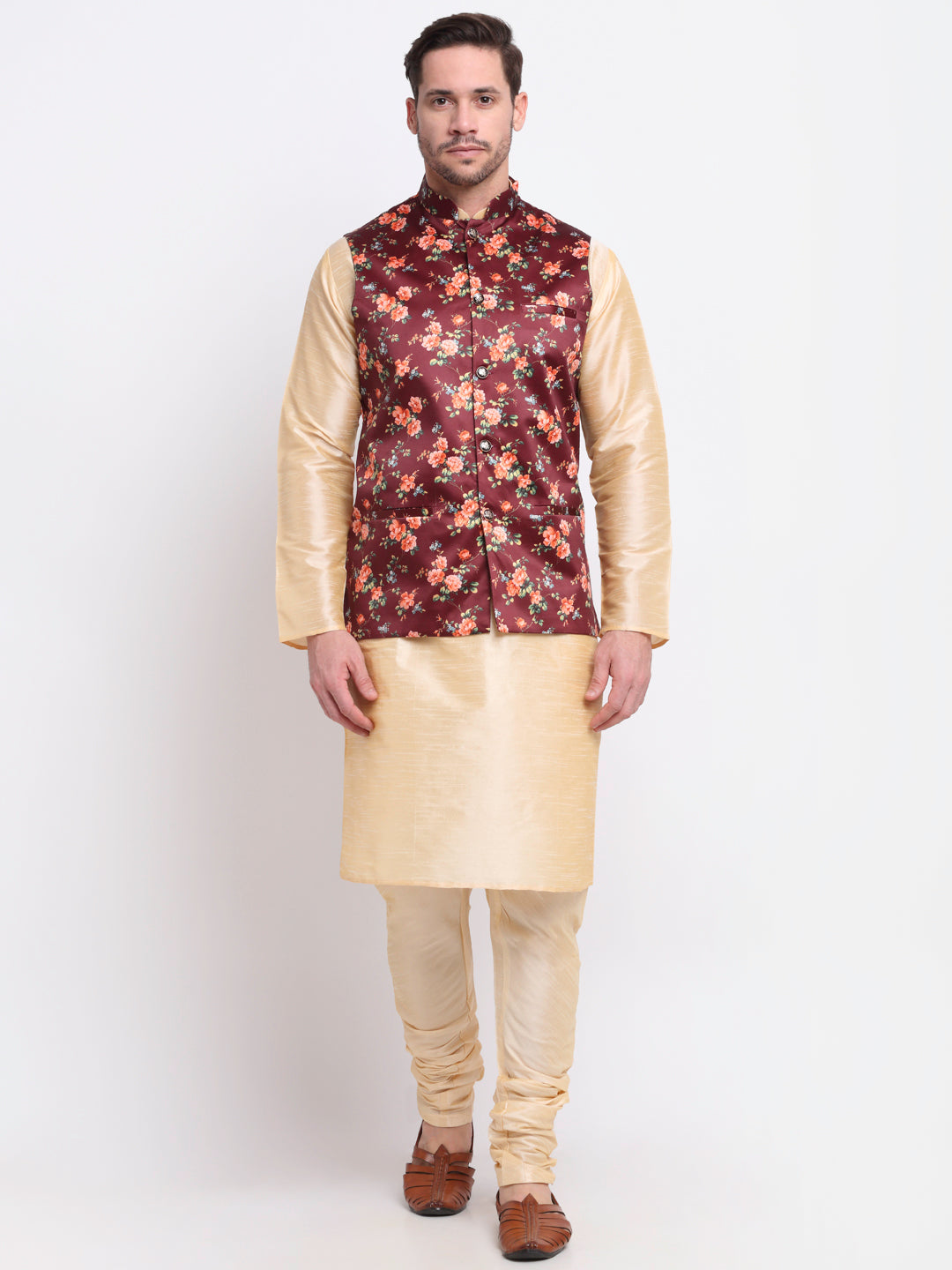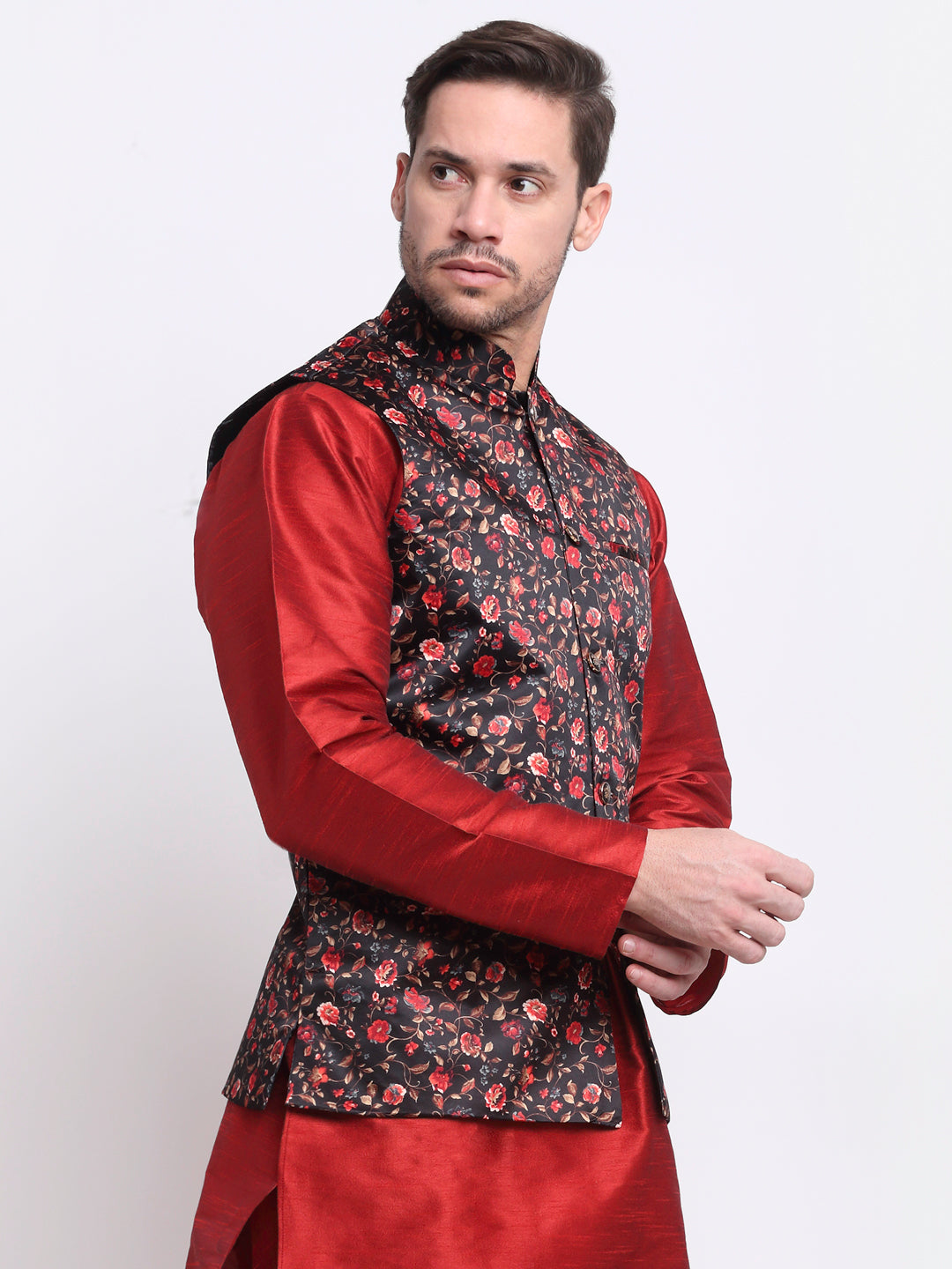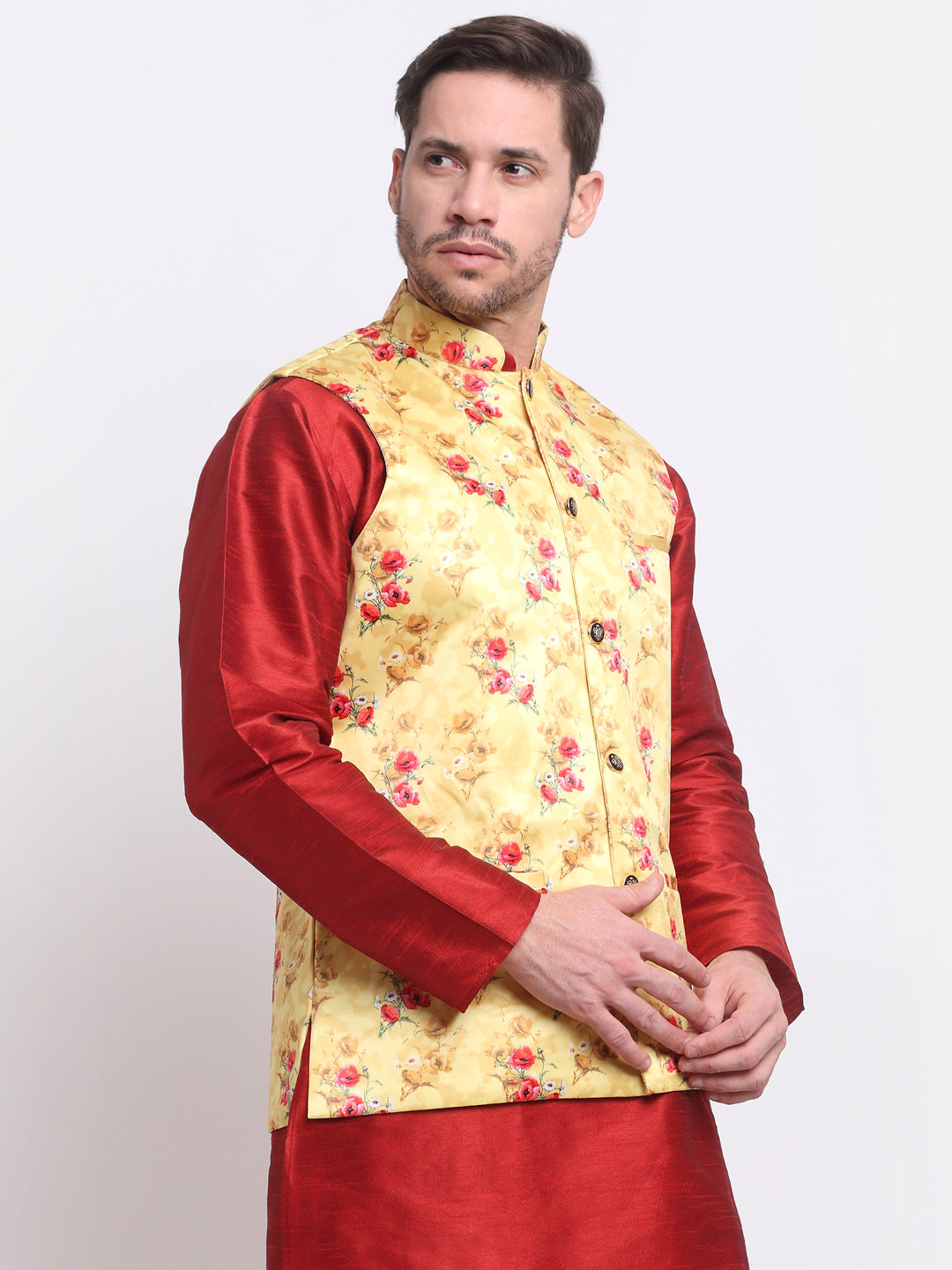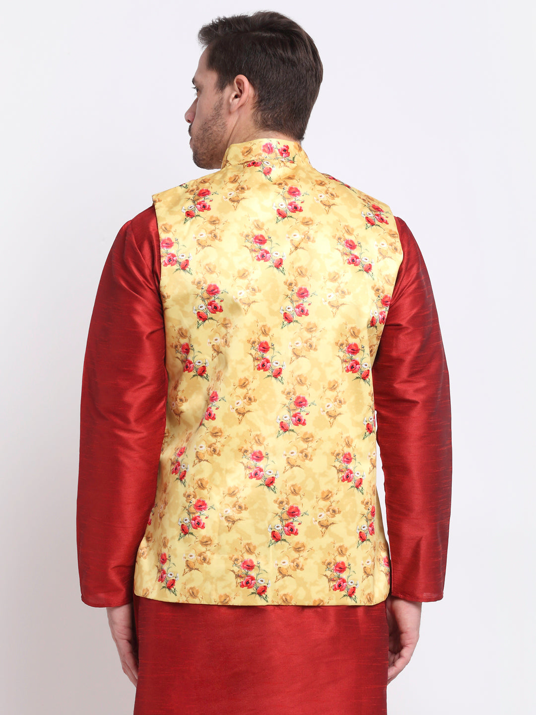 Men's Silk Blend Floral Printed Nehru Jacket Only