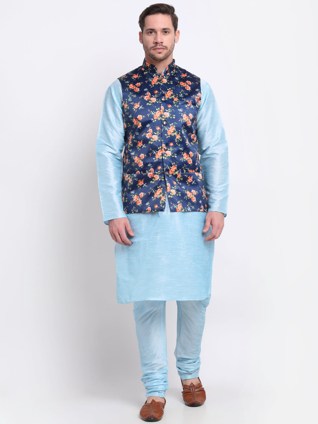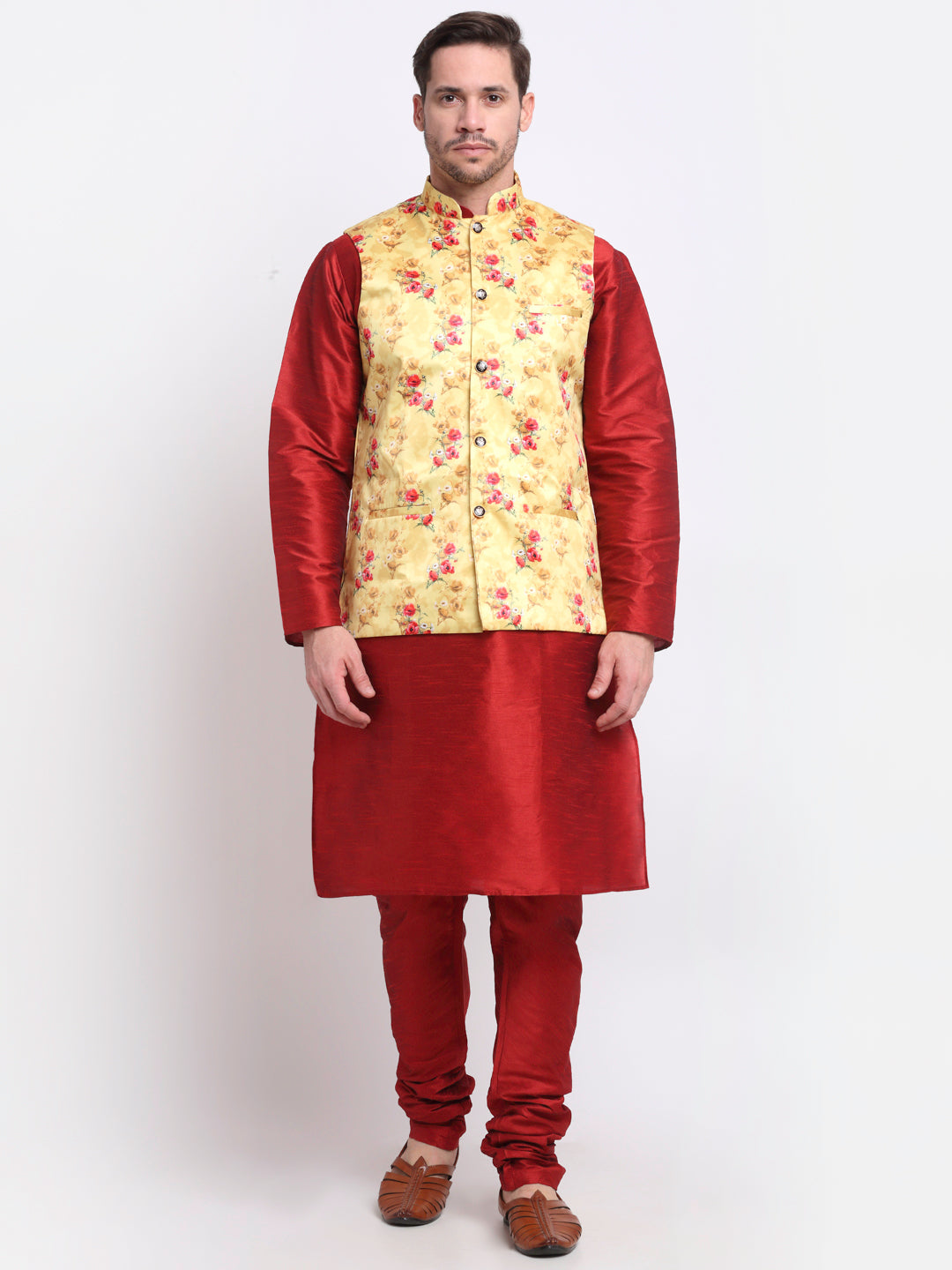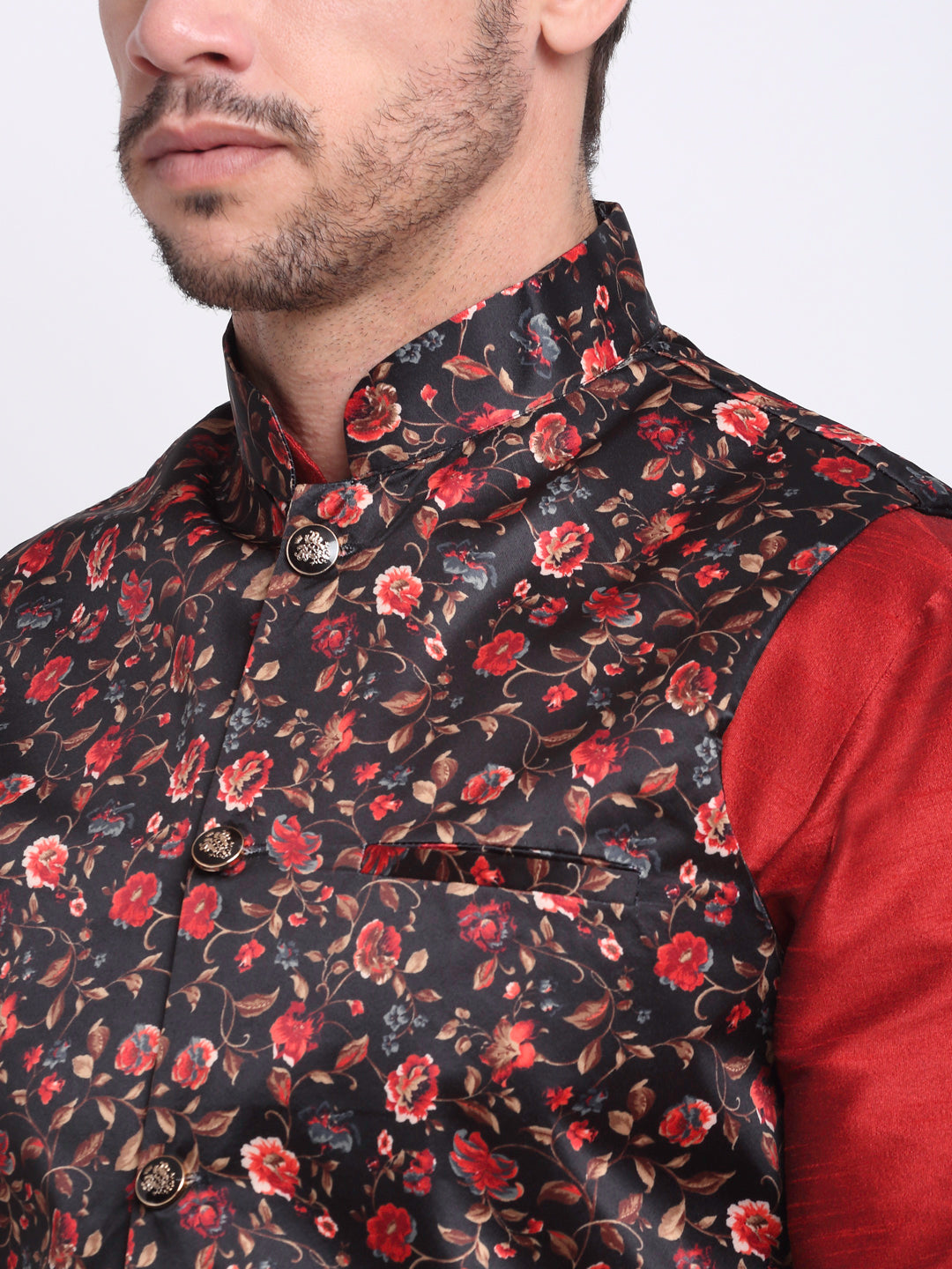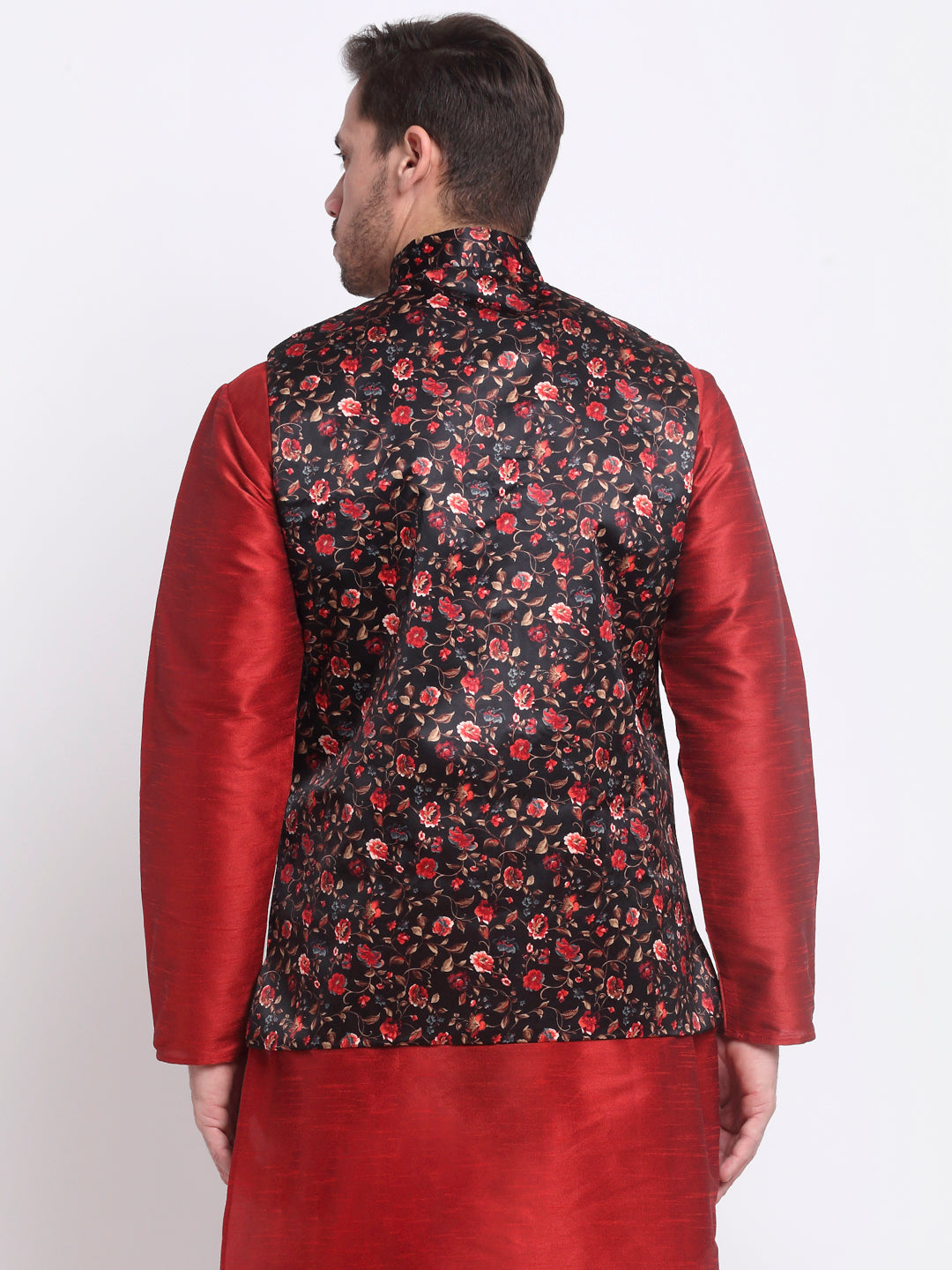 Men's Silk Blend Floral Printed Nehru Jacket Only