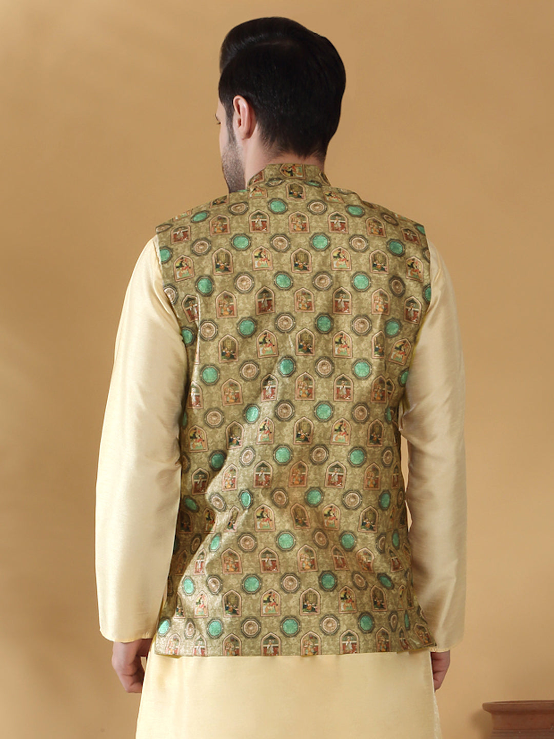 Silk Blend Abstract Printed Sleeveless Nehru Jacket