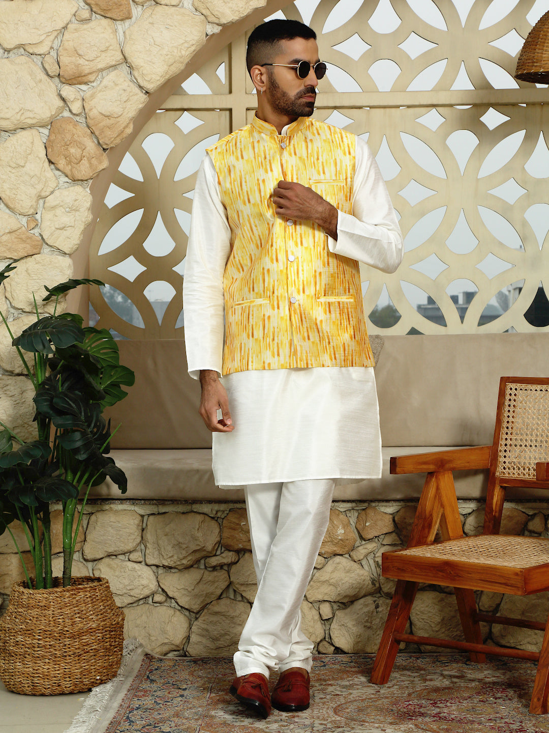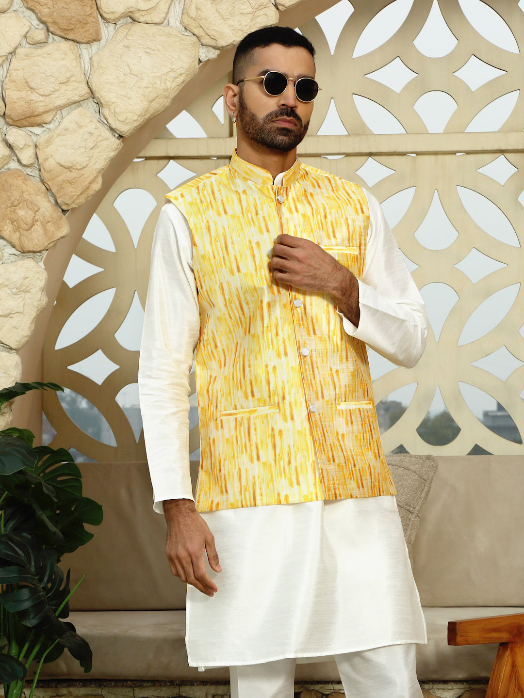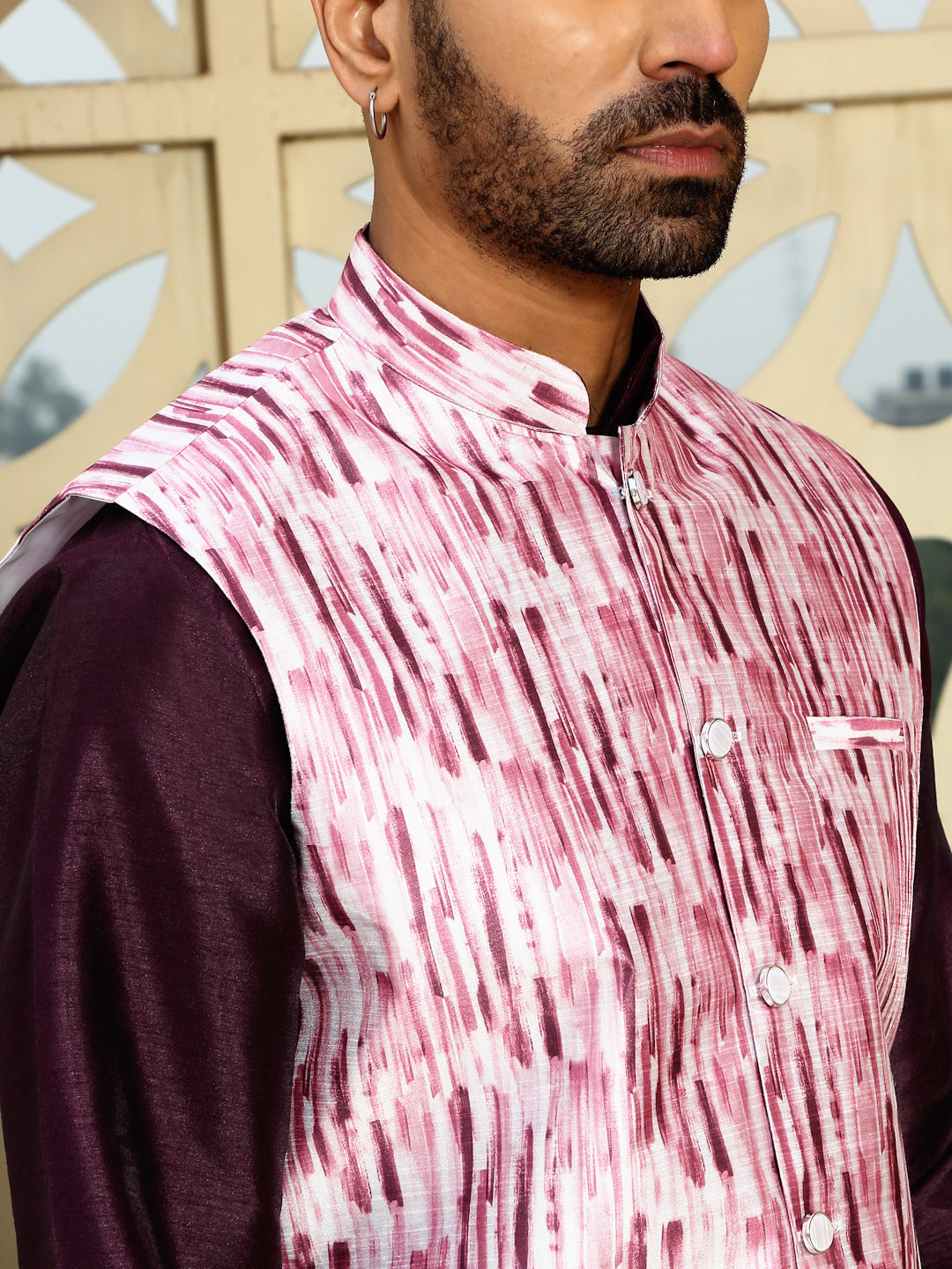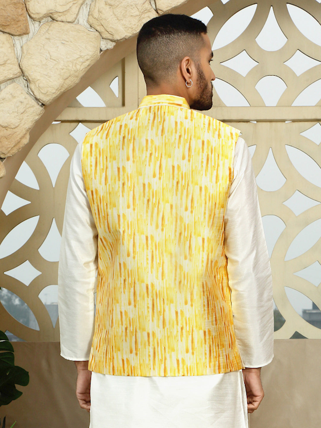 Silk Blend Printed Tie-Dye Sleeveless Nehru Jacket