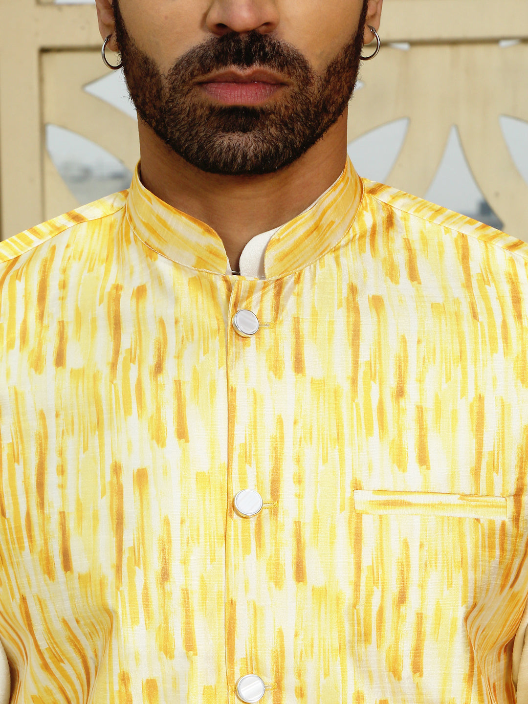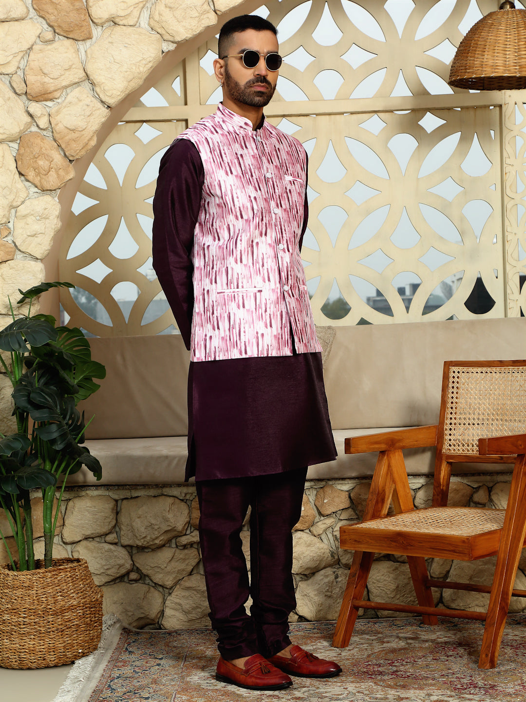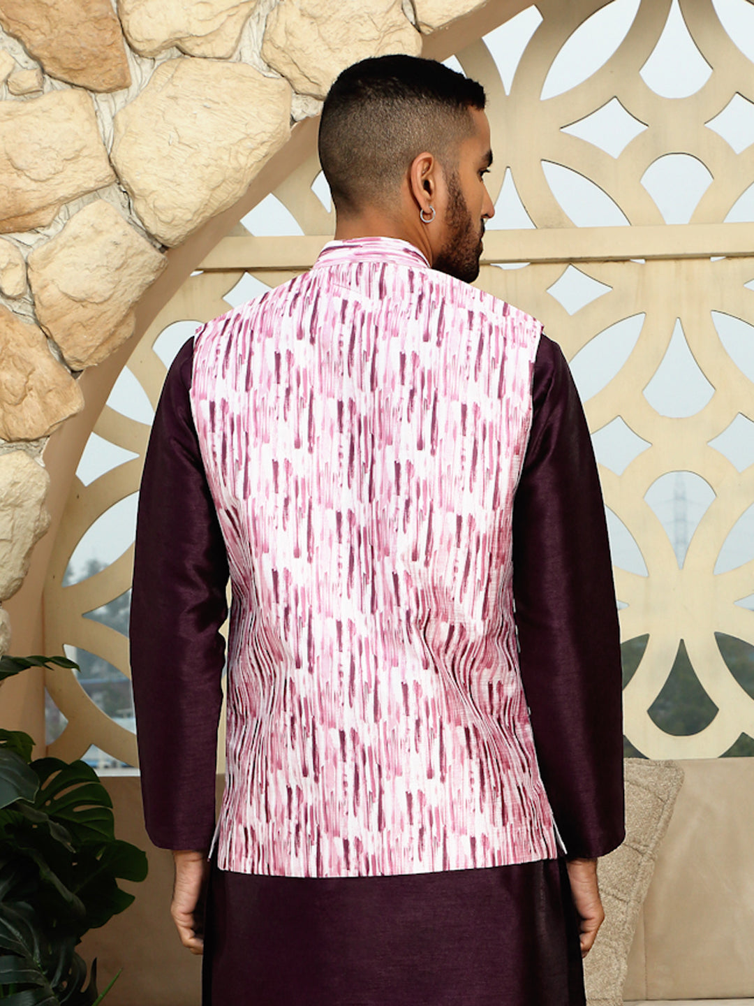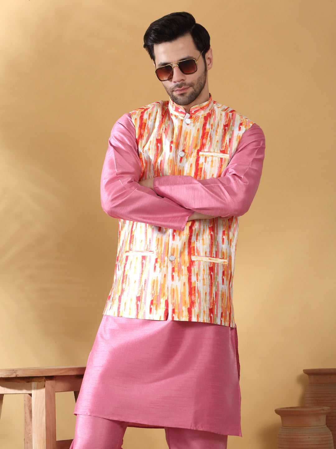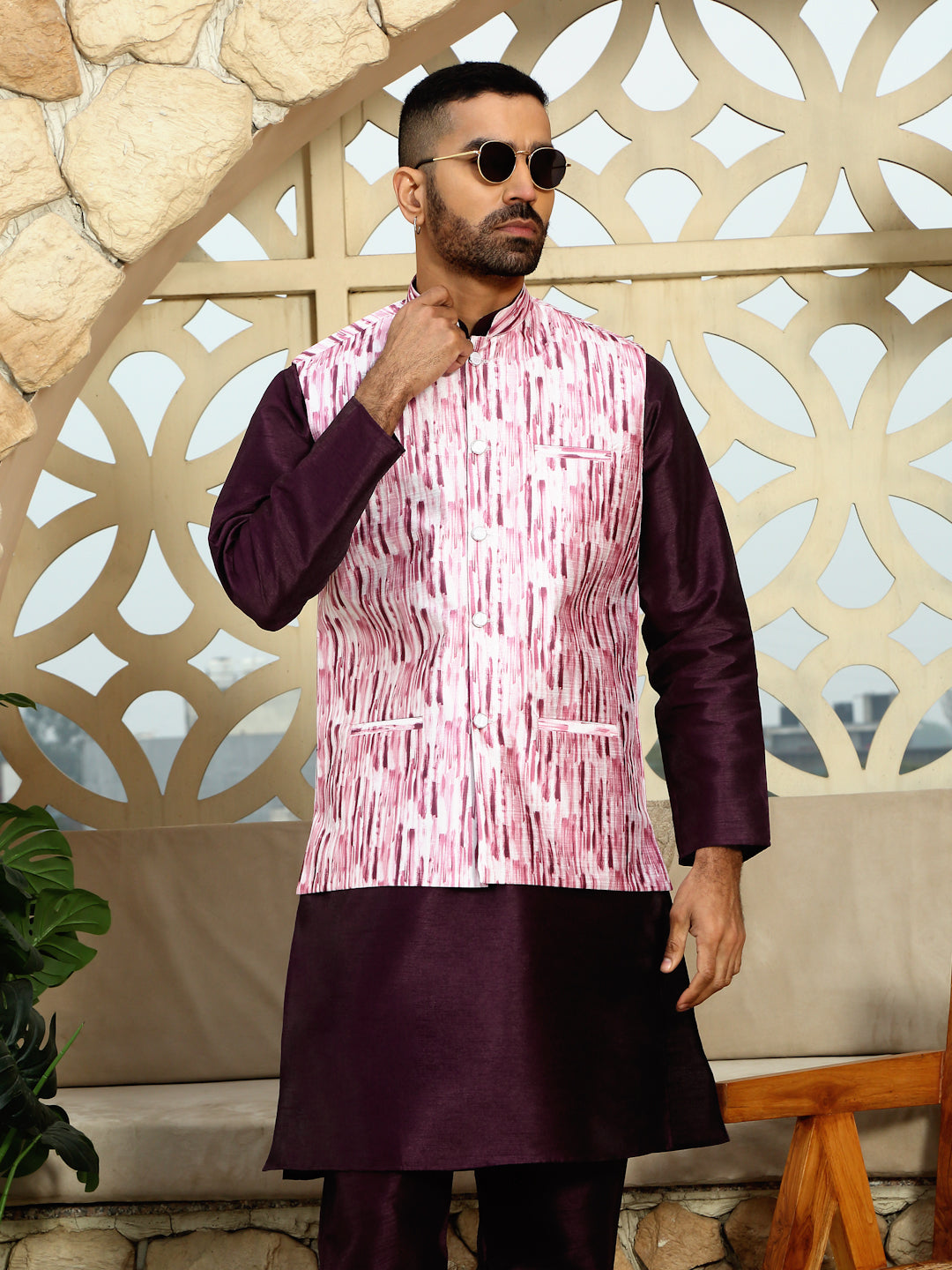 Silk Blend Printed Tie-Dye Sleeveless Nehru Jacket