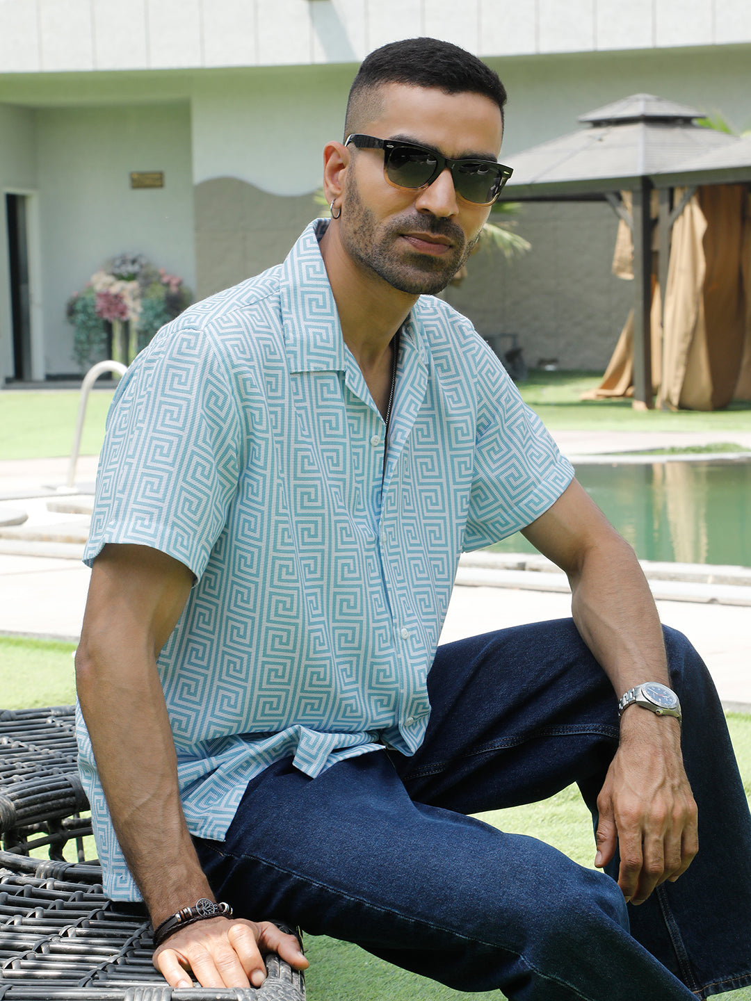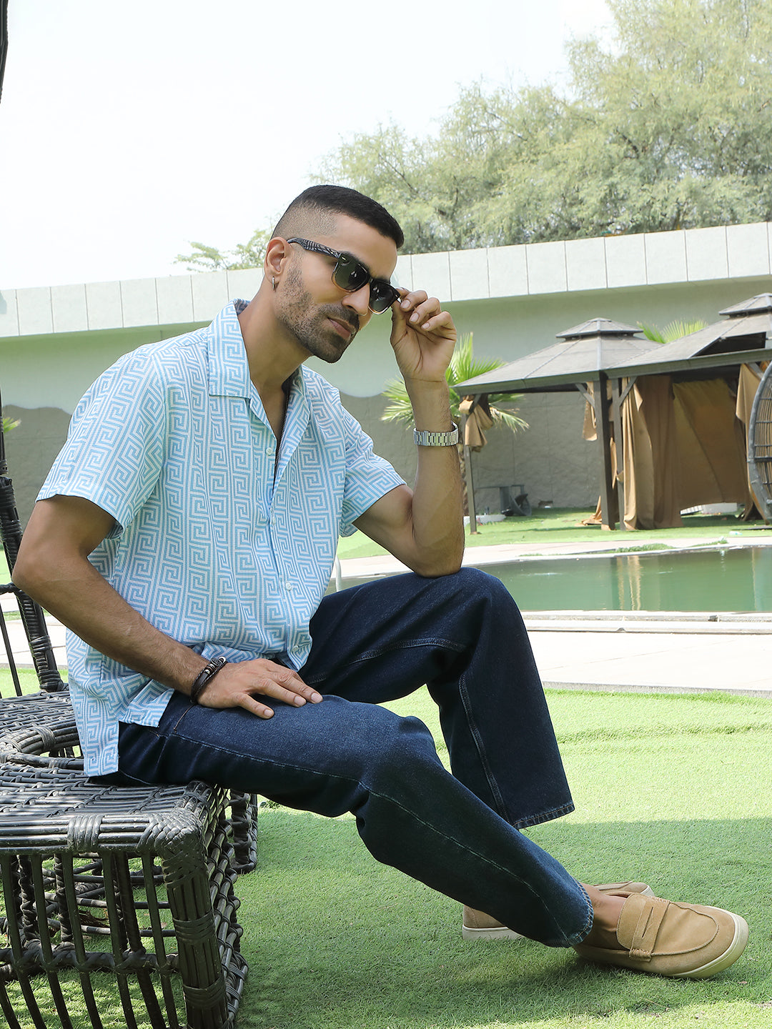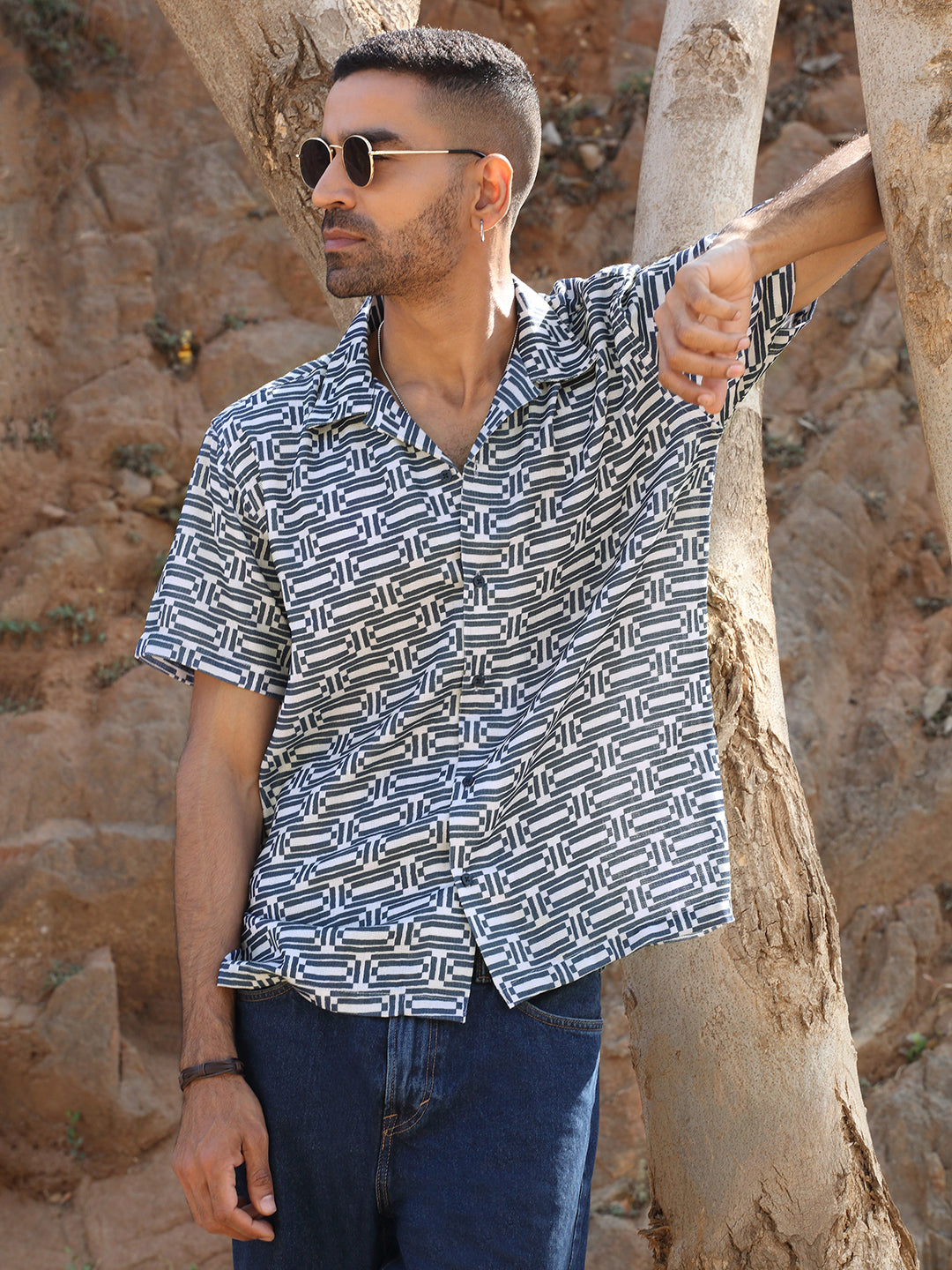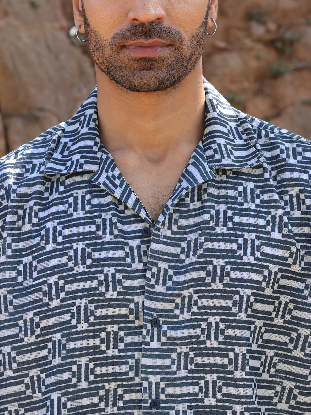 The all-over geometric print gives this shirt a contemporary edge, perfect for men who love to experiment with prints while keeping things stylish and effortless. Whether you're heading out for a weekend brunch, a vacation, or just chilling with friends, this shirt pairs well with everything from denim to chinos.