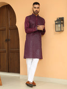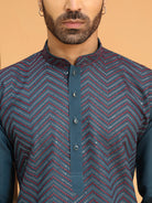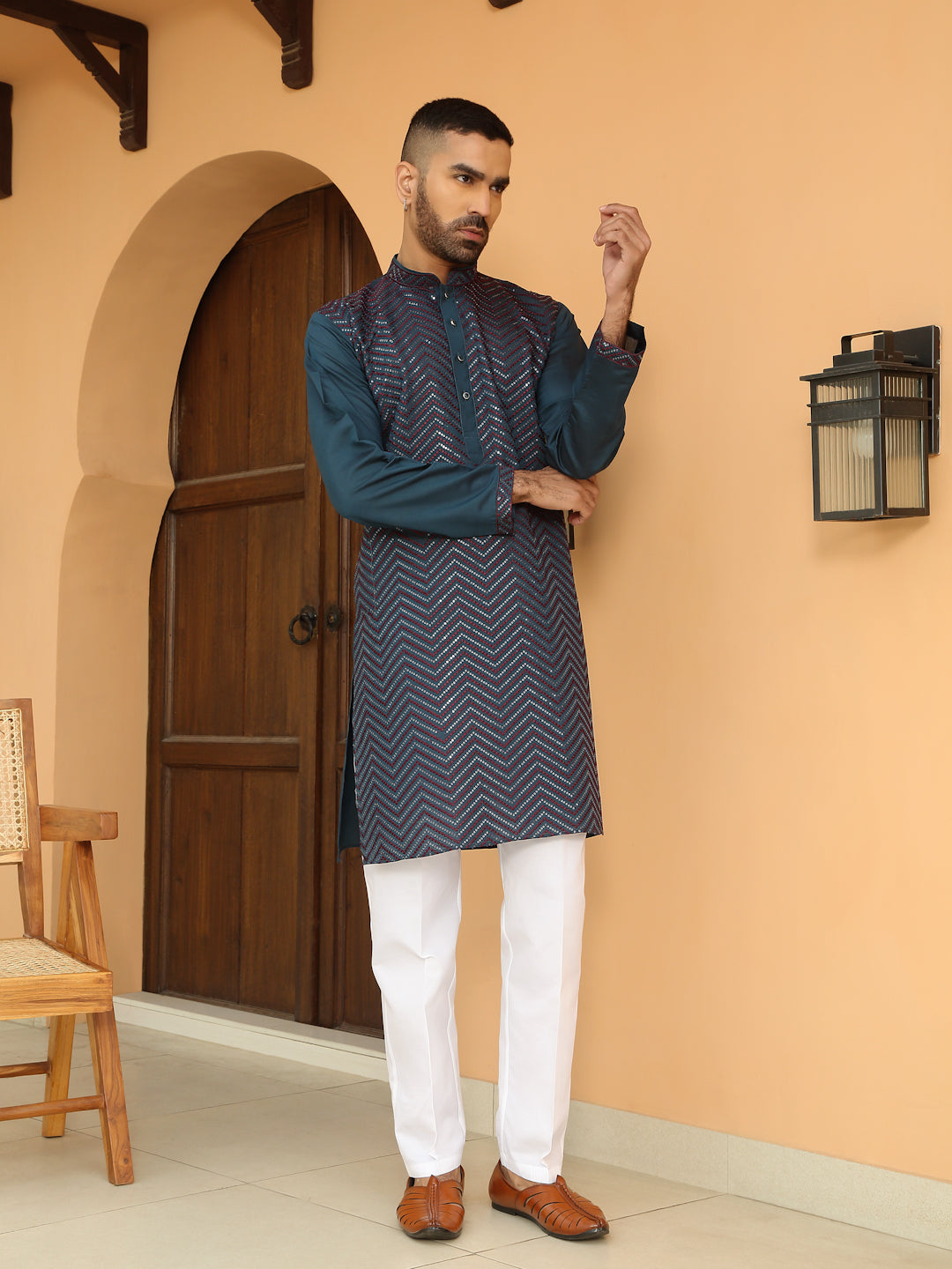 Introducing KRAFT INDIA LUXE Men Chevron Embroidered Kurta - the perfect fusion of style and comfort. Made with a mandarin collar, button closure, and knee length, this kurta exudes excellence. Crafted with straight side pockets and intricate embroidery, it's the ideal choice for any occasion.