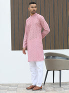 Elevate your festive style with this Men’s Silk Jacquard Self Design Kurta. Crafted from premium silk fabric, it features intricate self-woven patterns that exude sophistication and charm. The rich blue hue, complemented by a classic mandarin collar and straight hem, adds a regal touch to your ethnic look. Perfect for weddings, festivals, and traditional celebrations.