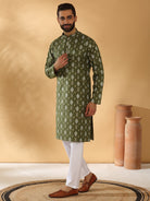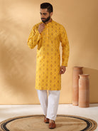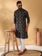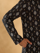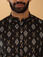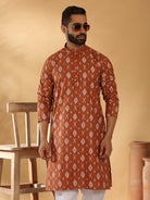 Upgrade your ethnic wardrobe with this stylish straight kurta featuring an all-over multicolour geometric print. Crafted from a comfortable cotton blend, this kurta is designed with a mandarin collar, button placket, and long sleeves, offering a blend of modern aesthetics and traditional elegance. Ideal for festive occasions, family functions, or casual ethnic wear.