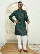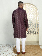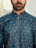 Men's floral print regular cotton contrast kurta paired with white pajama sets offer a harmonious blend of traditional aesthetics and modern design. These ensembles typically feature a regular-fit kurta adorned with vibrant floral patterns and white pajama pants, creating a balanced and stylish look.