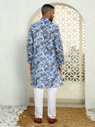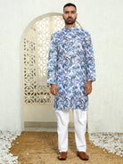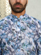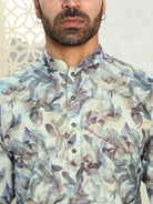 Cotton Leaf Printed Mandarin Collar Long Sleeves Kurta