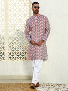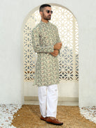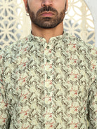 Embrace effortless style with the Men’s Cotton Leaf Printed Mandarin Collar Kurta. Crafted from soft, breathable cotton, this kurta ensures all-day comfort while offering a refined, casual look. The vibrant leaf print adds a refreshing touch of nature-inspired elegance, making it perfect for both casual outings and festive occasions. Featuring a sleek mandarin collar and long sleeves, this kurta brings together a modern silhouette with traditional design elements. Whether paired with jeans or traditional trousers, this versatile piece is a must-have for the stylish, modern man who loves blending comfort with contemporary flair.