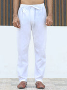 Cotton Rayon Embroidered Mandarin Collar Sequinned Kurta with Elastic Waistband White Pyjama