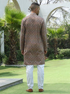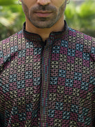 Add a touch of elegance to your festive look with this Men’s Cotton Rayon Kurta Pyjama Set. The kurta features intricate embroidery with shimmering sequin detailing and a stylish Mandarin collar for a refined ethnic appeal. Crafted from soft, breathable fabric, it ensures comfort and style throughout the day. Paired with an elastic waistband white pyjama, this set is perfect for weddings, celebrations, and traditional occasions.