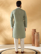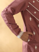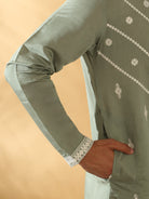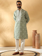 Make a statement with this Men's Cotton Silk Kurta and Trouser Pant Set. The kurta showcases exquisite beads work, yoke design embroidery, and shimmering sequin details, exuding elegance and charm. Paired with a cream cotton silk trouser pant, this ensemble offers a perfect blend of style and comfort, ideal for festive occasions, weddings, and cultural celebrations.