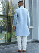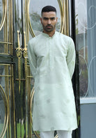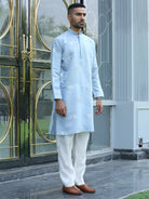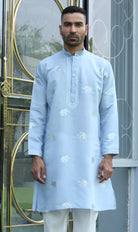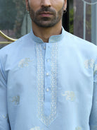 The intricate embroidery on the yoke symbolizes strength and grandeur, while the clean silhouette and mandarin collar elevate its classic appeal. Whether you're attending a wedding, festive celebration, or cultural event, this kurta effortlessly blends comfort, craftsmanship, and tradition.
