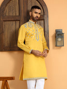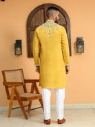 The kurta is crafted from a premium-quality fabric that is soft, lightweight, and comfortable, while the trousers are made from a durable cotton blend, ensuring all-day ease and style. Featuring heavy floral embroidery with delicate sequin detailing, the kurta radiates opulence and charm, making it ideal for special occasions. The straight-cut kurta is tailored with long sleeves and a knee-length hem, offering a timeless silhouette perfect for formal or festive events. Paired with sleek White trousers that are tailored for a modern fit, complete with an elastic waistband for added comfort and flexibility. Whether it’s a wedding, festive celebration, or cultural event, this kurta set is the epitome of traditional style with a contemporary twist.