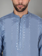 Expertly crafted for comfort and style, our Men's Cotton Silk Kurta boasts a stunning Mirror Work Yoke design. With long sleeves and an elastic waistband Beige Salwar, this kurta offers a perfect blend of traditional and modern. Made from high-quality cotton silk, it provides both breathability and durability. Elevate your wardrobe with this sophisticated piece.