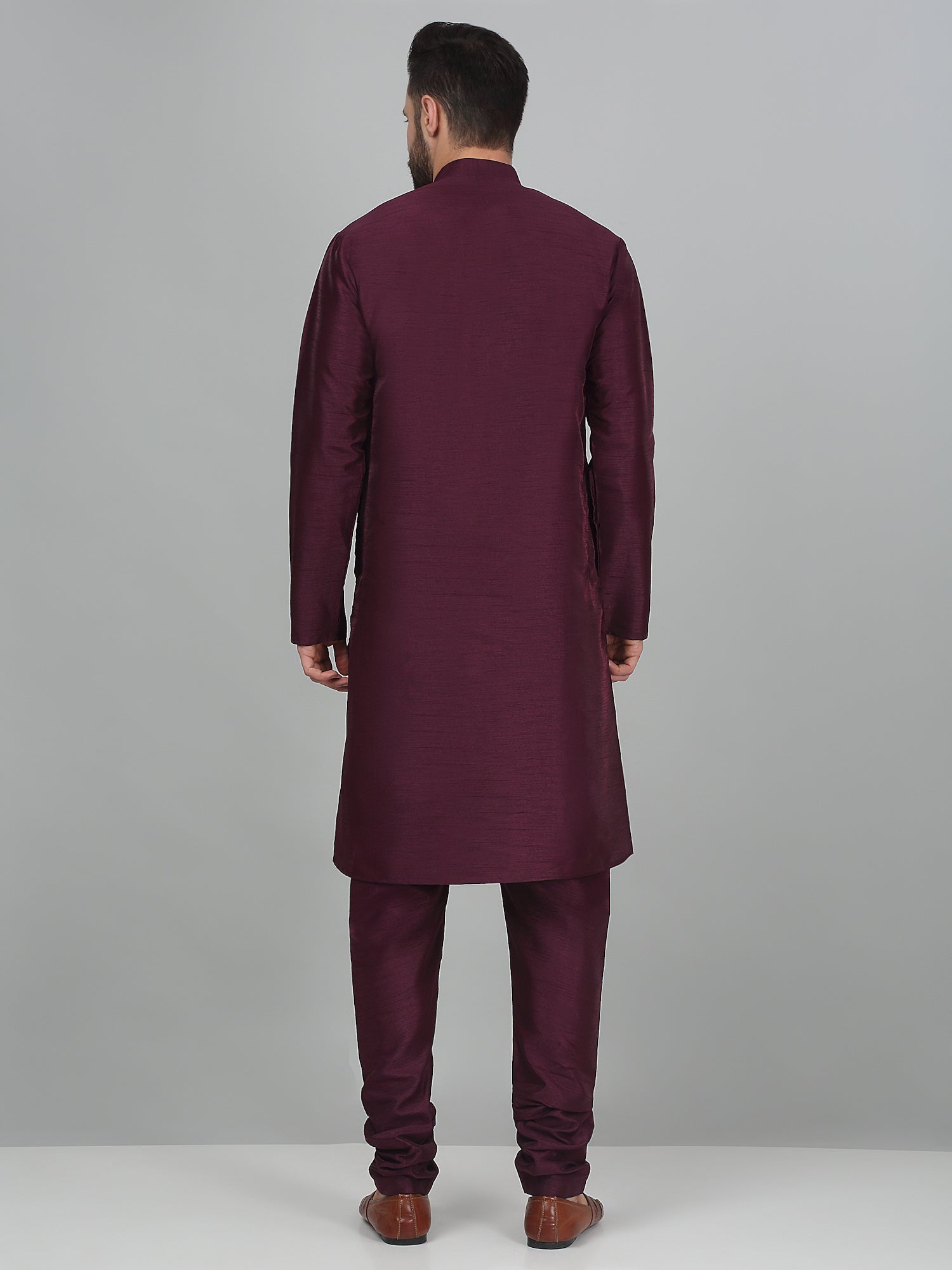 KRAFT INDIA Men's Solid Silk Blend Dupion Kurta Churidar Set