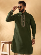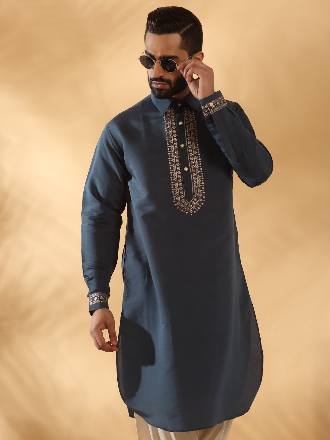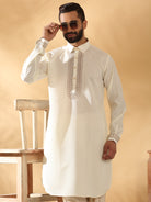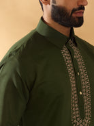 Introducing our Men's Cotton Silk Embroidered Pathani Eid Kurta Salwar, a sophisticated ensemble designed for festive occasions. This set features a classic shirt collar and roll-up sleeves, combining traditional aesthetics with modern functionality. The kurta showcases an intricately embroidered yoke design, reflecting exceptional craftsmanship. Practical side pockets add convenience, while the accompanying salwar completes the traditional look. Crafted from a luxurious cotton-silk blend, this outfit ensures comfort and a subtle sheen, making it an ideal choice for Eid celebrations and other special events.