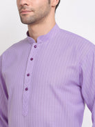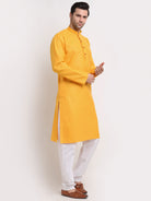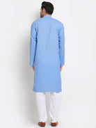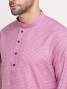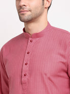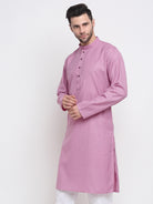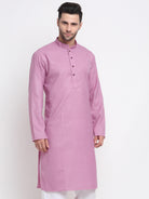 Straight knee length kurta, has a mandarin collar, long sleeves, side pockets, button closure, side slits, straight hem