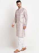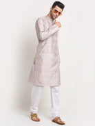 Men's Thread Work Sequence Kurta & White Churidar Set