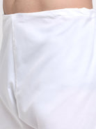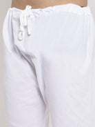 Straight Checked knee length kurta, has a mandarin collar, long sleeves, side pockets, button closure, side slits, straight hem with drawstring closure white pyjama